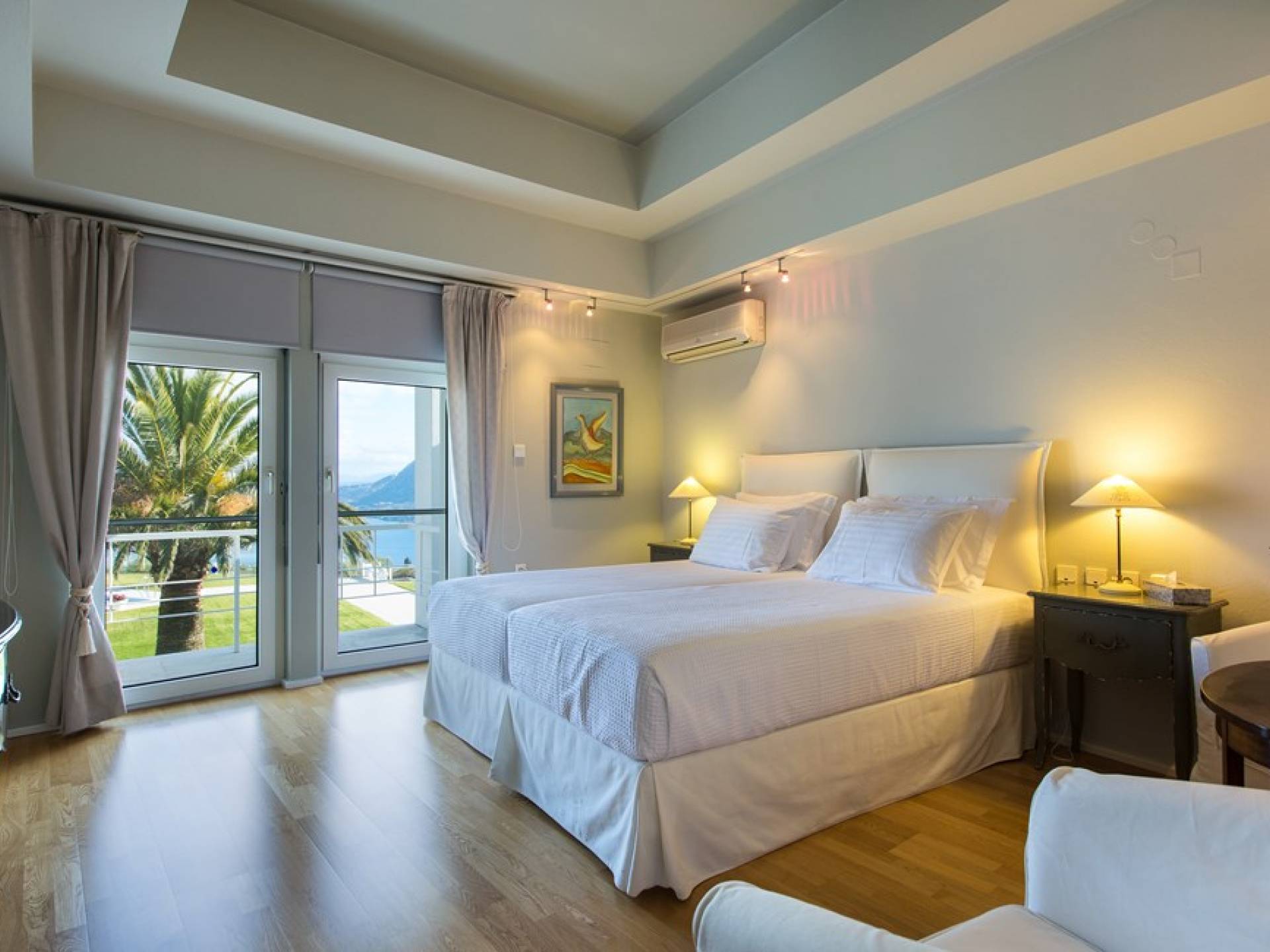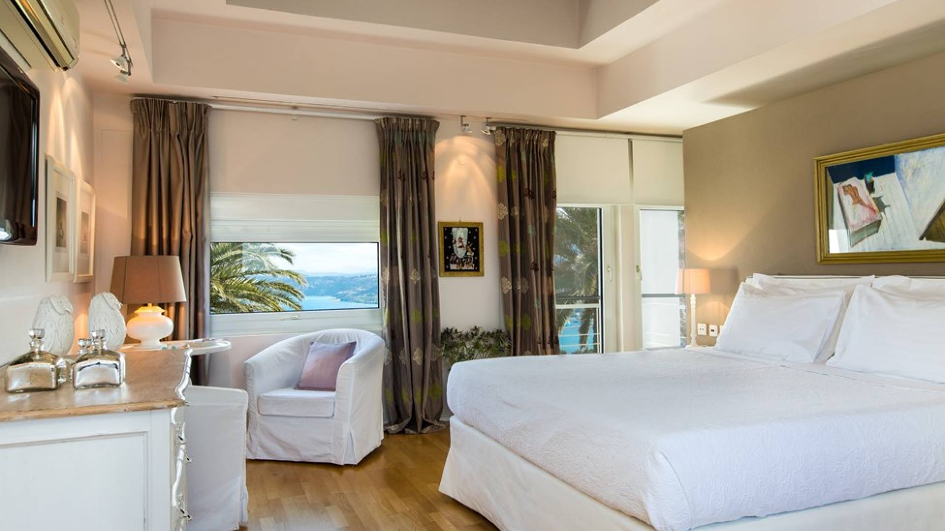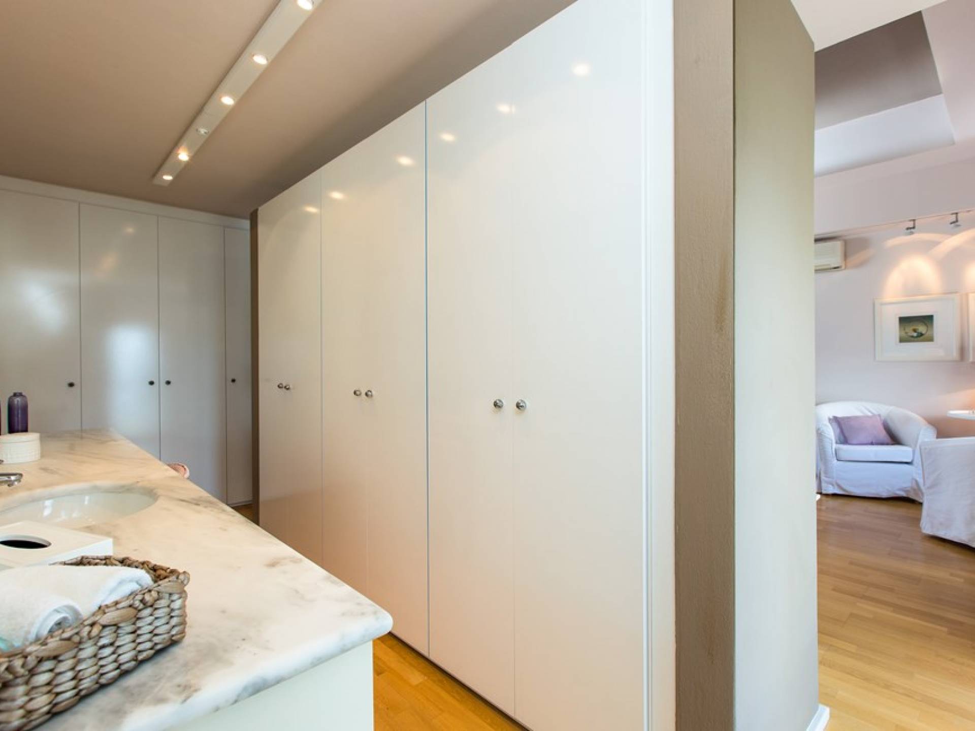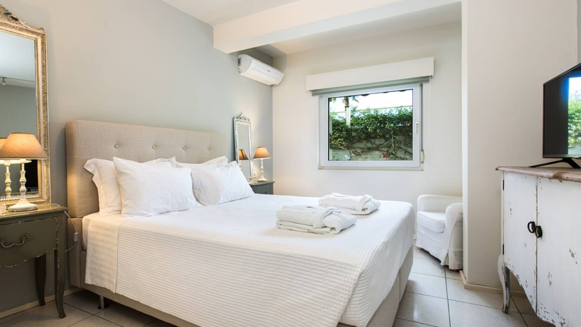 Все пять спален полностью оборудованы ванными комнатами и имеют балкон. Спустившись по лестнице на первый этаж, вы заметите полностью оборудованный тренажерный зал и большую игровую зону с камином и домашним кинотеатром. Casa Scordillli Chania отличается многочисленными и очень просторными и элегантными номерами, которые делают его идеальным для незабываемого роскошного отдыха.