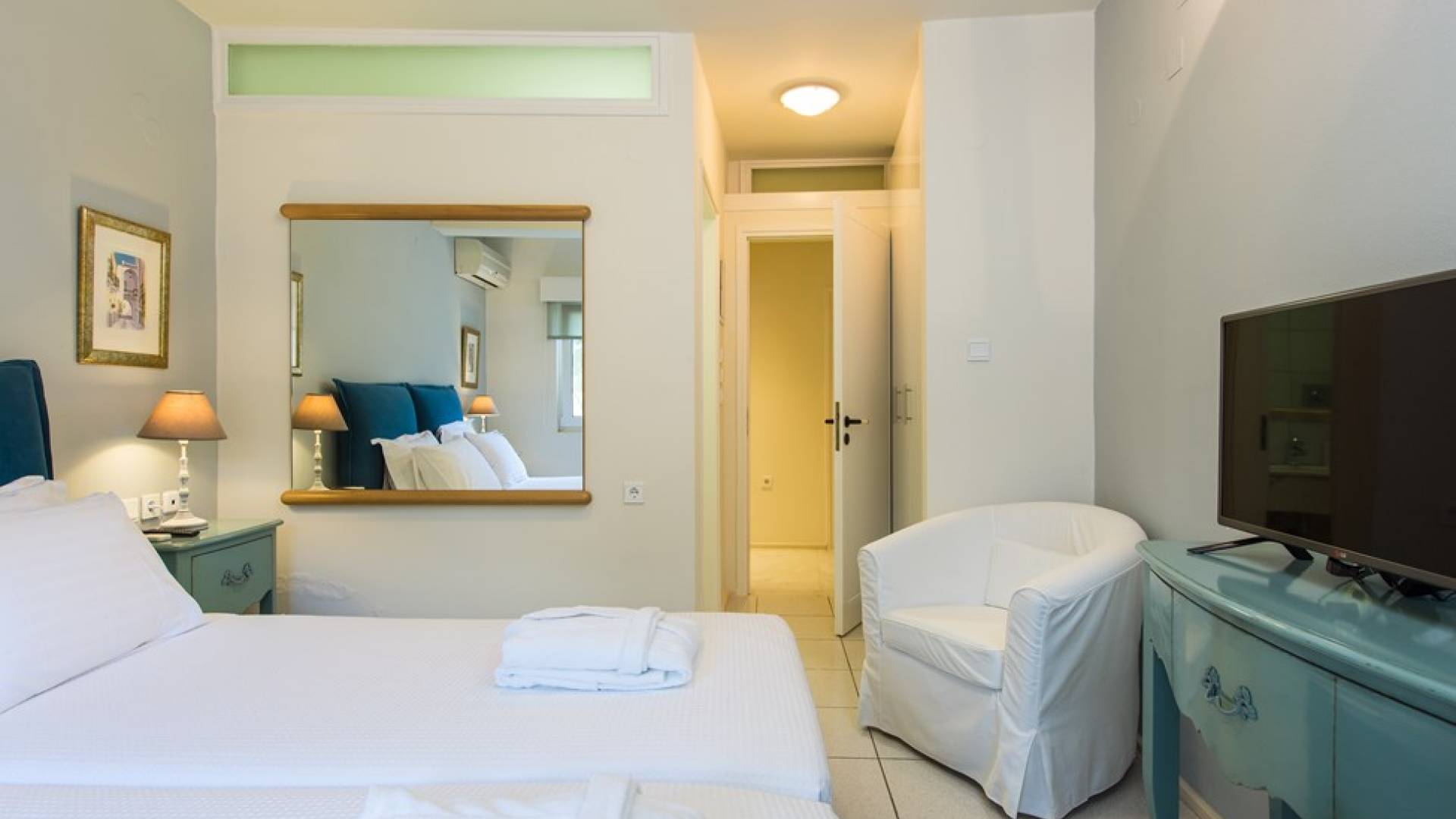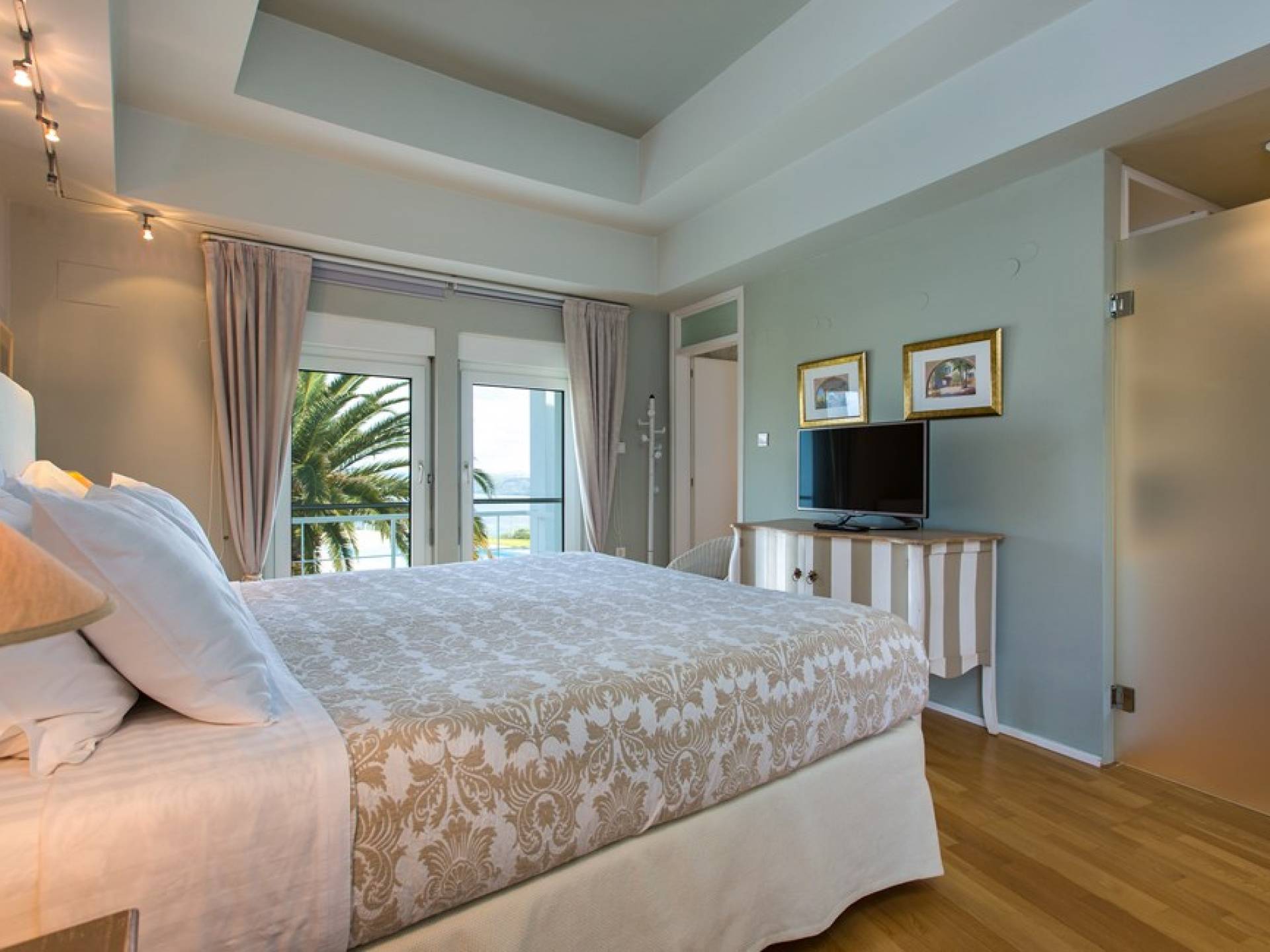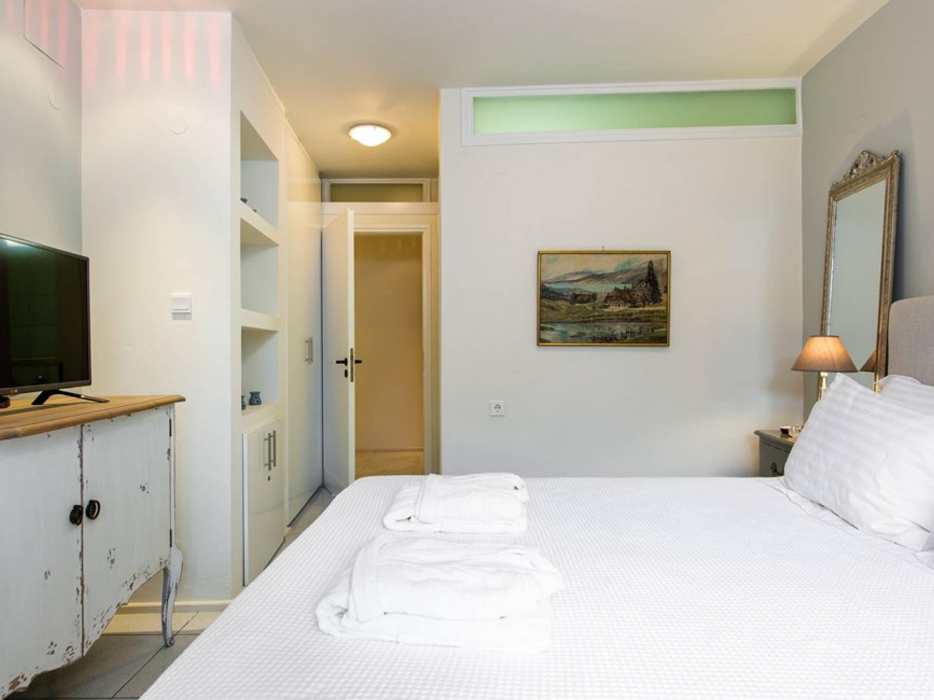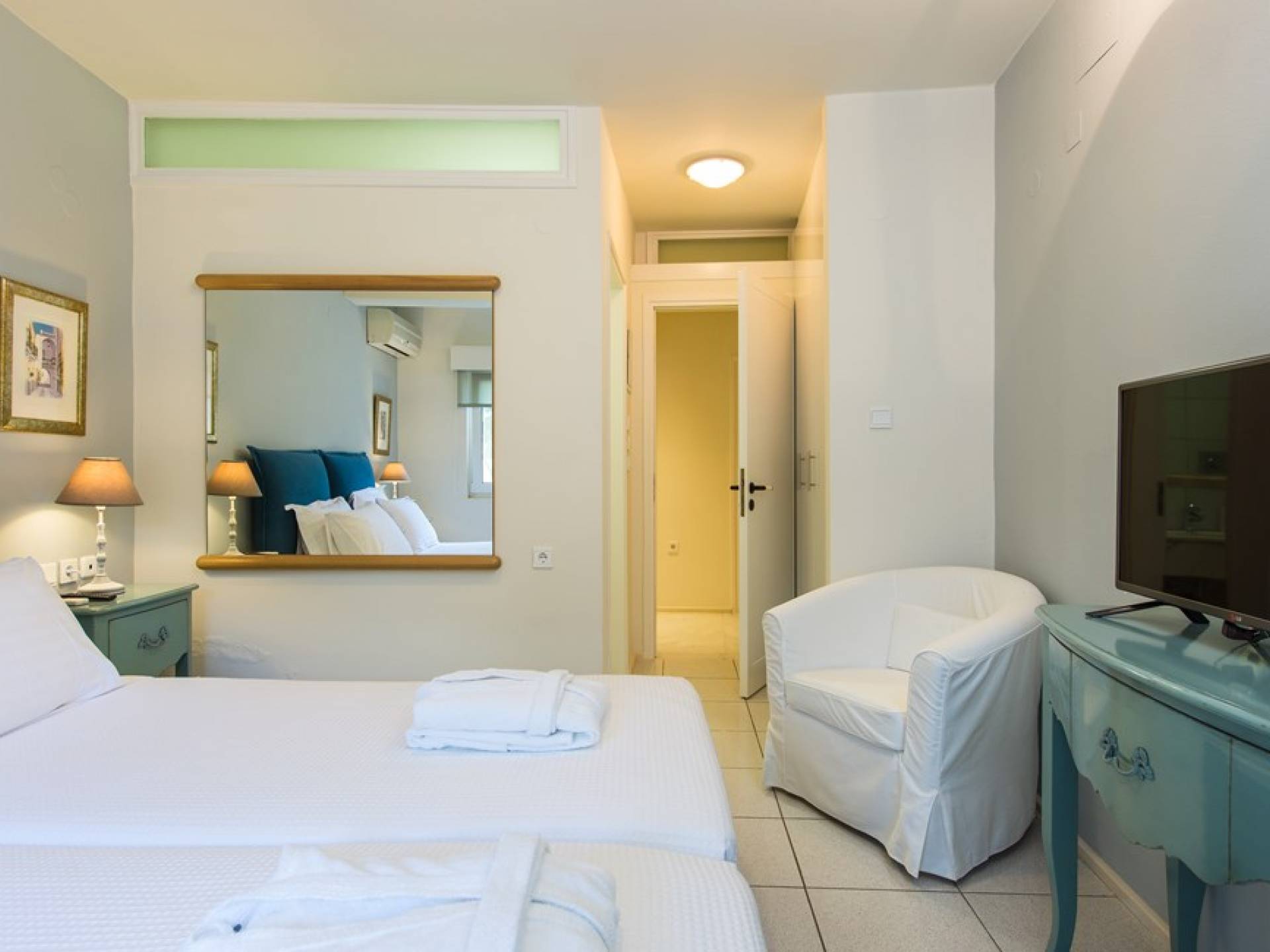 Все пять спален полностью оборудованы ванными комнатами и имеют балкон. Спустившись по лестнице на первый этаж, вы заметите полностью оборудованный тренажерный зал и большую игровую зону с камином и домашним кинотеатром. Casa Scordillli Chania отличается многочисленными и очень просторными и элегантными номерами, которые делают его идеальным для незабываемого роскошного отдыха.