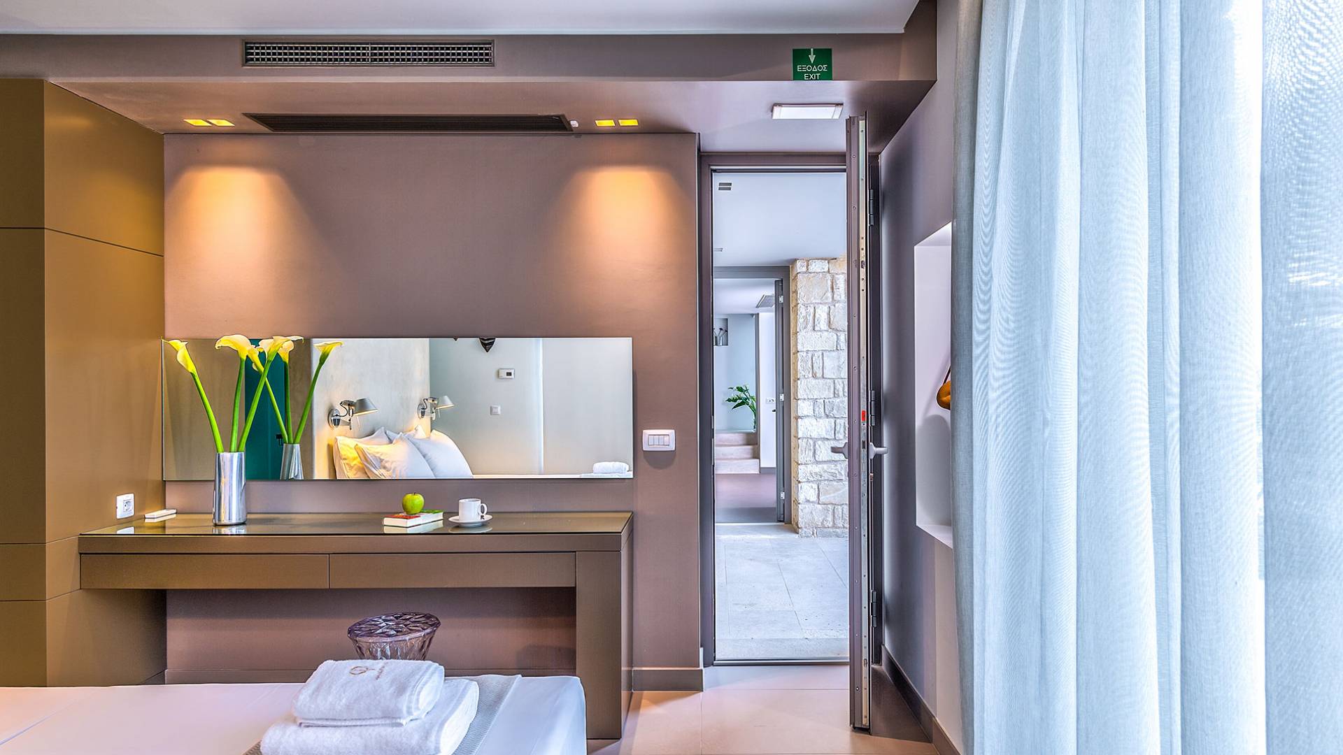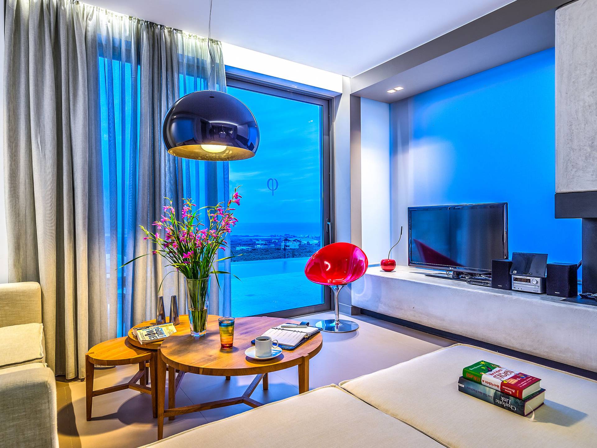 Удобства Charisma Villa Chania могут удовлетворить даже самого требовательного посетителя. От полностью оборудованной кухни до просторной гостиной и обеденной зоны открытой планировки - все было спроектировано так, чтобы обеспечить посетителям максимальный комфорт. На втором этаже главная спальня с кроватью размера «king-size» и ванной комнатой, большим балконом и красивым частным местом для отдыха на открытом воздухе, с которого можно любоваться великолепным заливом. На первом этаже находится гостевая спальня с двуспальной кроватью, которая может быть преобразована в две односпальные кровати, ванной комнатой и диваном.