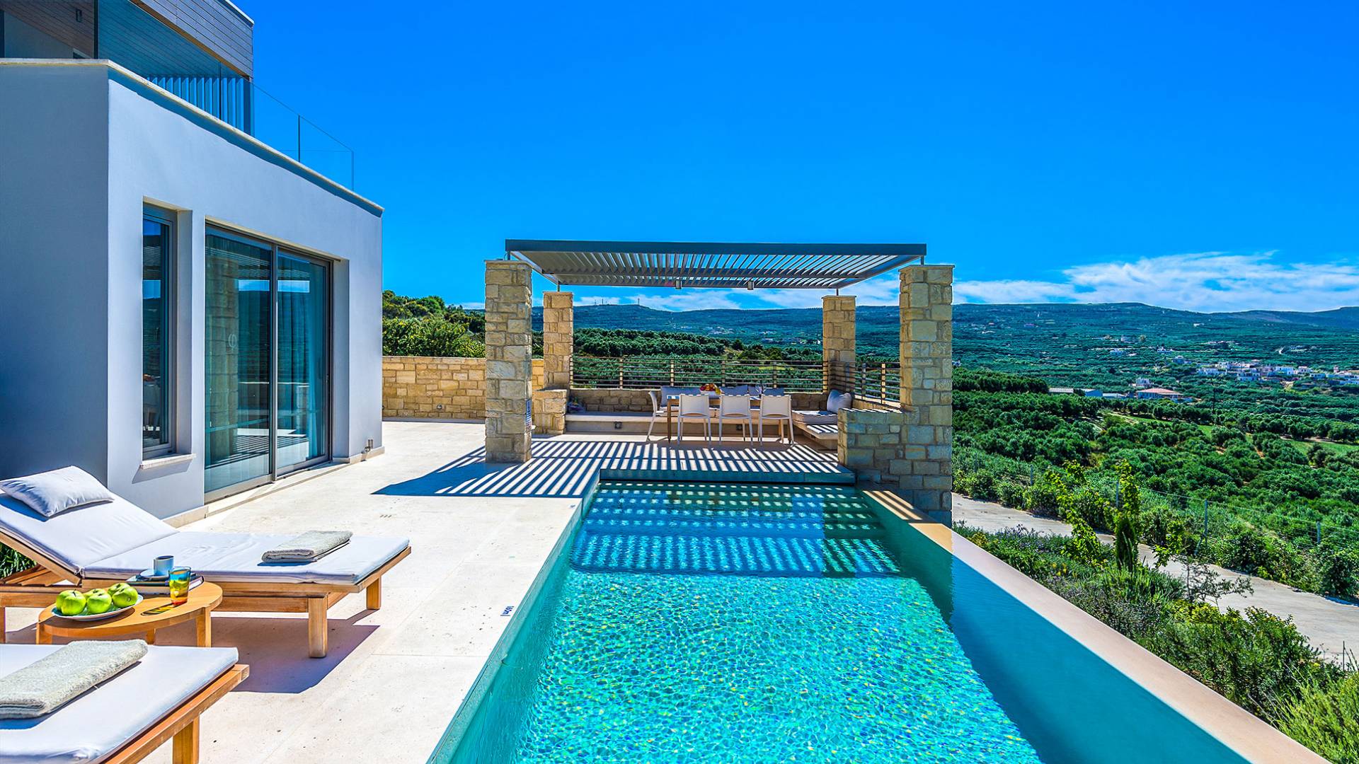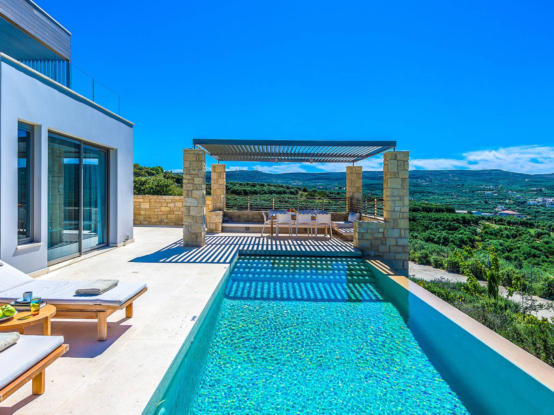 Снаружи вы найдете, конечно же, частный пейзажный бассейн и просторную обеденную зону на открытом воздухе с беседкой для освежающей тени в течение дня. При необходимости пейзажный бассейн можно подогреть в низкий сезон. Нагревание осуществляется за дополнительную плату и осуществляется тепловым насосом бассейна, доводя воду до температуры около 24–26 ° C. С потрясающими видами на пышные зеленые поля внизу вы погрузитесь в атмосферу сельской местности, свежего воздуха и безмятежности Киссамоса.