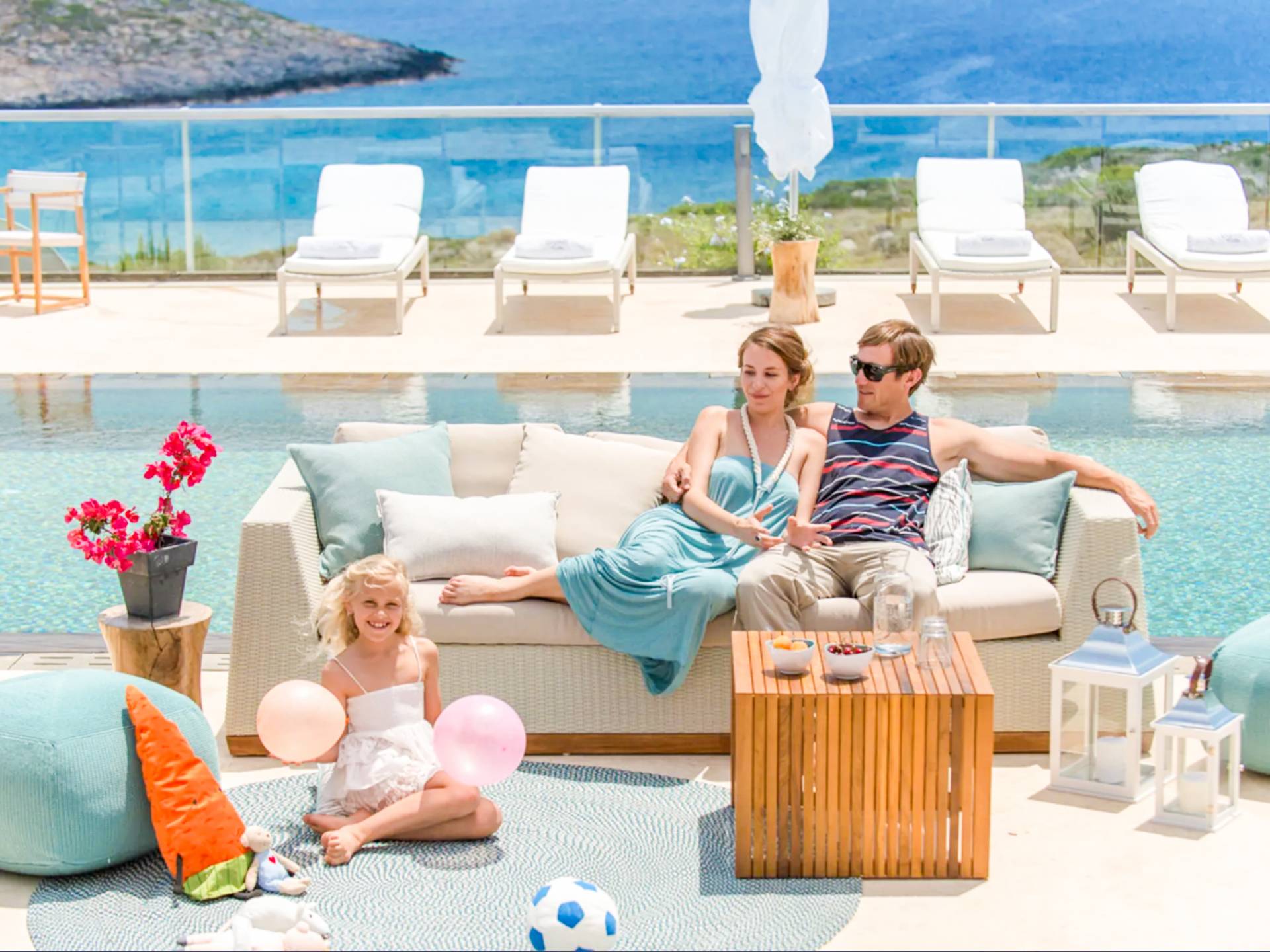 Immerse yourself in the essence of Cretan living with private gardens and poolside haven designed for both relaxation and play: