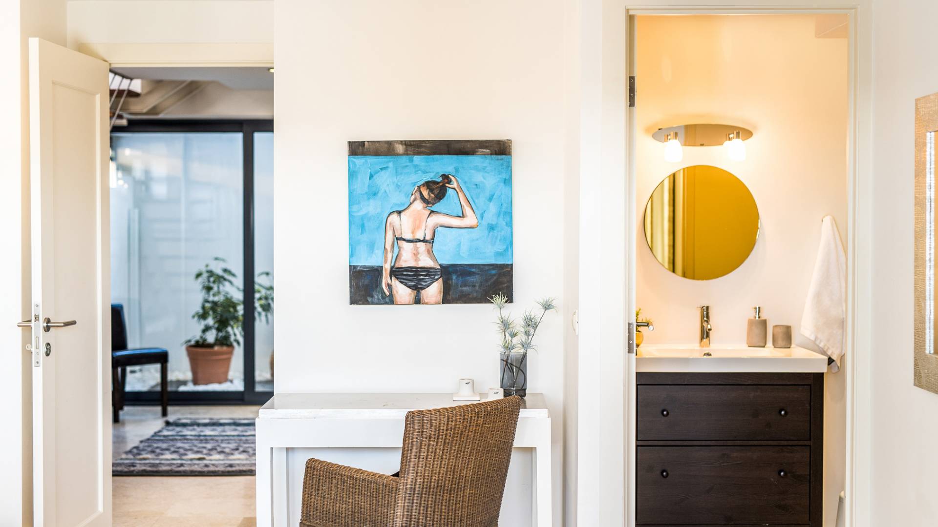 - Bedroom 2 with king bed, ensuite bathroom and terrace access