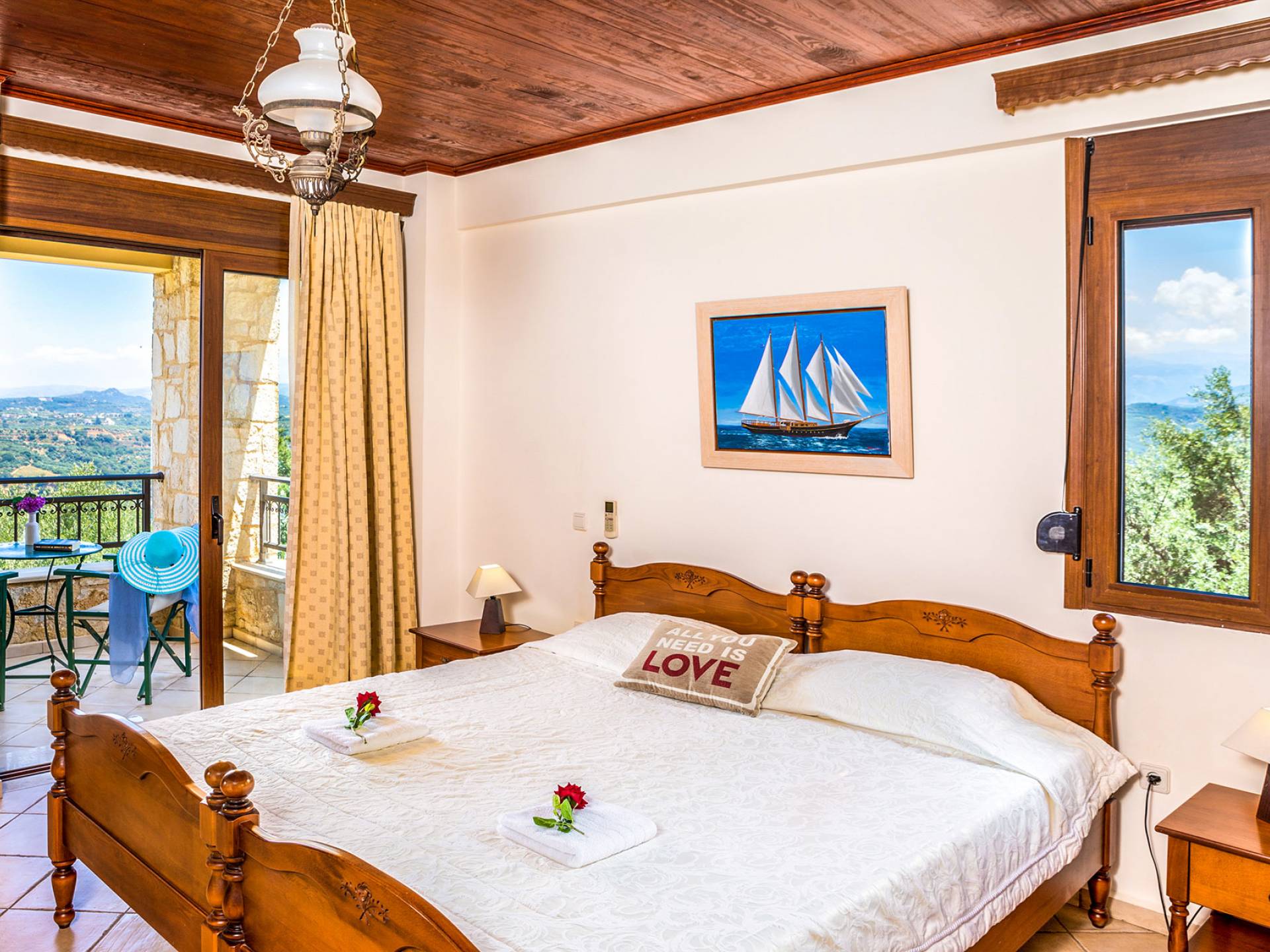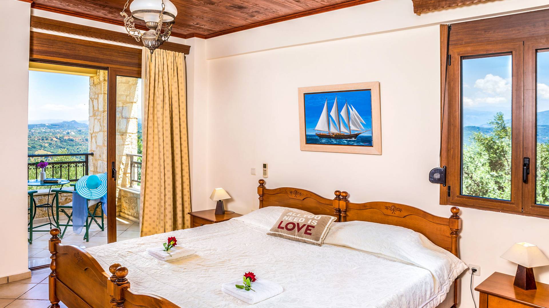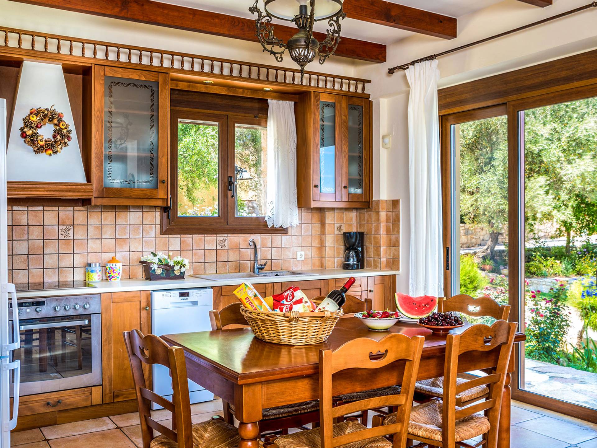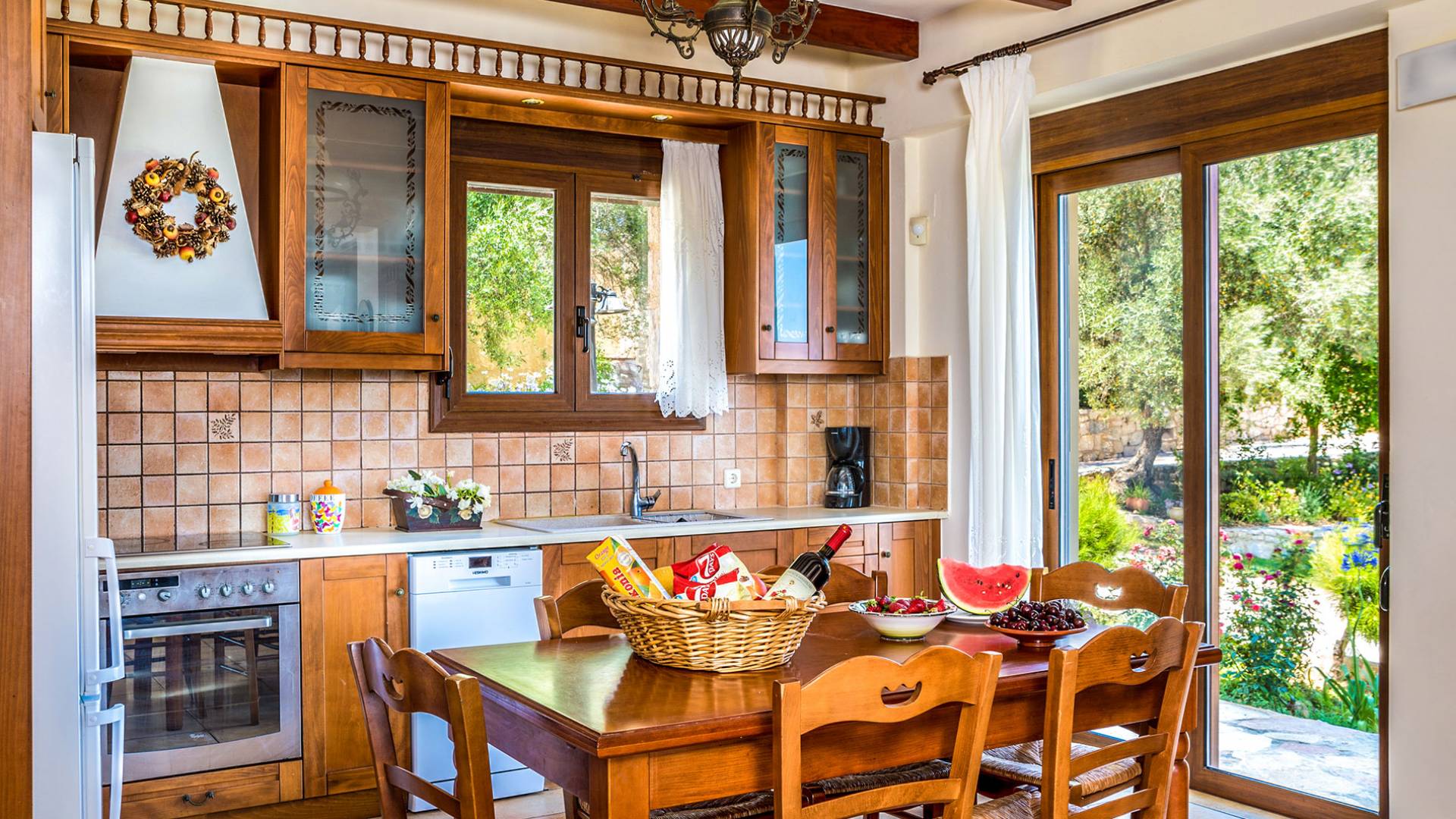 Из центрального входа гостиная с 2 диванами и журнальным столиком ведет на первый этаж виллы. В гостиной вы найдете плазменный телевизор со спутниковыми каналами, DVD-плеер, стерео-проигрыватель компакт-дисков и большой камин. Соединенная с гостиной, кухня оснащена всеми современными удобствами. Там же находится обеденный стол с 8 стульями и камин в углу. Панорамным видом на ландшафт от высоких гор до синего моря можно наслаждаться как с обеденного стола, так и с диванной группы и балкона. Вилла Iris состоит из 4 спален: две с двуспальными кроватями, одна с 3 односпальными кроватями и одна с 2 односпальными кроватями, все с ванными комнатами, телевизором, DVD и гидромассажной ванной или душем.