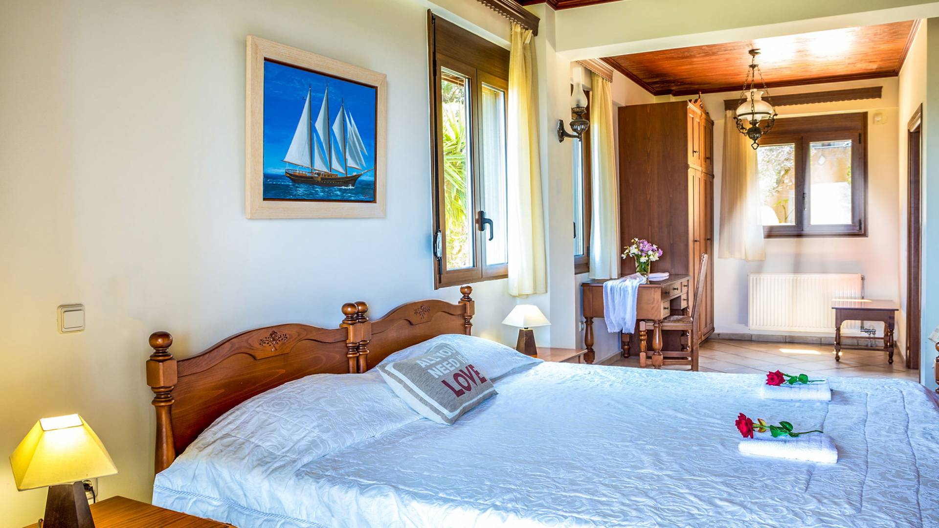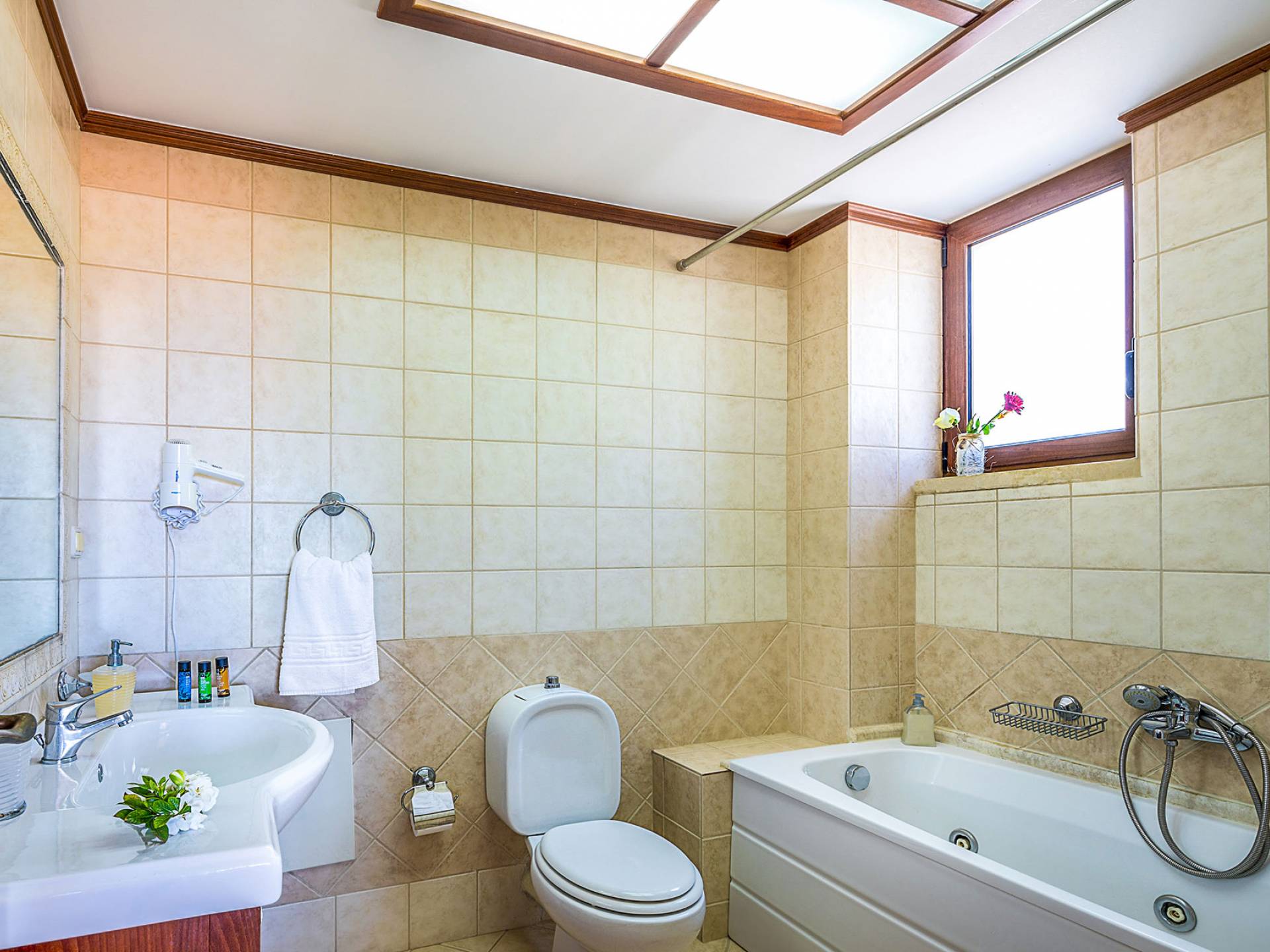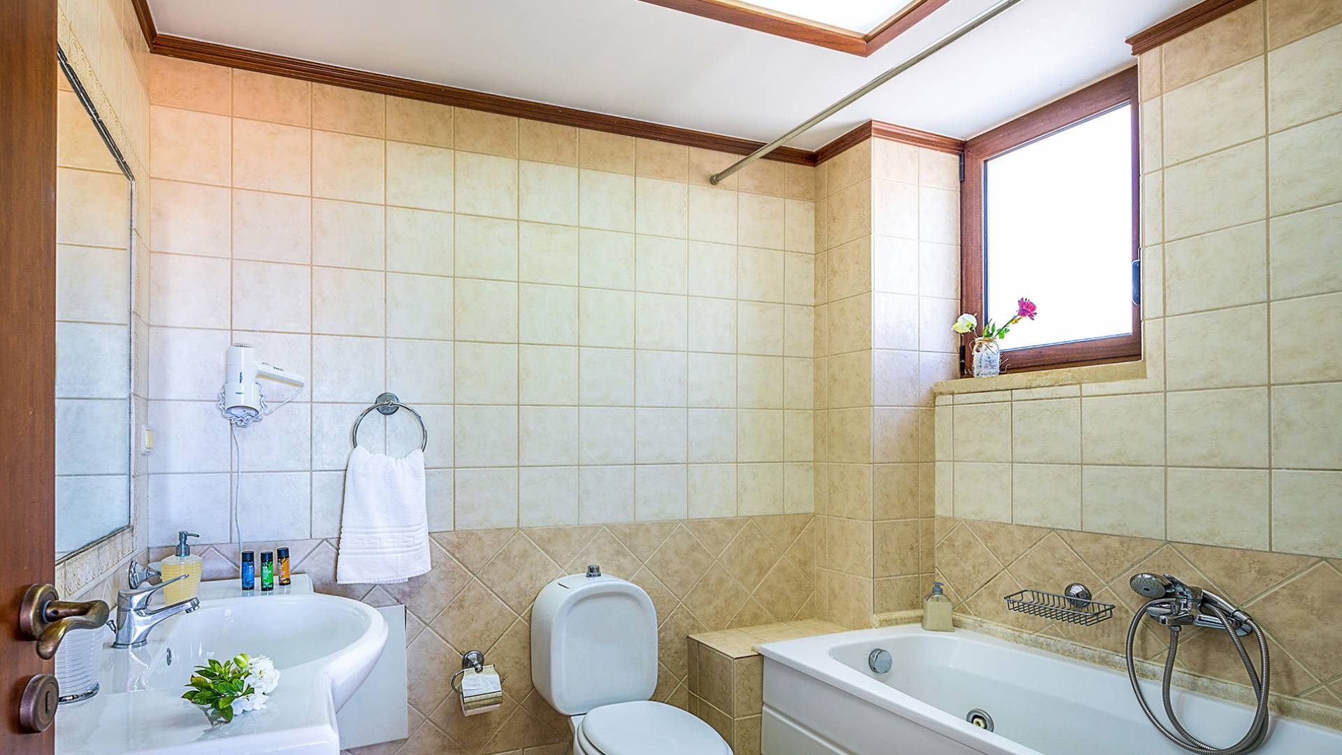 Из центрального входа гостиная с 2 диванами и журнальным столиком ведет на первый этаж виллы. В гостиной вы найдете плазменный телевизор со спутниковыми каналами, DVD-плеер, стерео-проигрыватель компакт-дисков и большой камин. Соединенная с гостиной, кухня оснащена всеми современными удобствами. Там же находится обеденный стол с 8 стульями и камин в углу. Панорамным видом на ландшафт от высоких гор до синего моря можно наслаждаться как с обеденного стола, так и с диванной группы и балкона. Вилла Iris состоит из 4 спален: две с двуспальными кроватями, одна с 3 односпальными кроватями и одна с 2 односпальными кроватями, все с ванными комнатами, телевизором, DVD и гидромассажной ванной или душем.