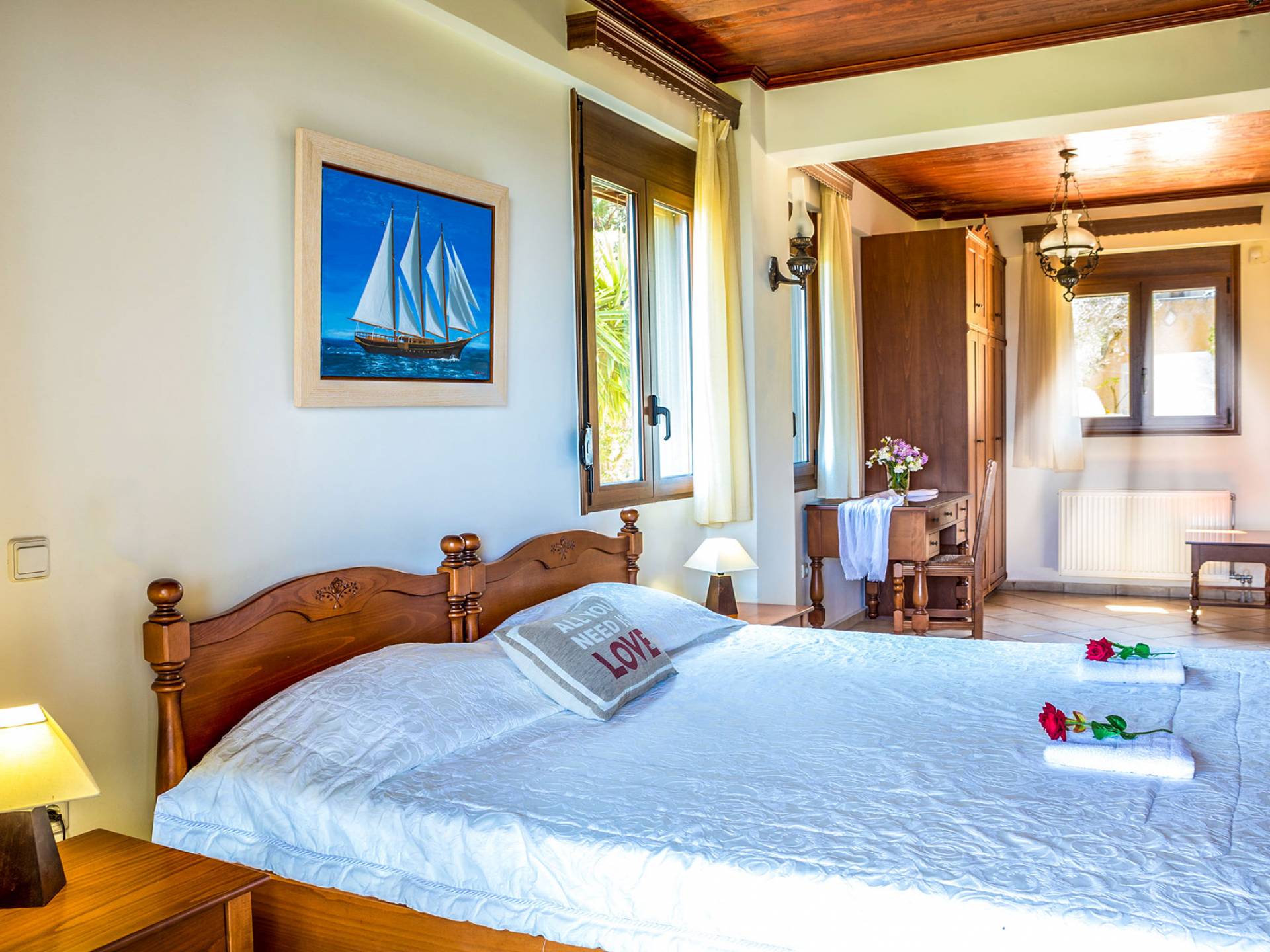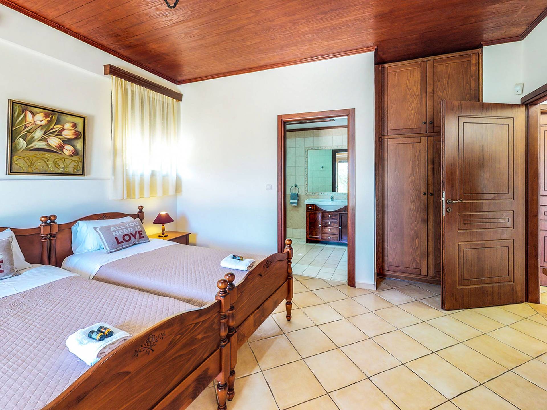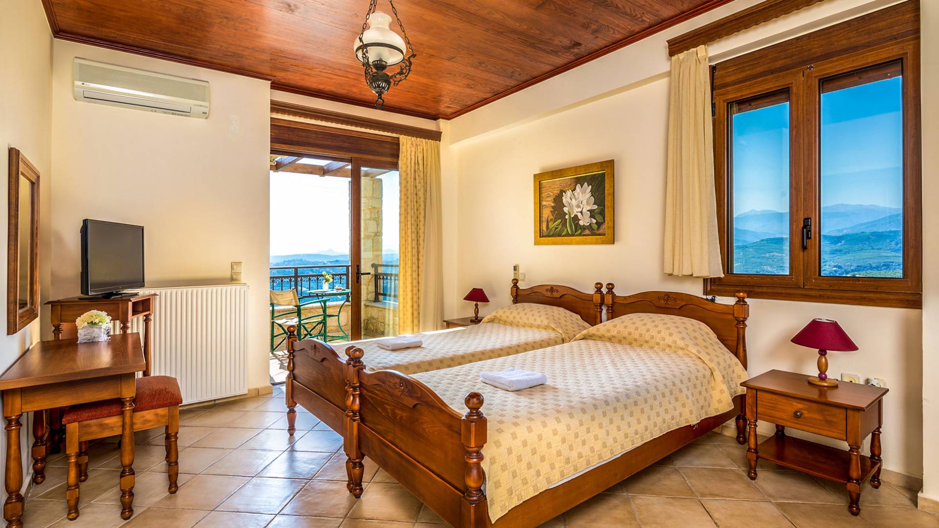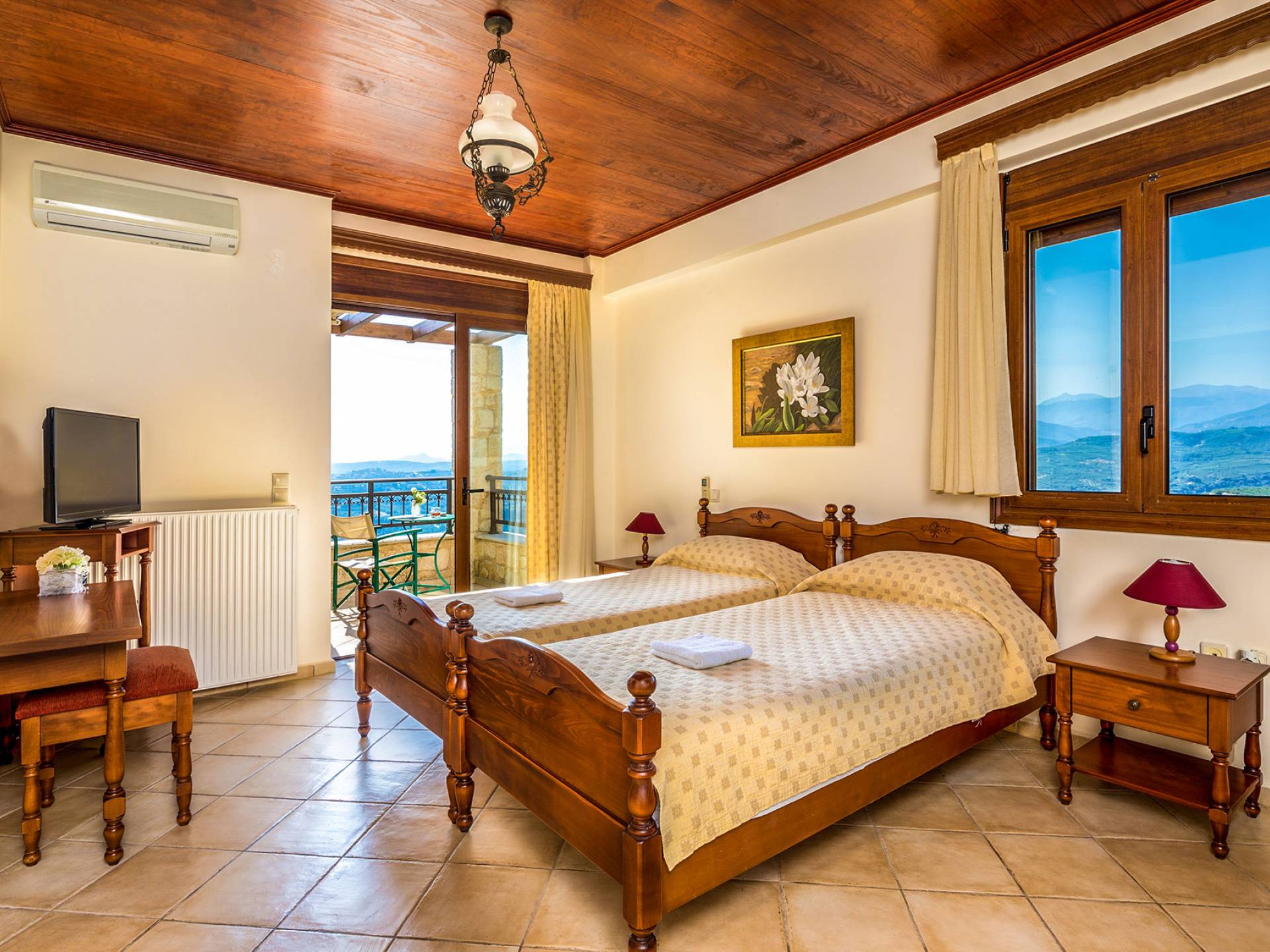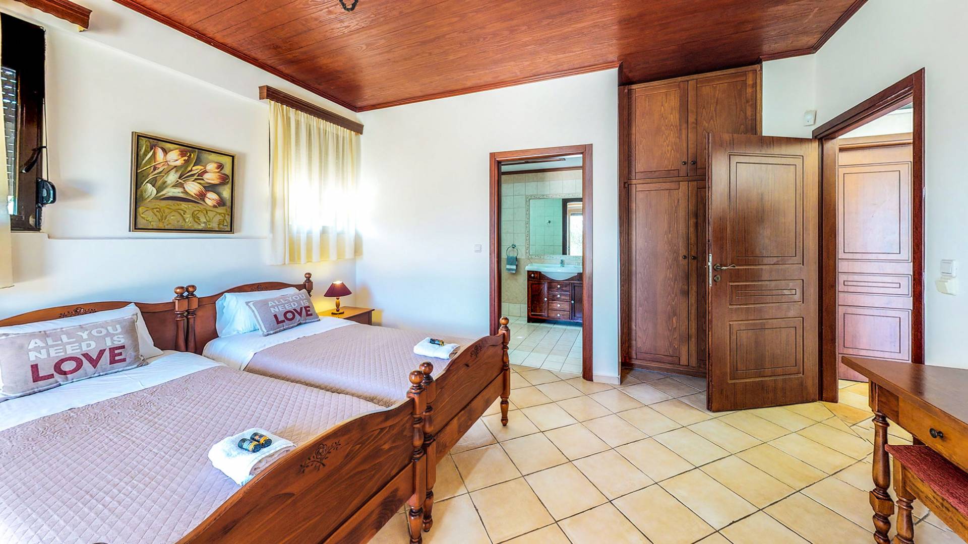 На вилле Ermis Chania есть пять комнат с кондиционерами, в которых есть 3 односпальные и 2 двуспальные кровати, все с удобствами, включая 2 ванны с турбо-массажем и 2 душа с турбо-массажем. Во всех номерах есть спутниковое телевидение и DVD-плеер, а также терраса или балкон со столом и удобными креслами директора. Два двухместных номера очень просторны и имеют дополнительные маленькие односпальные кровати, подходящие для детей. На первом уровне находится просторная игровая комната и тренажерный зал, в настоящее время оборудованный бильярдным столом, велотренажером и беговой дорожкой.
