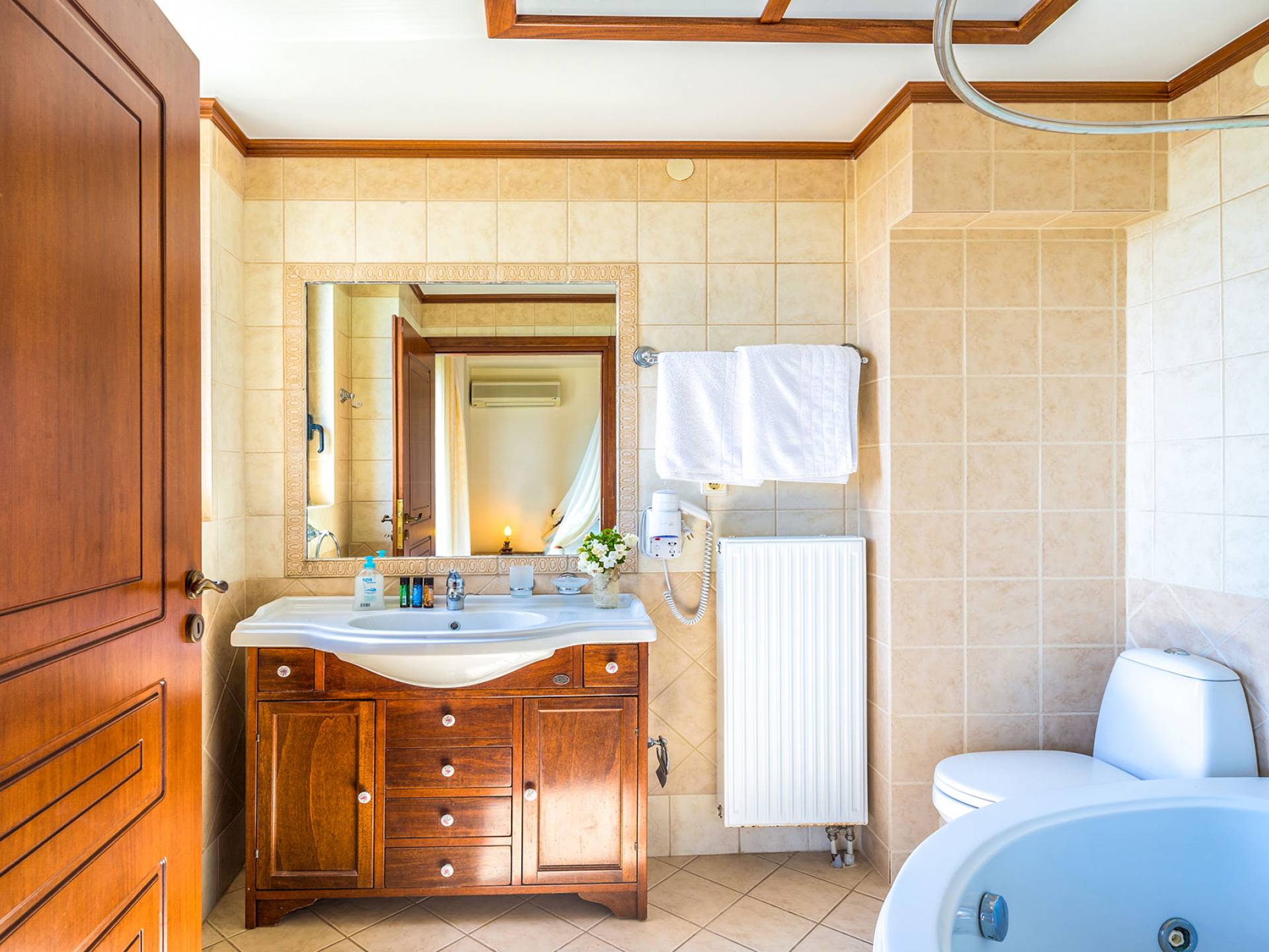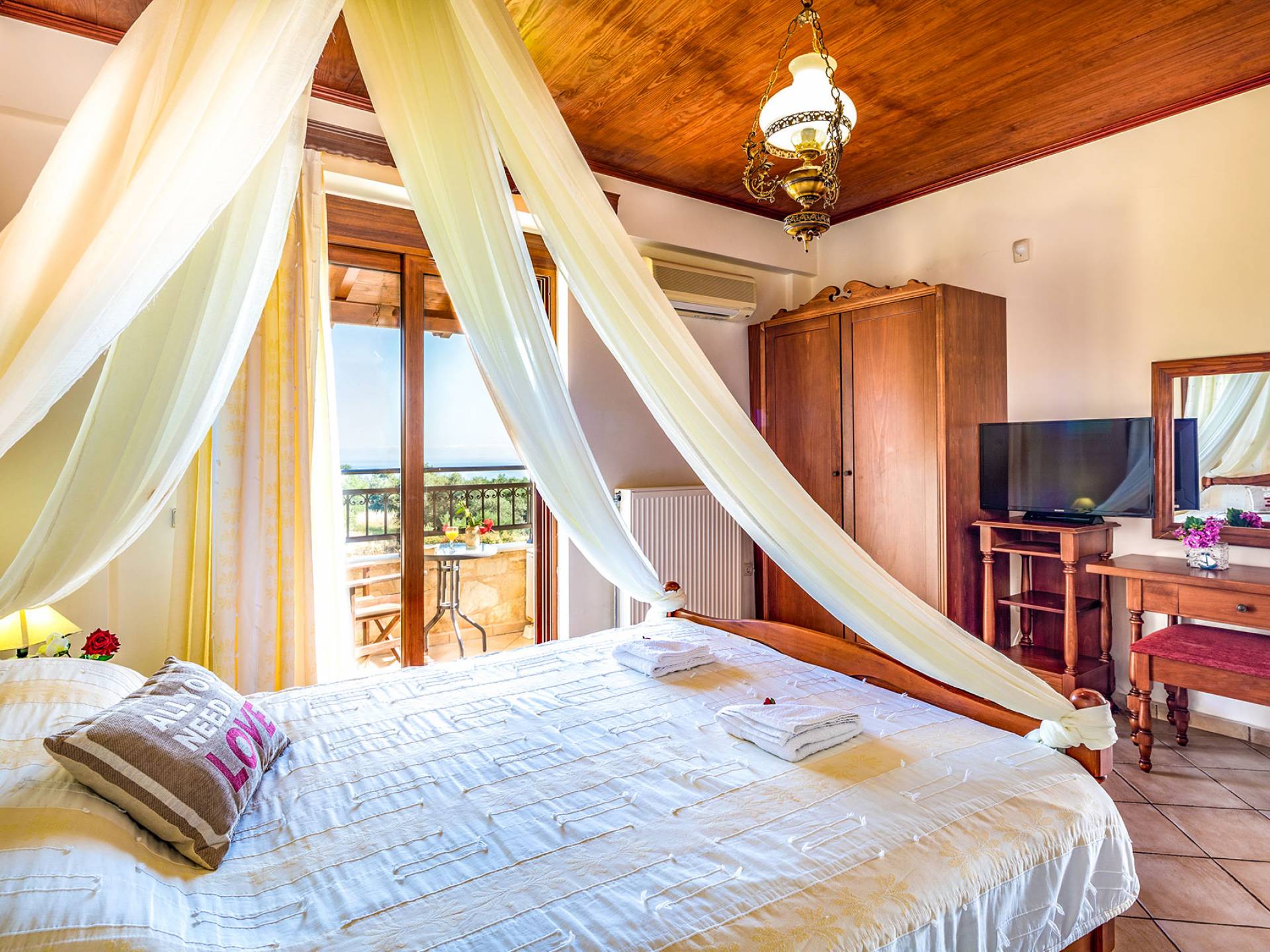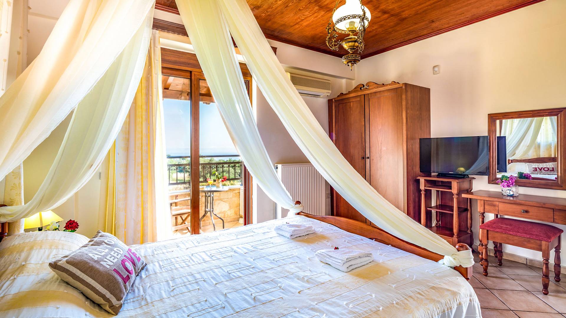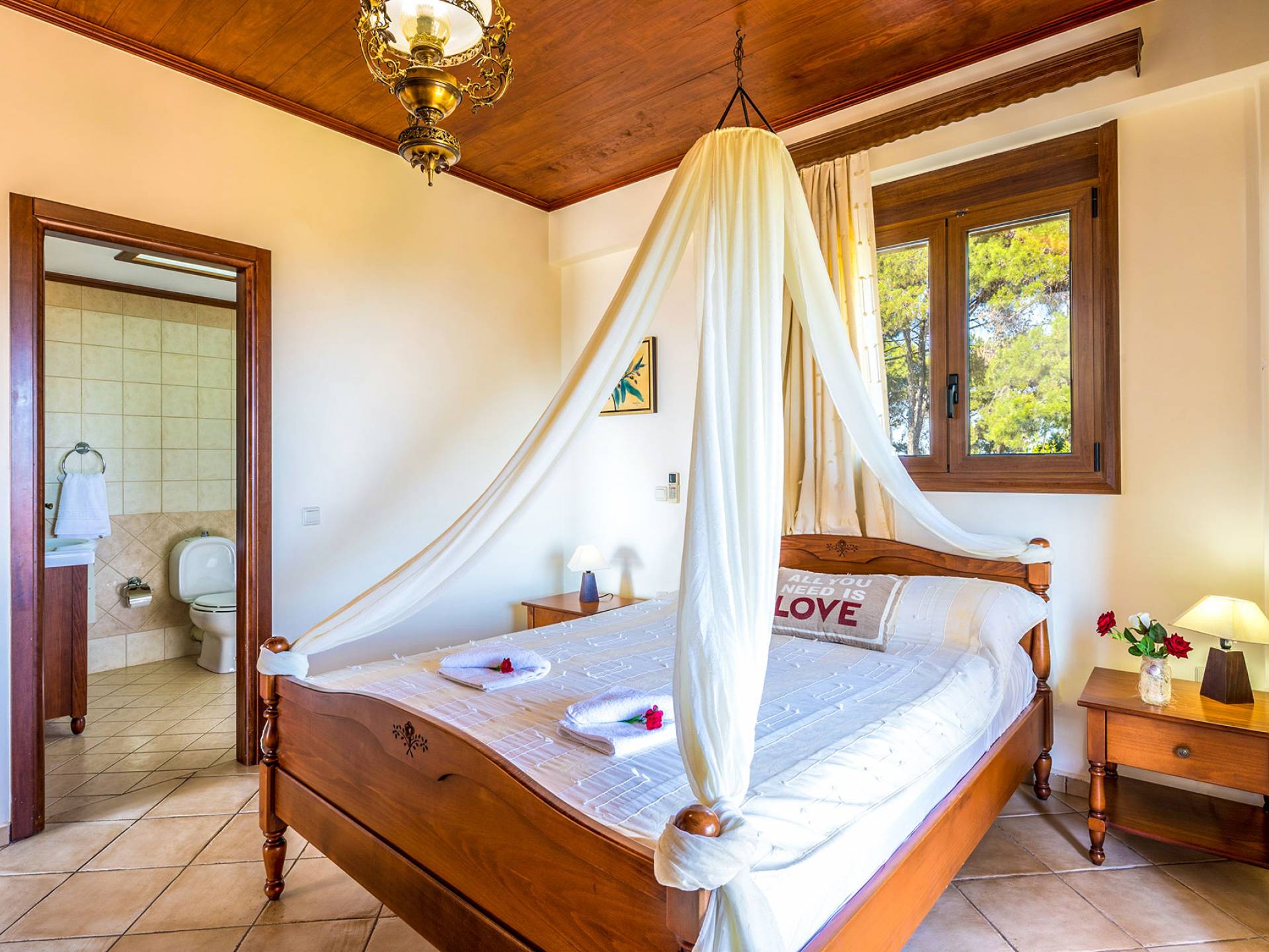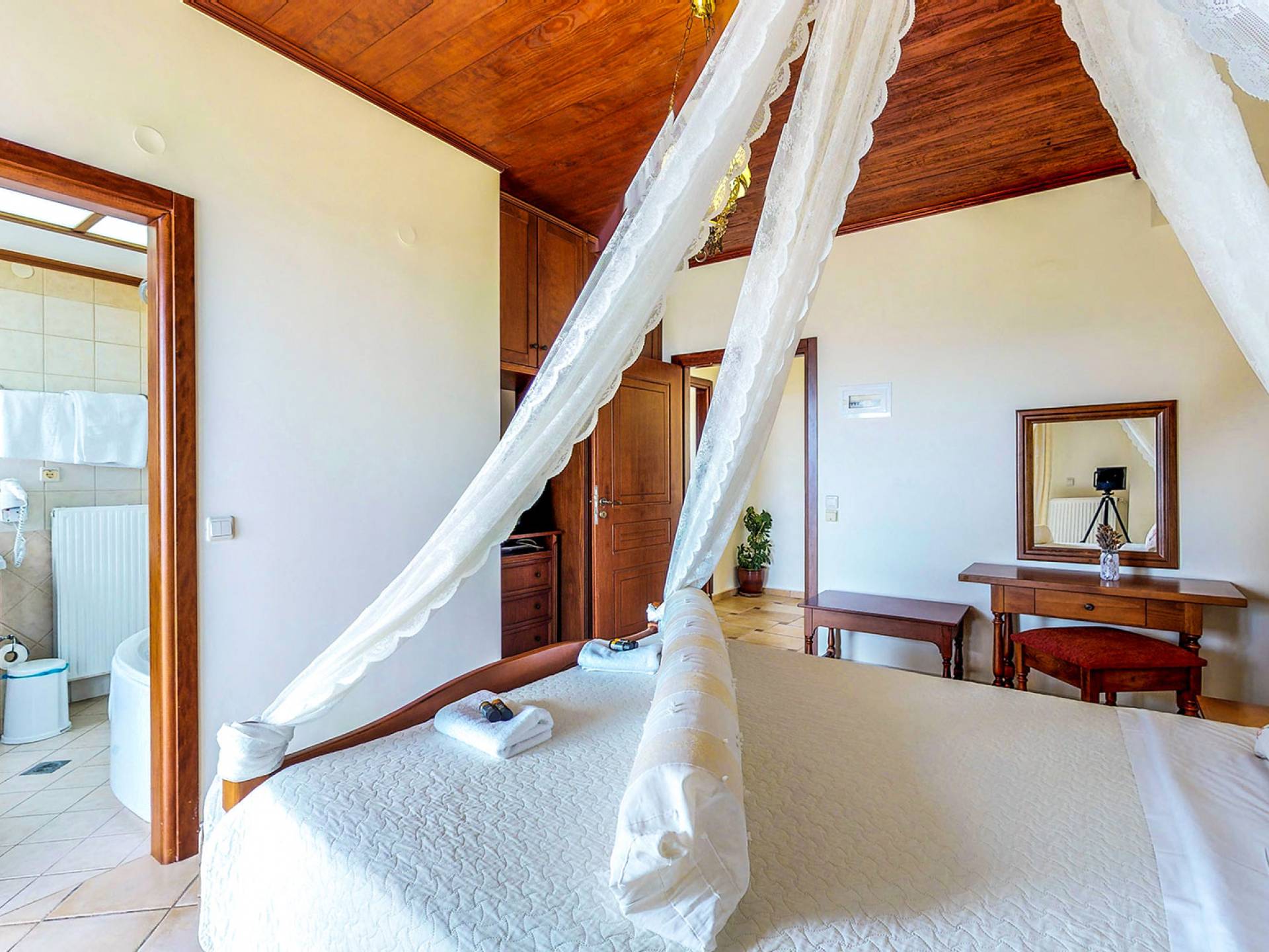 На вилле Ermis Chania есть пять комнат с кондиционерами, в которых есть 3 односпальные и 2 двуспальные кровати, все с удобствами, включая 2 ванны с турбо-массажем и 2 душа с турбо-массажем. Во всех номерах есть спутниковое телевидение и DVD-плеер, а также терраса или балкон со столом и удобными креслами директора. Два двухместных номера очень просторны и имеют дополнительные маленькие односпальные кровати, подходящие для детей. На первом уровне находится просторная игровая комната и тренажерный зал, в настоящее время оборудованный бильярдным столом, велотренажером и беговой дорожкой.