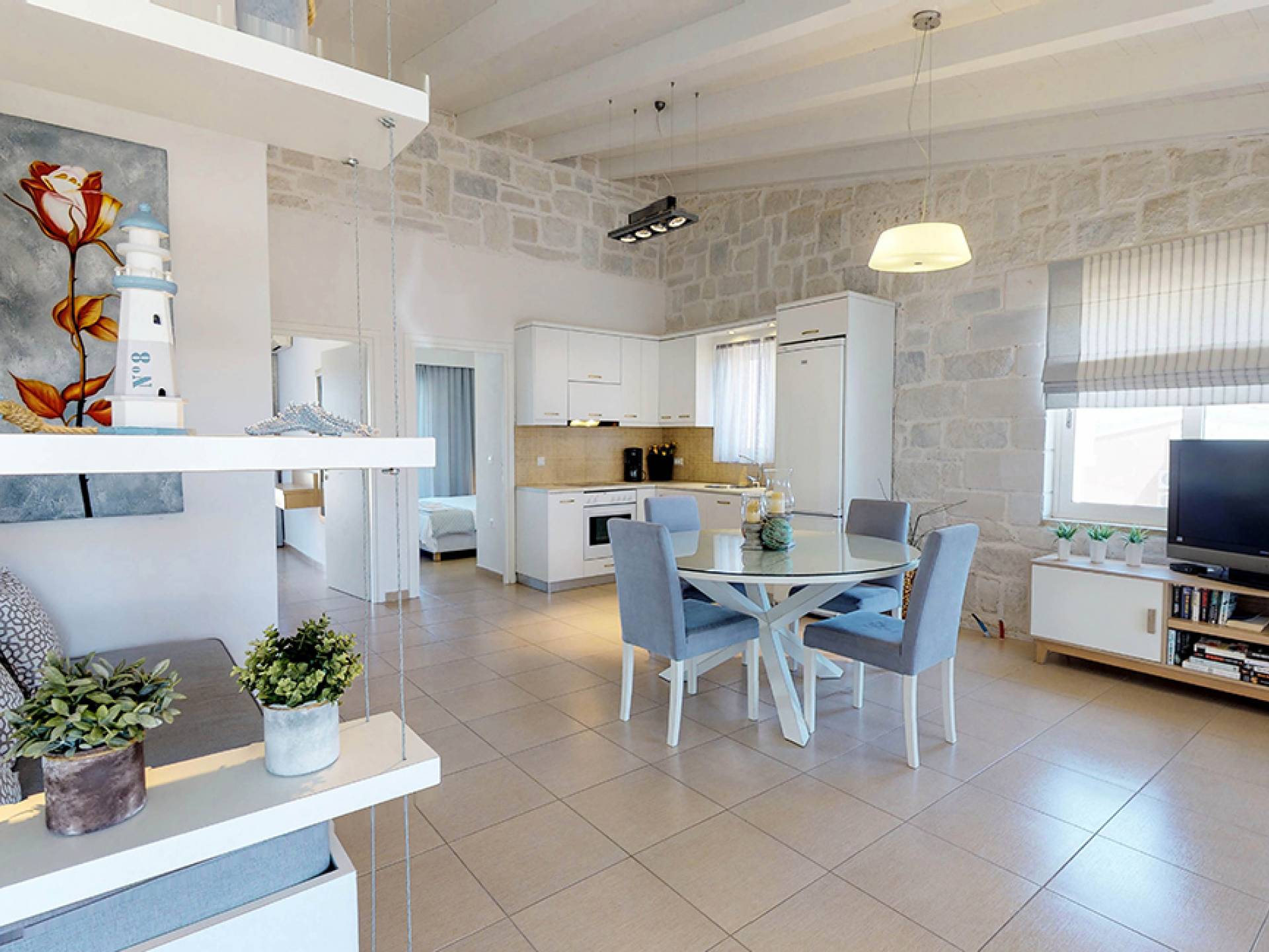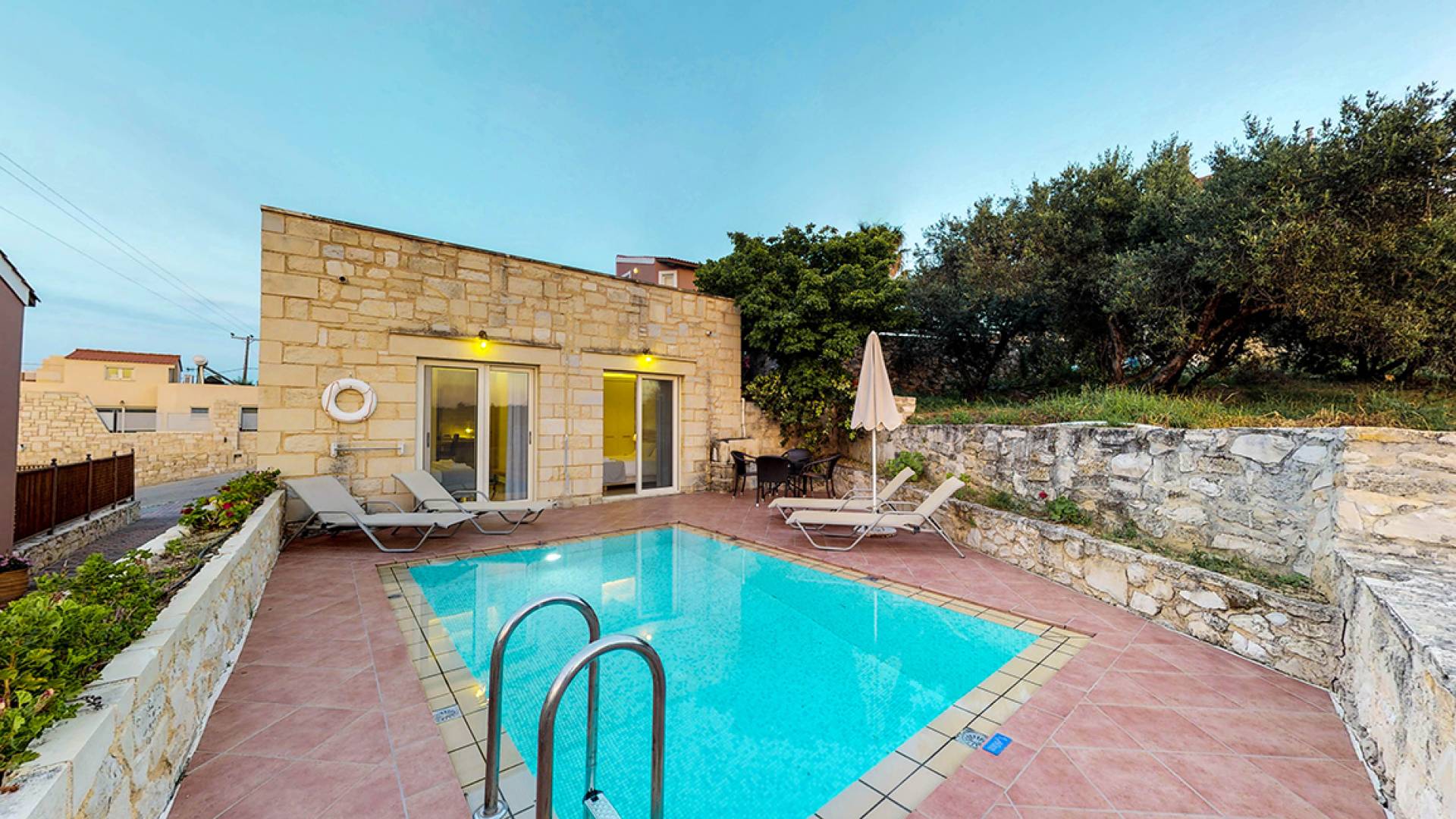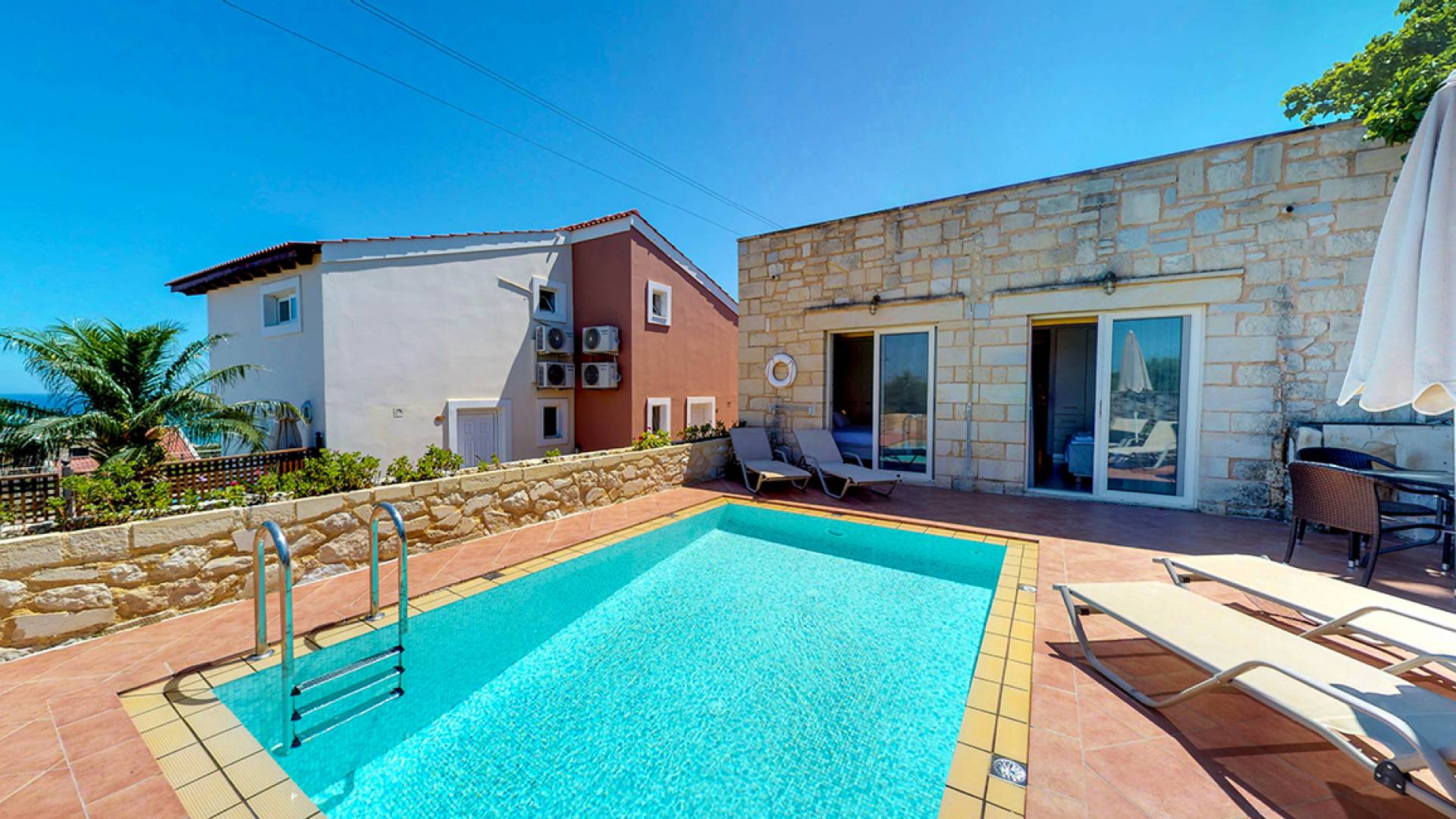 Отдельный дом отдыха, 75 кв.м, в котором могут разместиться до 5 человек. Lophos House Chania имеет 2 спальни с двуспальными кроватями, частный сад с бассейном, террасу с прекрасным видом на море, полностью оборудованную кухню и гостиную с диваном-кроватью и ванной. Lophos House Chania идеально подходит для отдыха и является оптимальным выбором для тех, кто предпочитает комфортный, спокойный и спокойный отдых без стресса.