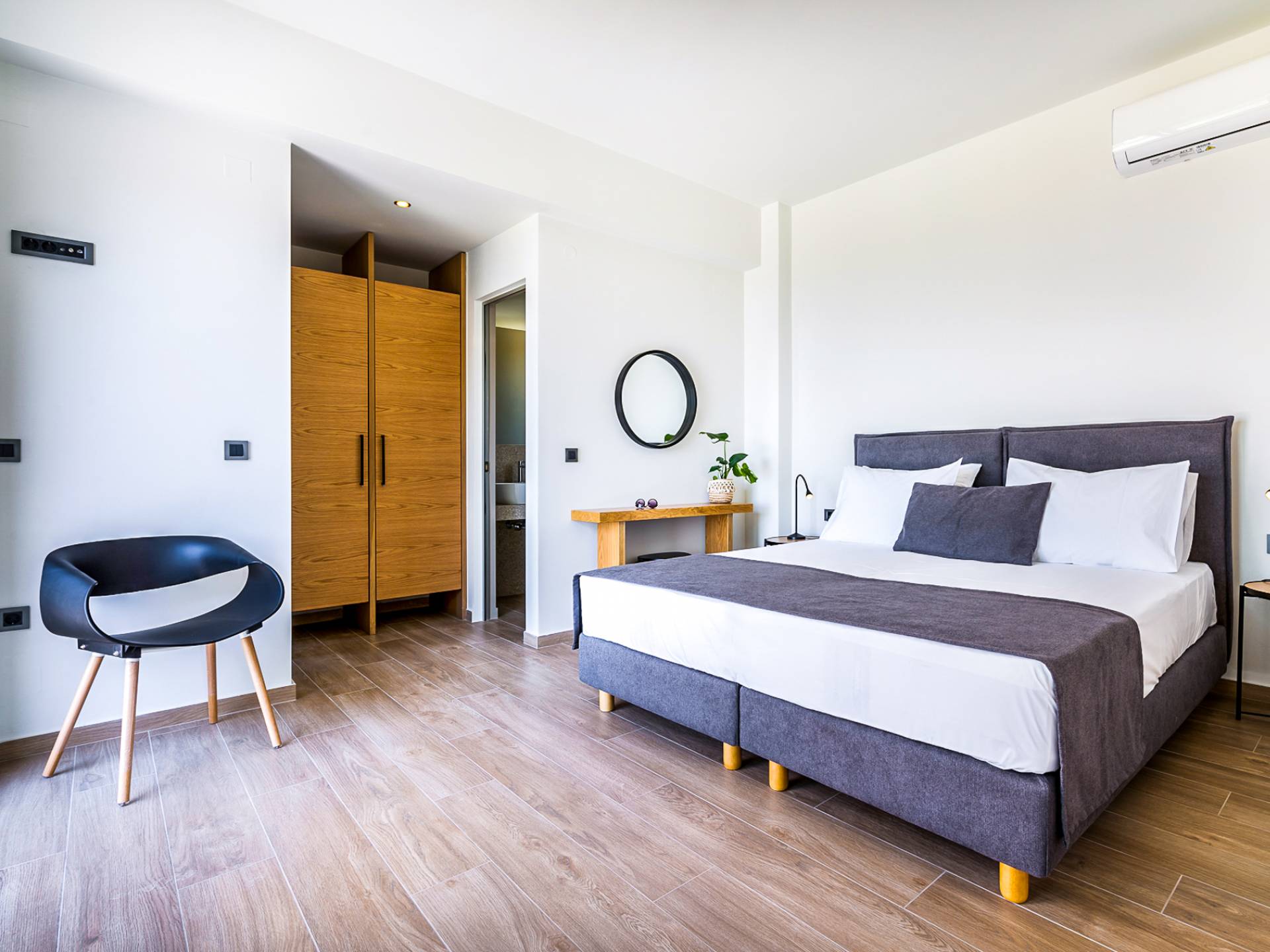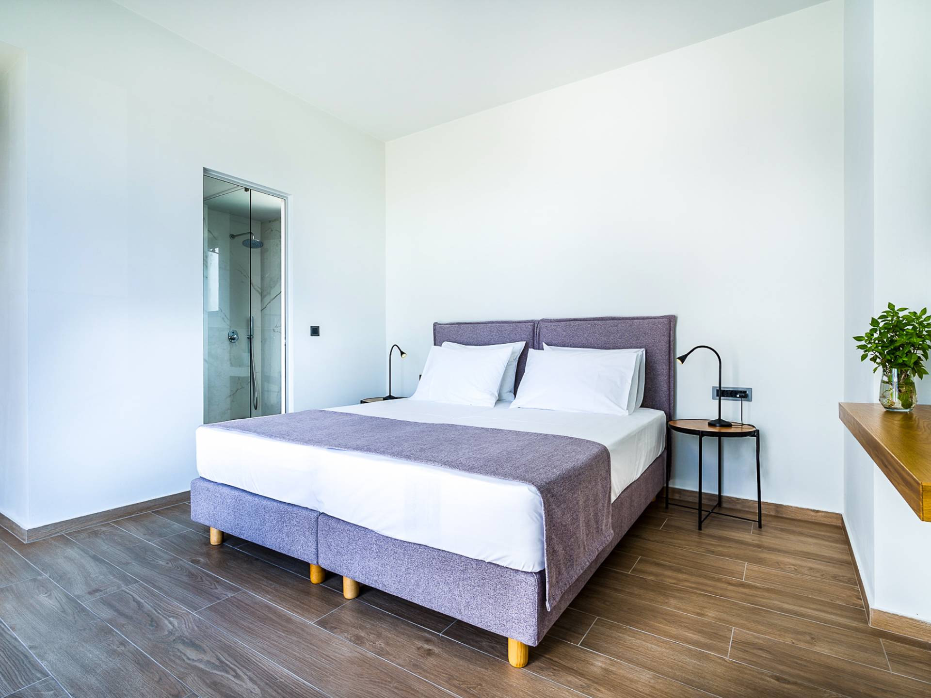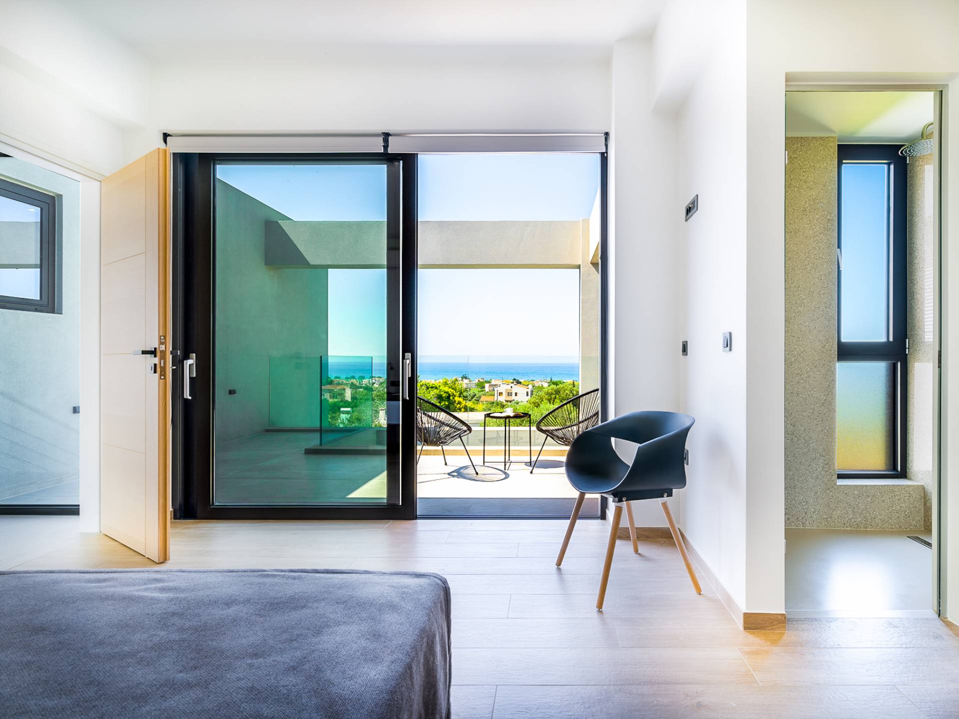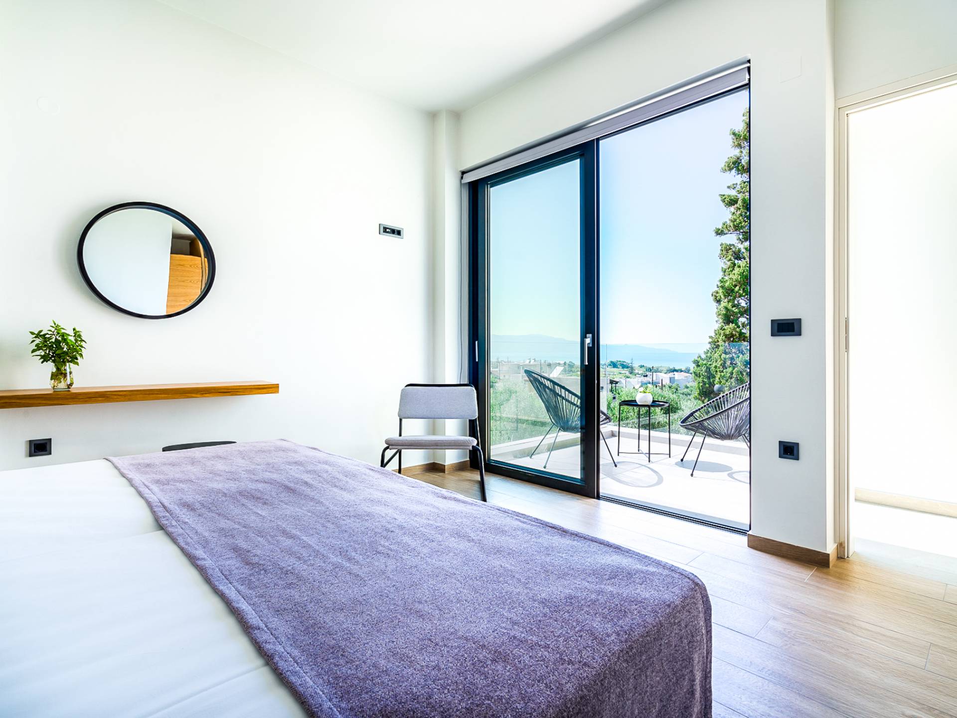 Дом площадью 250 кв.м. Вилла может похвастаться 4 спальнями с ванными комнатами, в которых могут разместиться 8 гостей. Выйдя на подъездную дорогу, можно увидеть, что Nea Villa 2 Crete — вторая из двух дошедших до нас вилл. Яркий кубический дизайн и стена со стеклянными панелями создают невероятный прием на божественной вилле. Каждая деталь используется для создания ощущения простора и простоты: от огромных стеклянных панелей до открытой лестницы. Чистые линии, успокаивающие тона и дерево приглашают вас в большое жилое пространство открытой планировки.