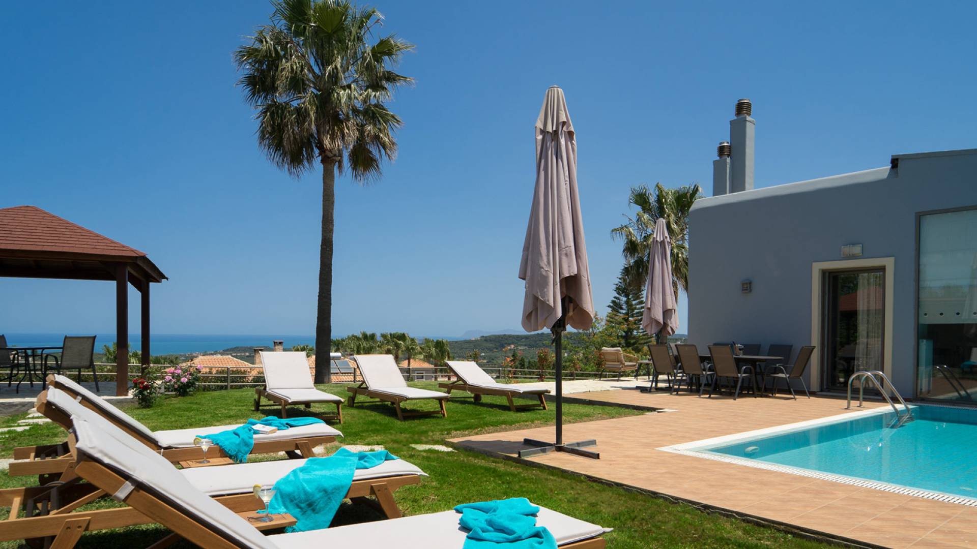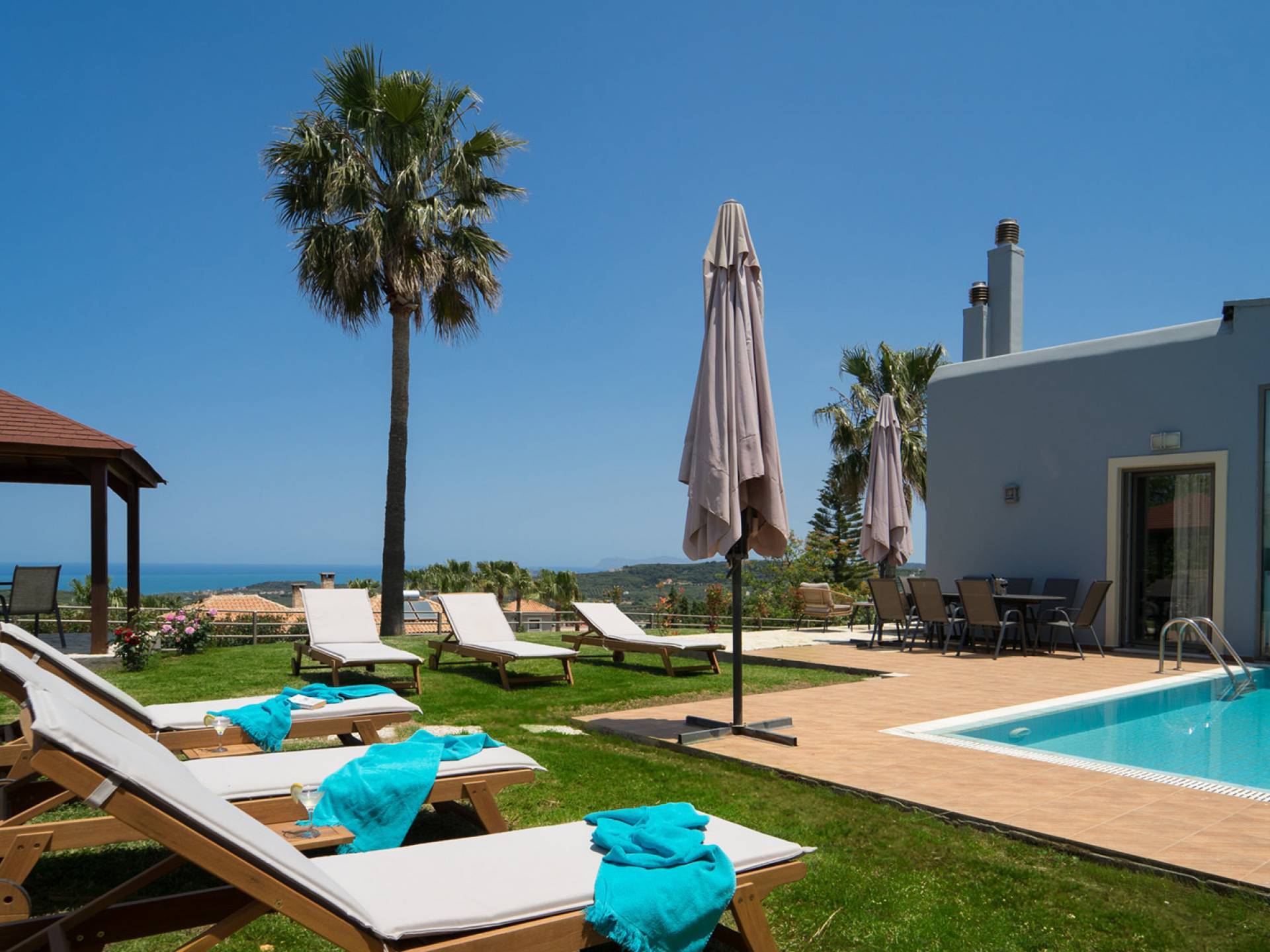 Королевская вилла Ханья в аренду в Сели, район Платаниас, Ханья, Крит. Royal Villa Chania - это недавно построенная элегантная и роскошная вилла с 3 спальнями, расположенная на вершине холма, в деревне Сели, в районе Платаниас, откуда открывается великолепный панорамный вид на лазурное море и остров Теодору, а также внутренние районы и окрестности. горы.