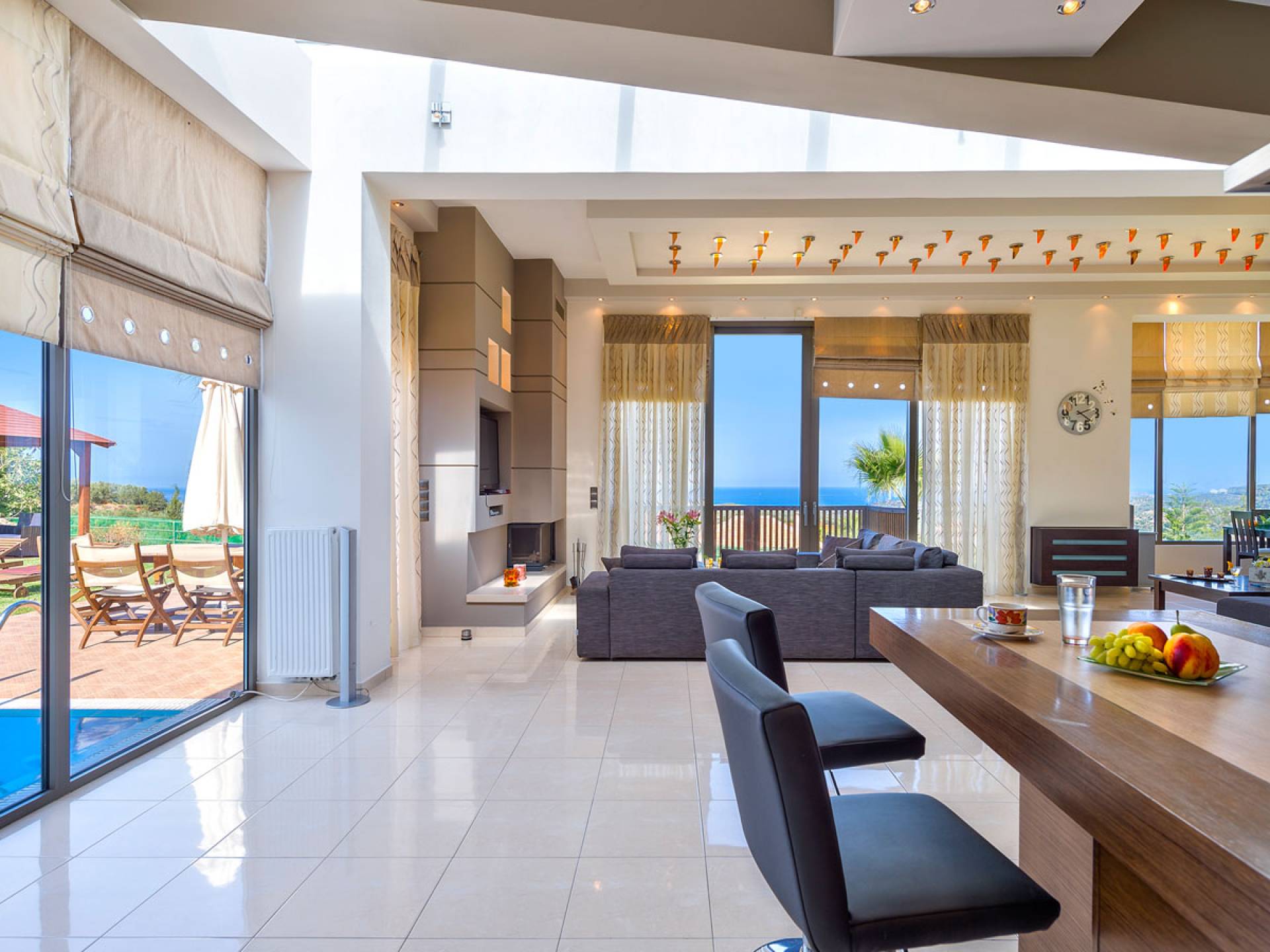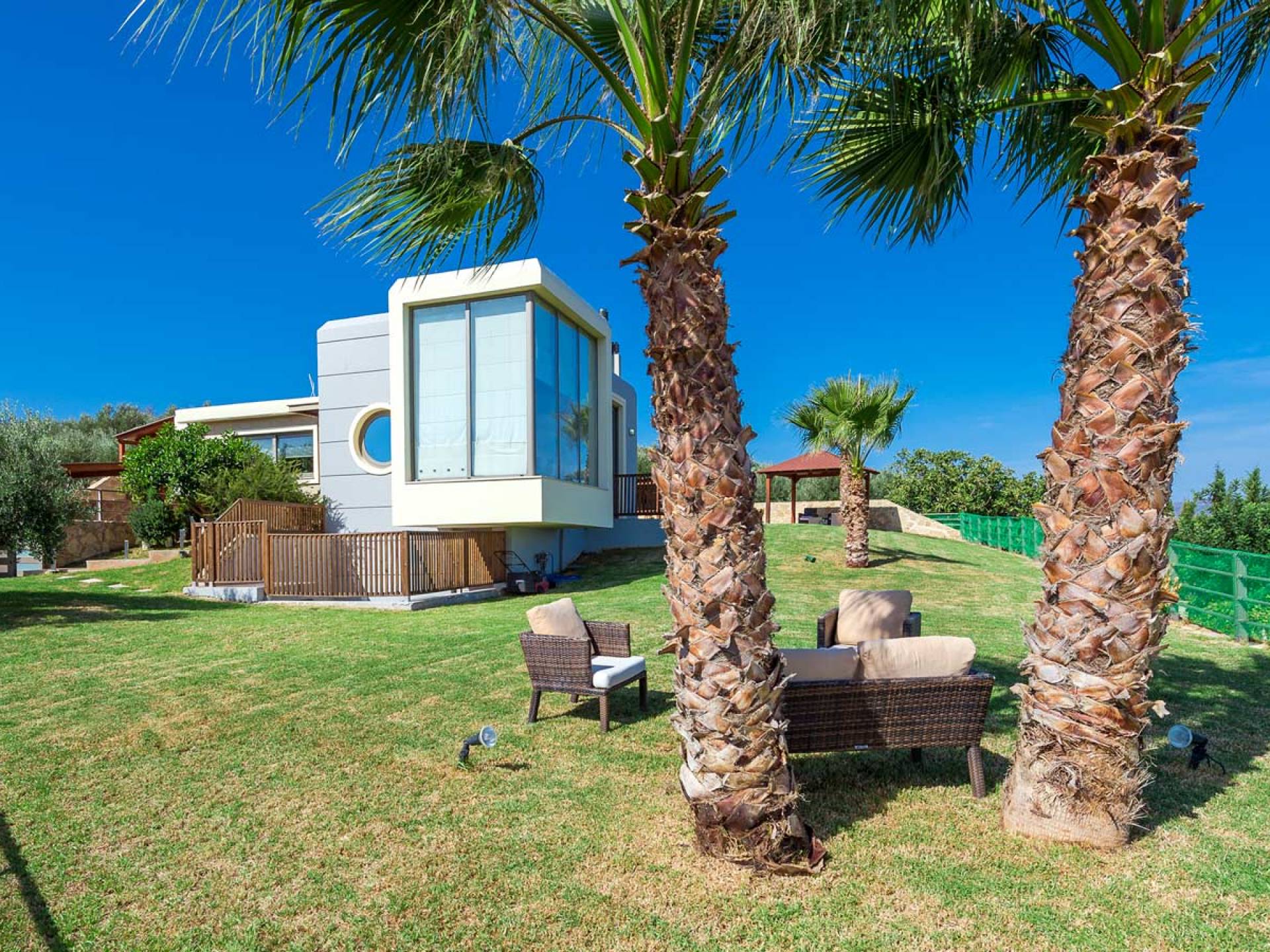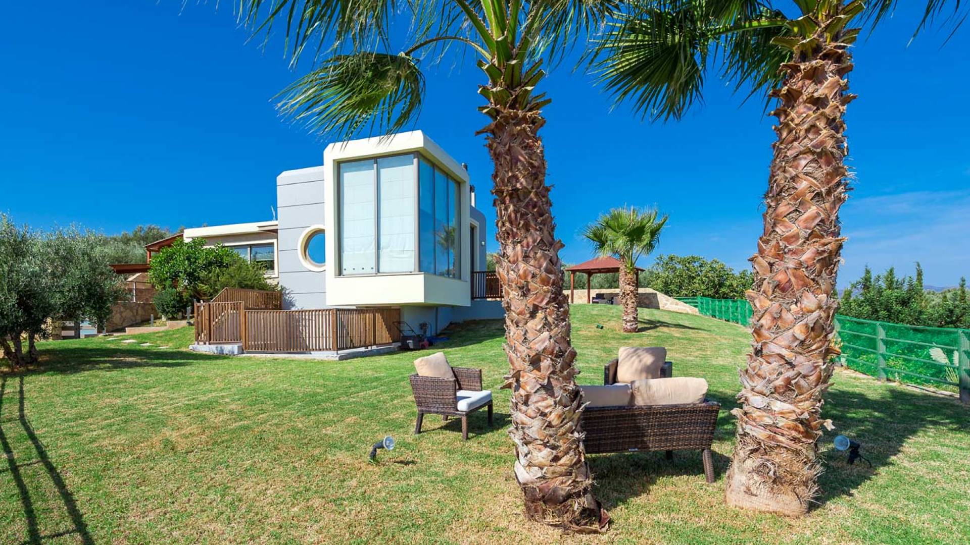 Royal Villa Chania также имеет просторную кухню открытой планировки, столовую и гостиную, а также большой сад с бассейном и полностью оборудованными принадлежностями для барбекю на открытом воздухе. Внутри дом представляет собой идеальное сочетание высокой эстетики и комфорта: много естественного света проникает через огромные стеклянные двери и окна, откуда открывается завораживающий вид на море, а эффект солнечного света еще больше усиливается за счет оконного потолка. . Элегантно оформленные интерьеры создают изысканную атмосферу с роскошными современными удобствами, где гости могут насладиться расслабляющим, уединенным и уникальным отдыхом. Тем не менее, с другой стороны, вилла также обеспечивает высочайший уровень безопасности с такими современными функциями, как система безопасности с лазерной технологией и пуленепробиваемое стекло на всей территории. Вилла площадью 200 м2 подарит вам незабываемый отдых на острове Крит.