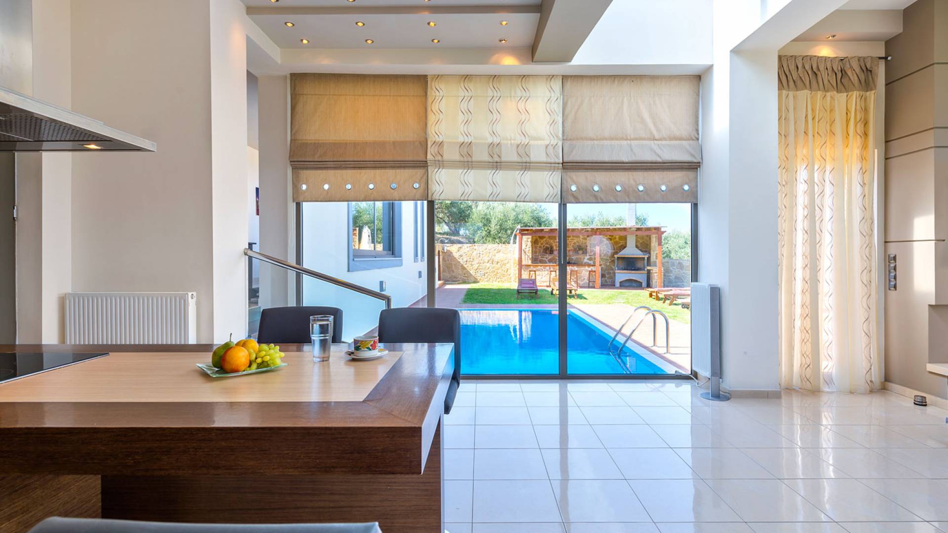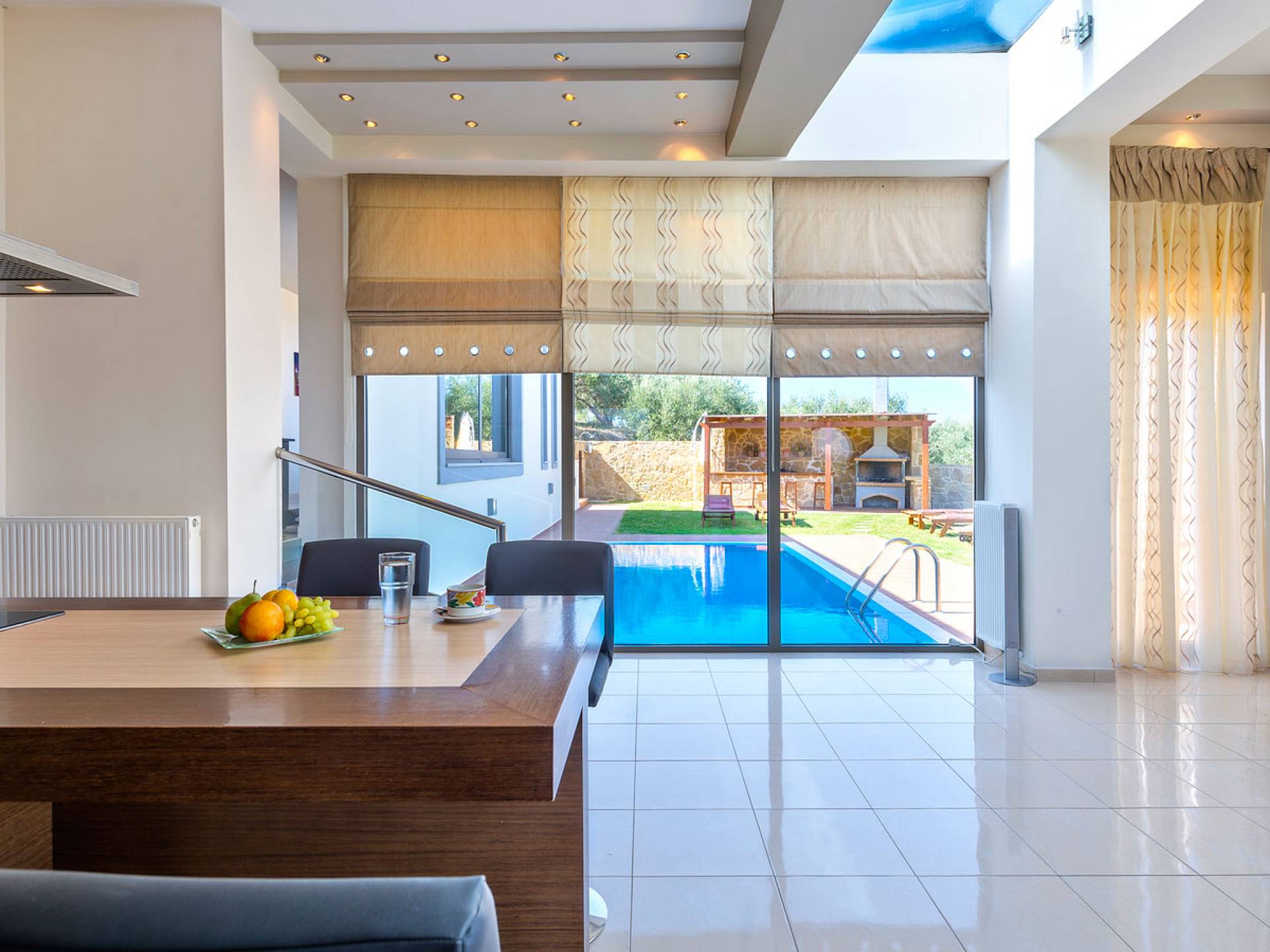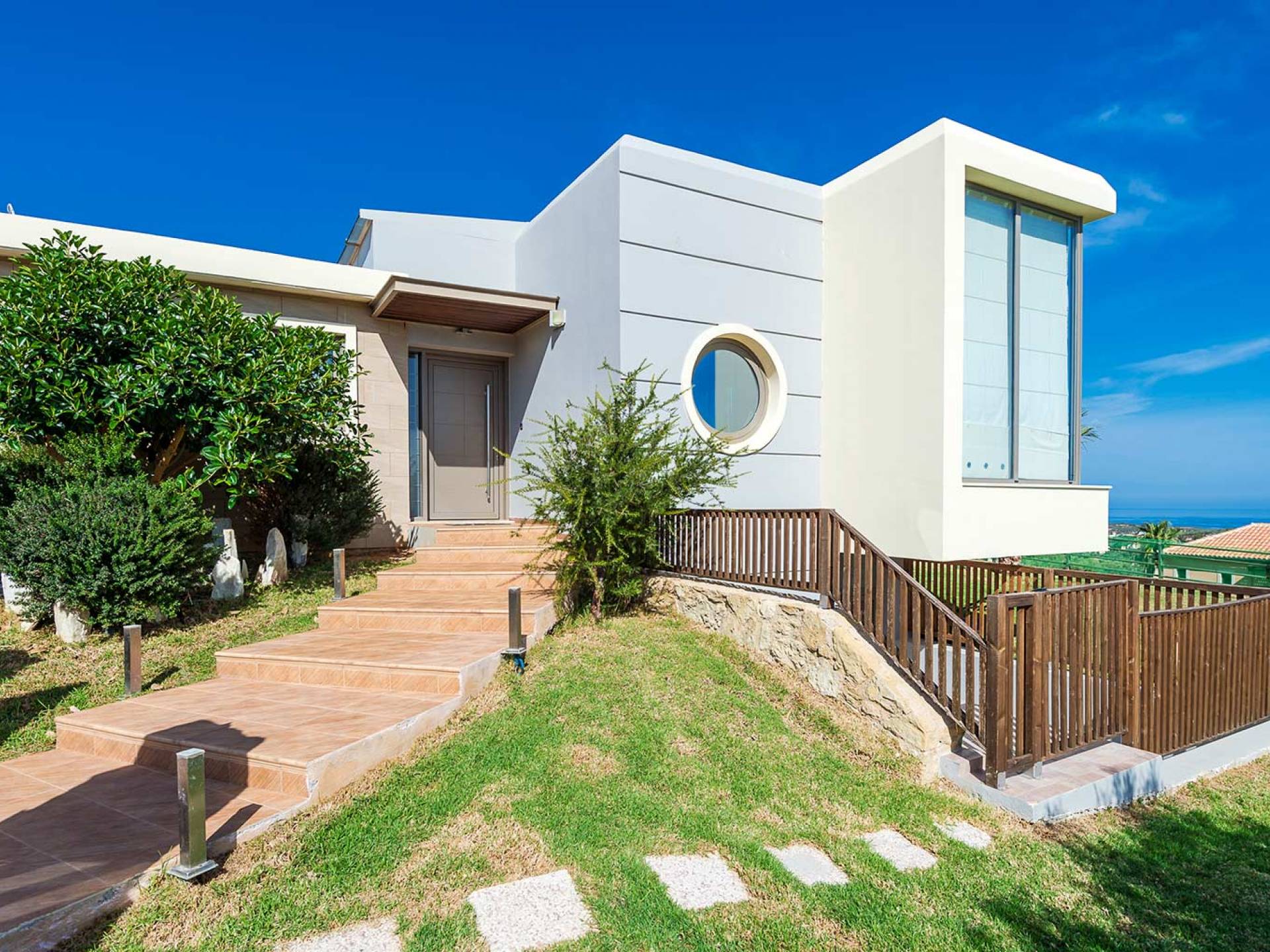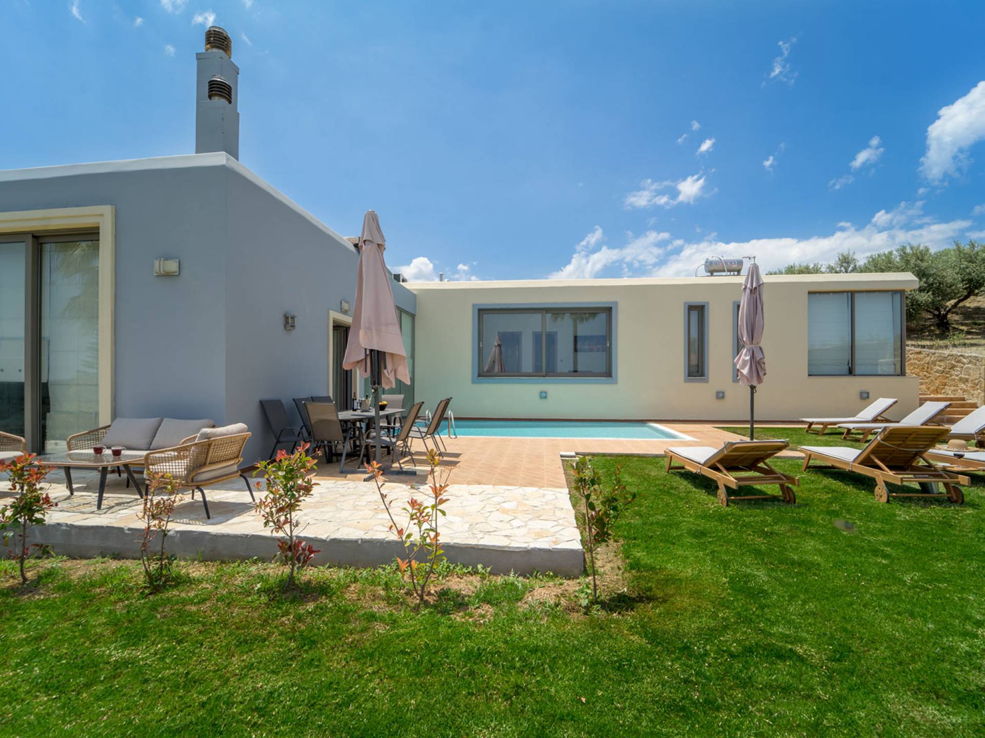 Royal Villa Chania также имеет просторную кухню открытой планировки, столовую и гостиную, а также большой сад с бассейном и полностью оборудованными принадлежностями для барбекю на открытом воздухе. Внутри дом представляет собой идеальное сочетание высокой эстетики и комфорта: много естественного света проникает через огромные стеклянные двери и окна, откуда открывается завораживающий вид на море, а эффект солнечного света еще больше усиливается за счет оконного потолка. . Элегантно оформленные интерьеры создают изысканную атмосферу с роскошными современными удобствами, где гости могут насладиться расслабляющим, уединенным и уникальным отдыхом. Тем не менее, с другой стороны, вилла также обеспечивает высочайший уровень безопасности с такими современными функциями, как система безопасности с лазерной технологией и пуленепробиваемое стекло на всей территории. Вилла площадью 200 м2 подарит вам незабываемый отдых на острове Крит.