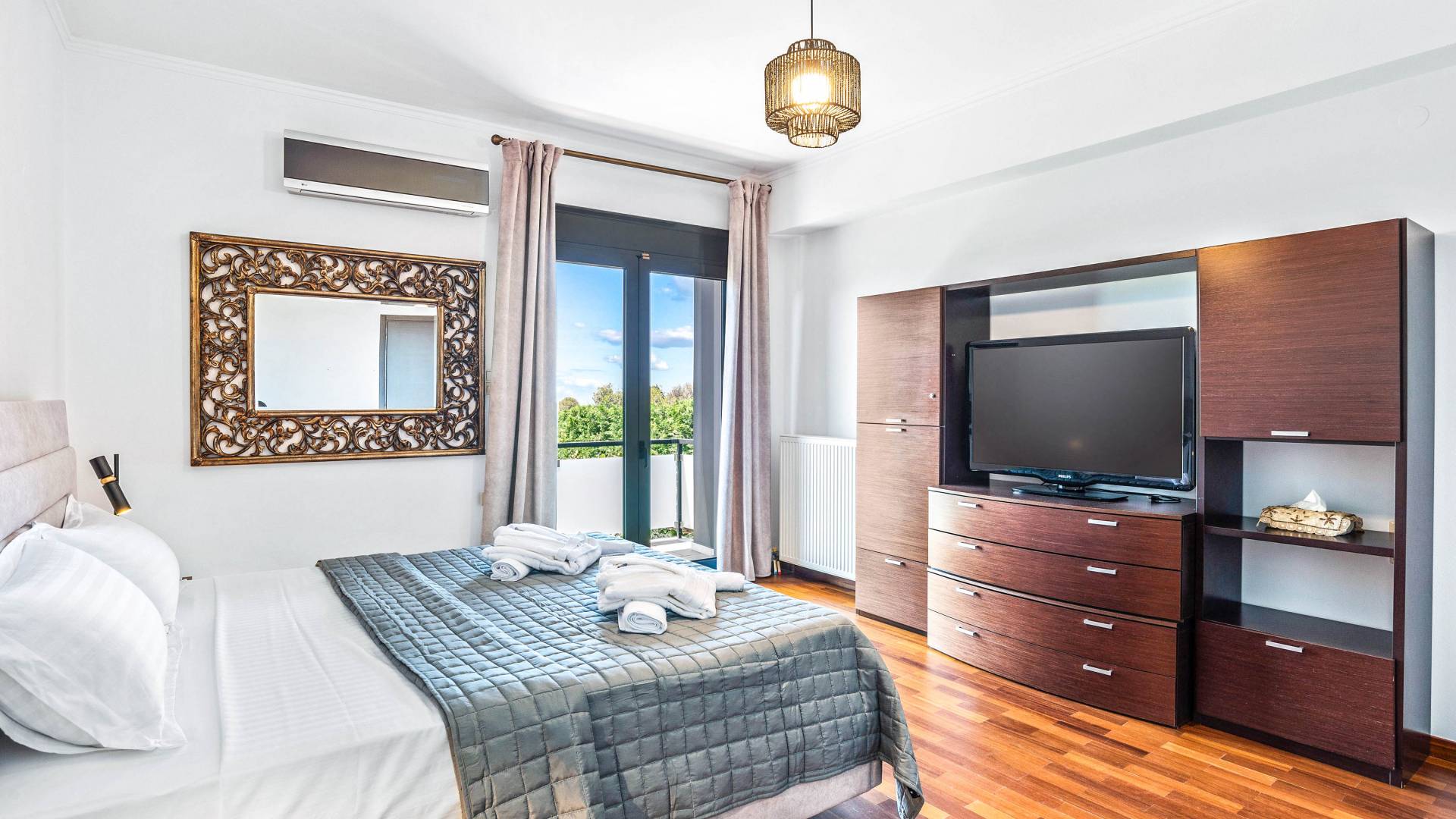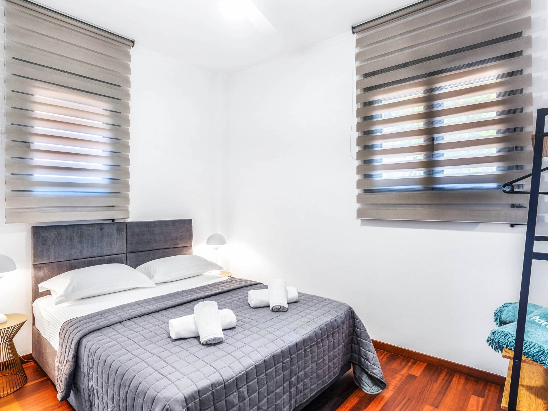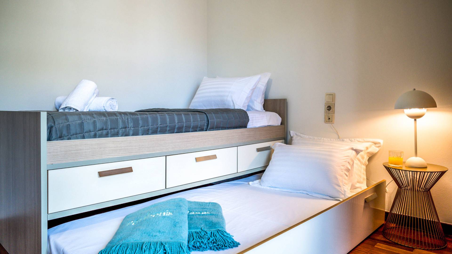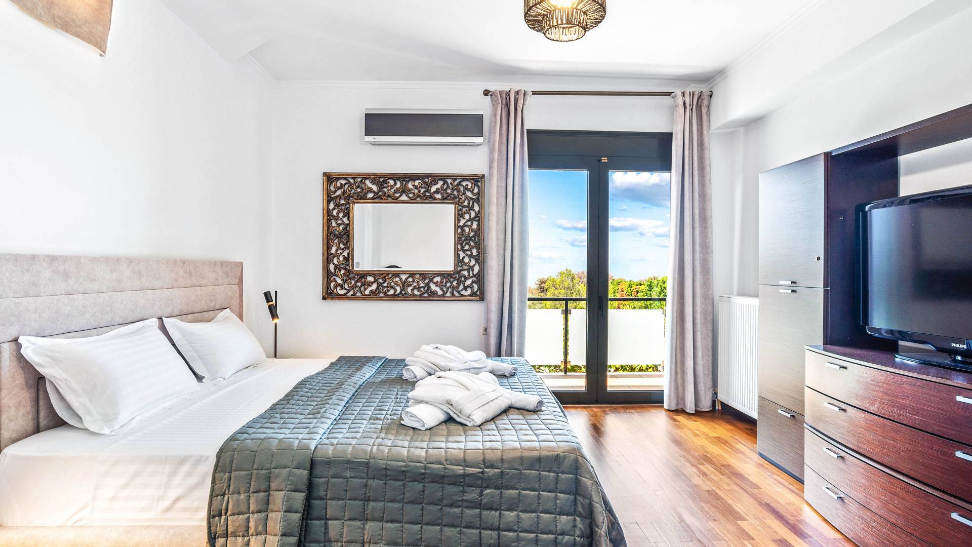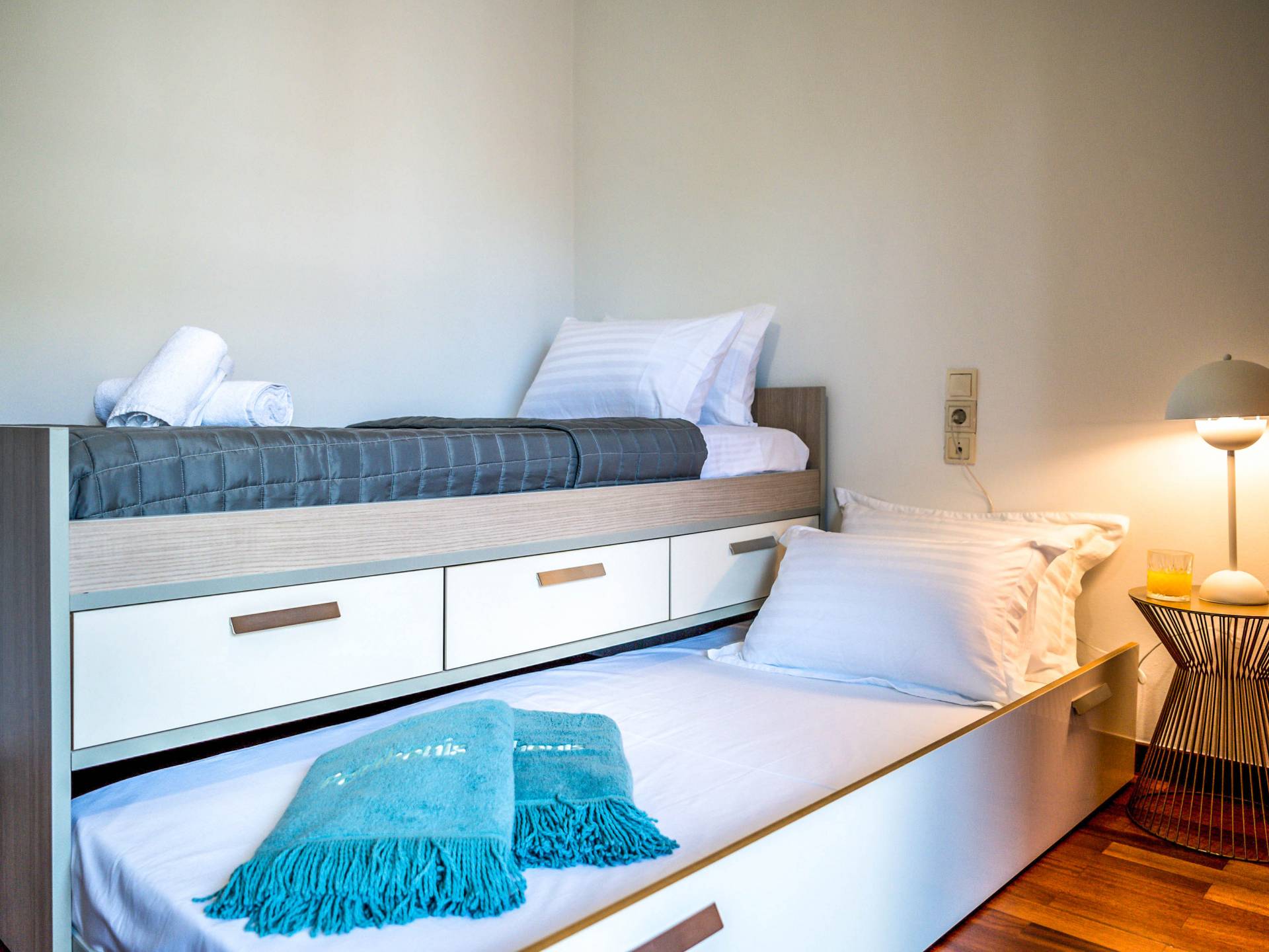 Четыре спальни продуманно спроектированы так, чтобы обеспечить спокойный рай для спокойного ночного сна. Каждый номер элегантно обставлен, украшен роскошными постельными принадлежностями и оснащен местом для хранения ваших вещей. Просыпайтесь под нежными лучами солнца и наслаждайтесь моментом, выходя на собственную террасу или балкон, чтобы вдохнуть свежий утренний воздух.