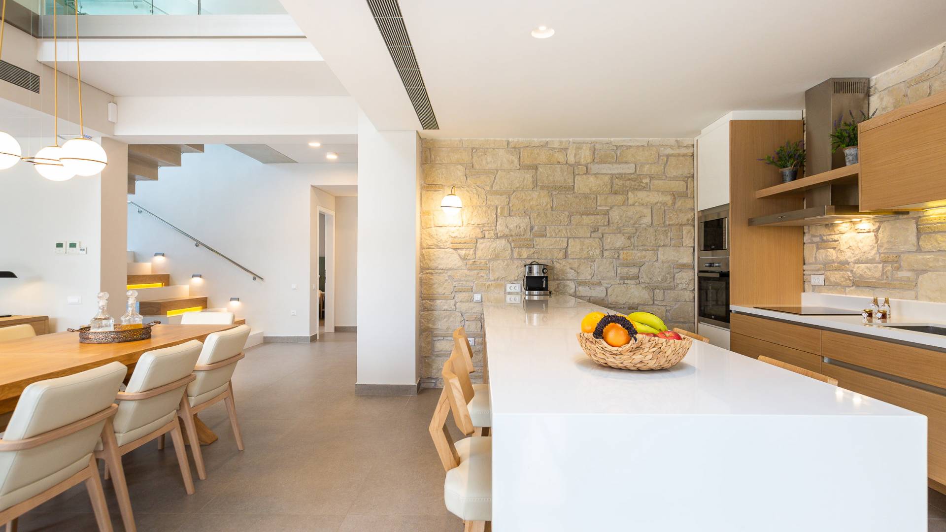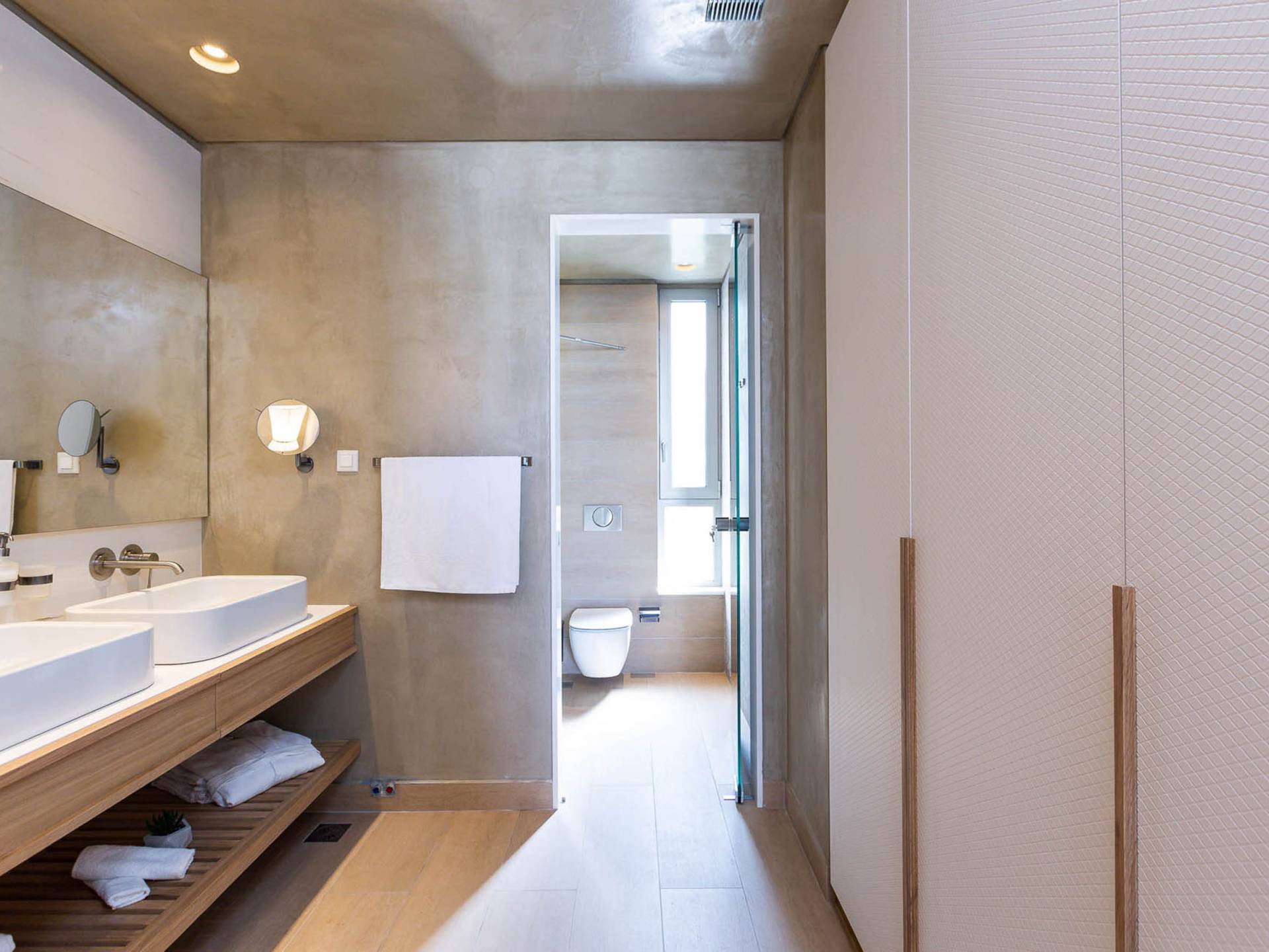 На верхнем этаже расположены еще три спальни с большими двуспальными кроватями и собственными ванными комнатами. Есть также большие оконные двери, которые открываются на собственный просторный балкон с видом на море и бассейн. Вокруг бассейна вы найдете шезлонги, зонтики и зону отдыха / отдыха. В зоне гаража вы можете найти запирающийся гараж с подъездом к дороге с одним машинным местом на виллу и прямым доступом к нижнему этажу виллы.