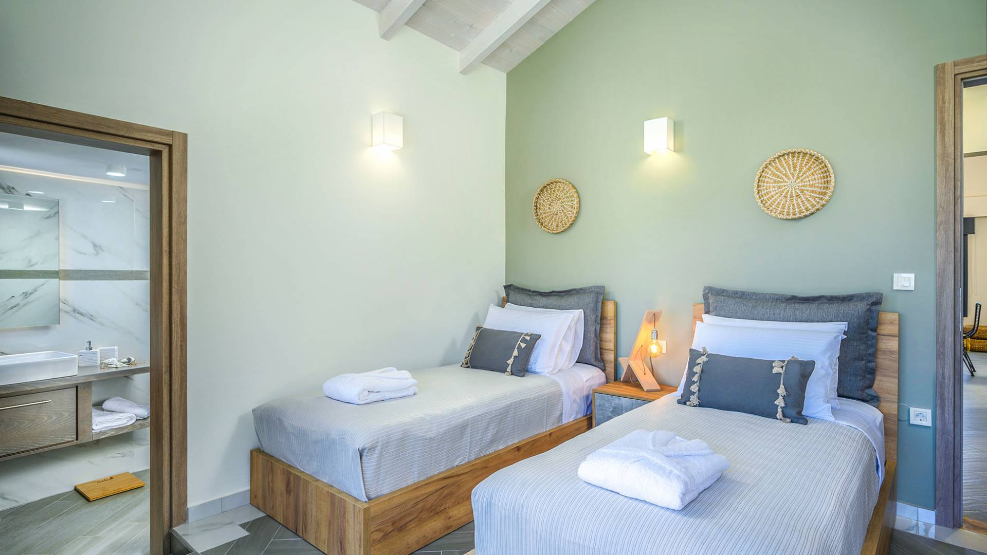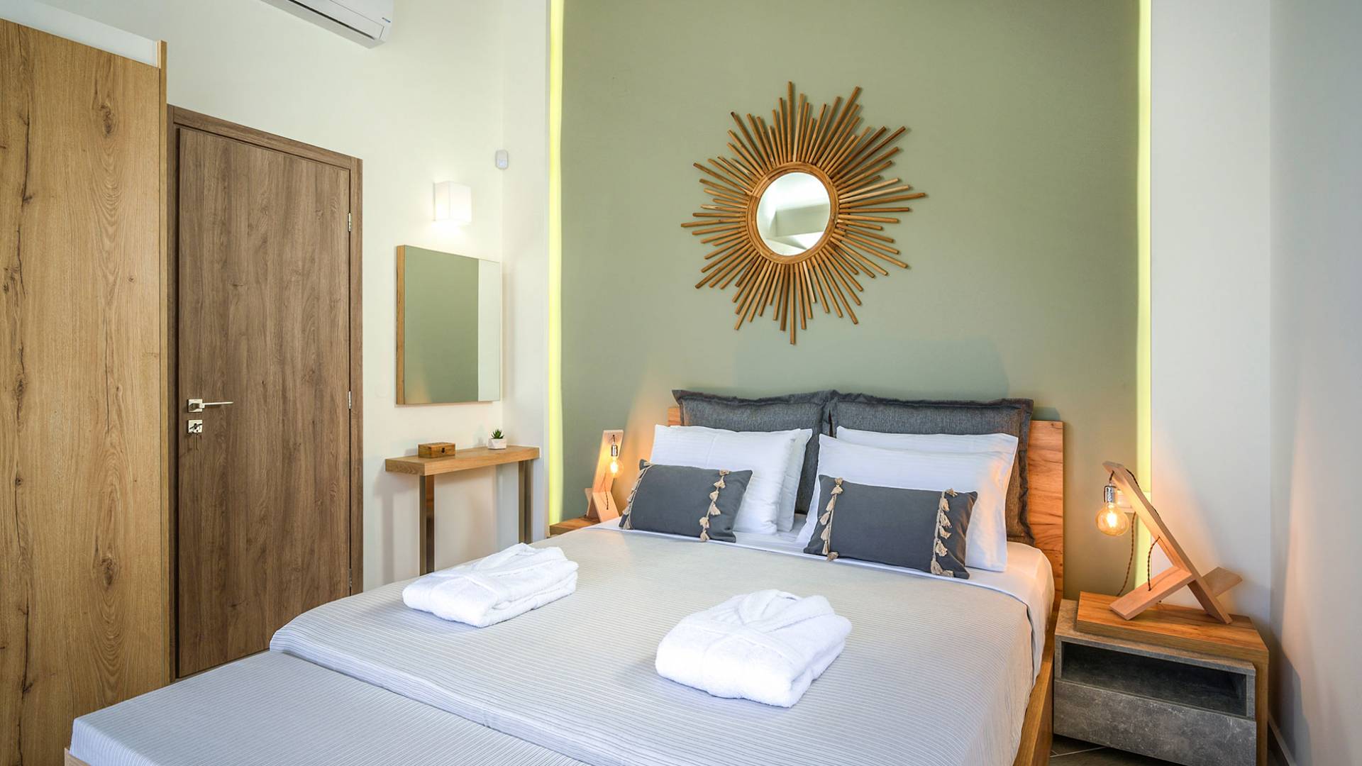 Удобства роскошной аренды покрывают даже самого требовательного посетителя, имея все удобства, которые можно ожидать от современной роскошной резиденции. От полностью оборудованной кухни до просторных номеров с кондиционерами, все было спроектировано с вниманием к деталям и создано, чтобы предложить вам незабываемый отдых. Оставьте двери и окна открытыми, и пусть солнечный свет наполнит дом. На вилле есть 2 спальни, одна с 1 двуспальной кроватью и одна с 2 односпальными кроватями.