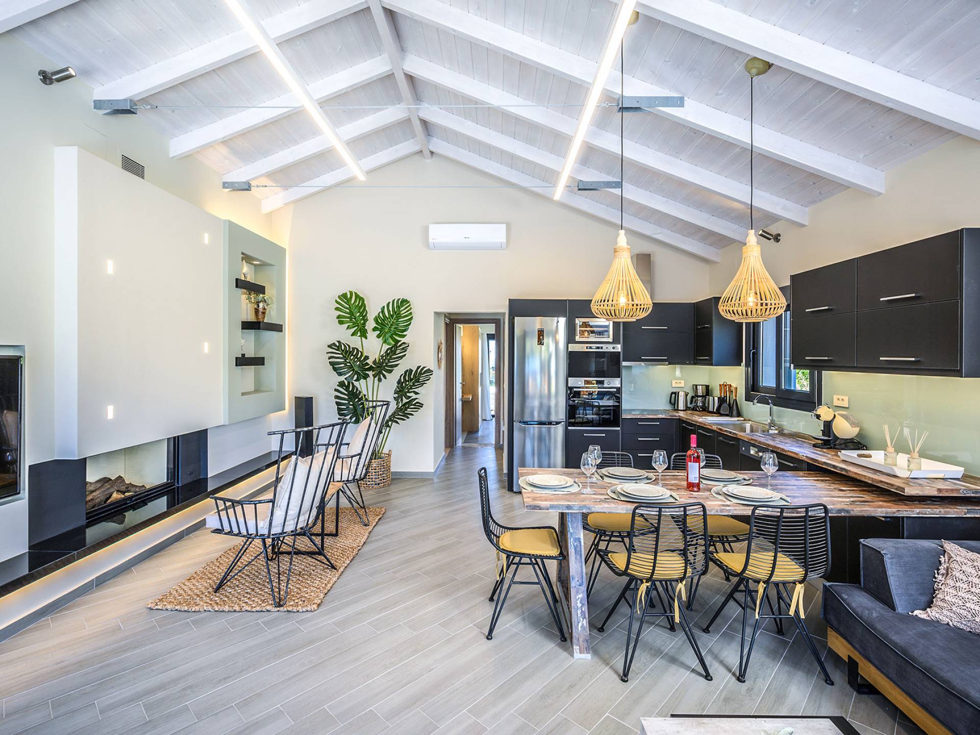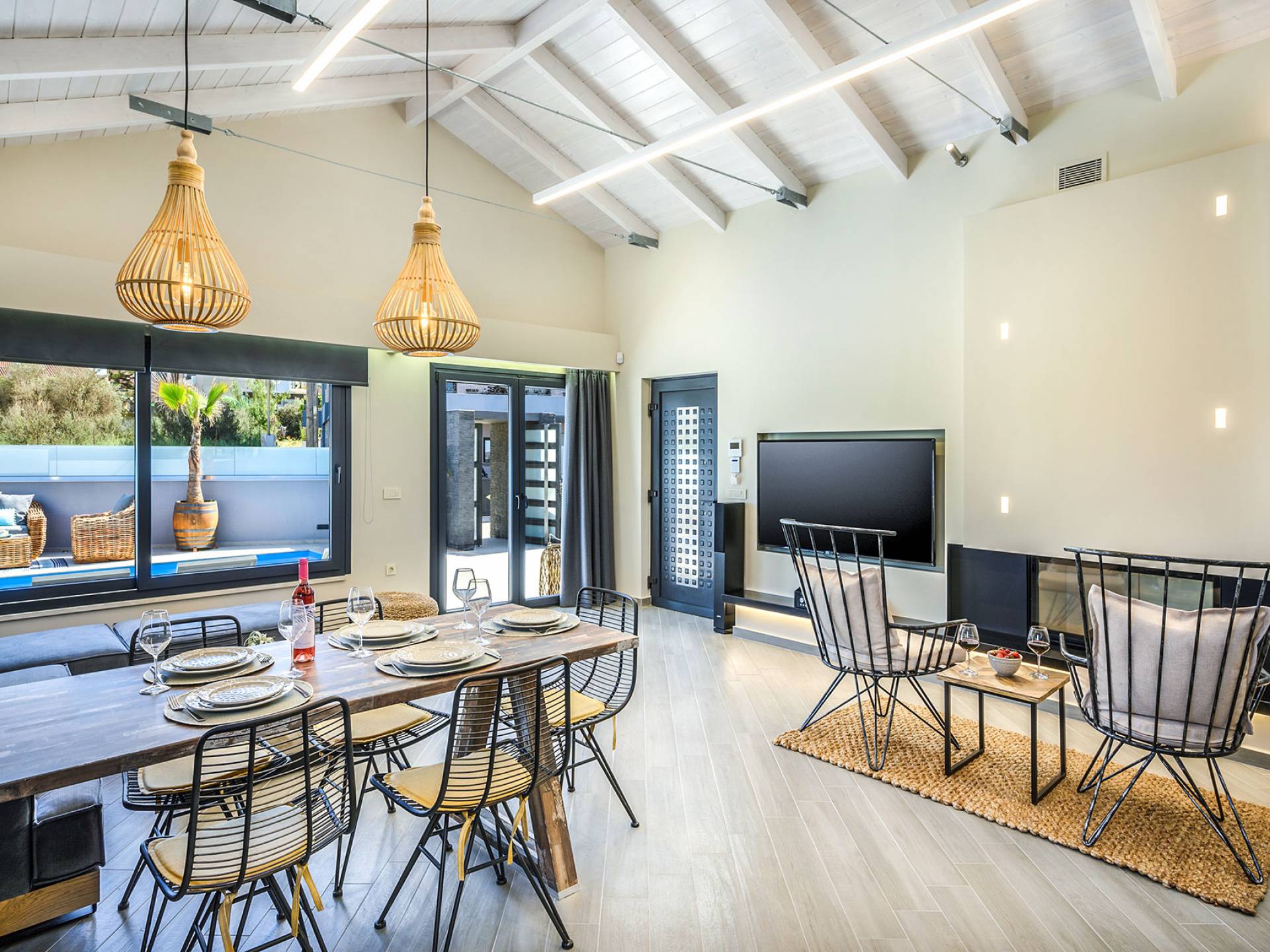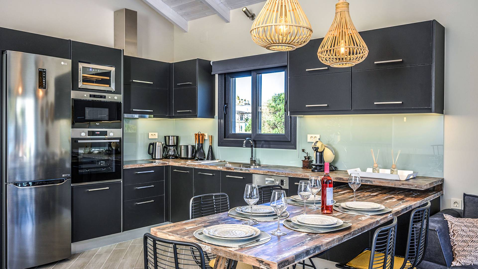 Его изысканный архитектурный дизайн, скромный, но стильный, с черепичной крышей и кажущимися асимметричными линиями, подчеркивающими его архитектурную индивидуальность, произведет впечатление даже на тех, кто не является его сторонником. Современный и уютный, в нем есть открытый бассейн, принадлежности для барбекю и терраса, чтобы обеспечить моменты райского отдыха и веселья с вашими близкими. Выпейте напиток в бассейне и наблюдайте за одним из самых завораживающих закатов, ныряя в море.