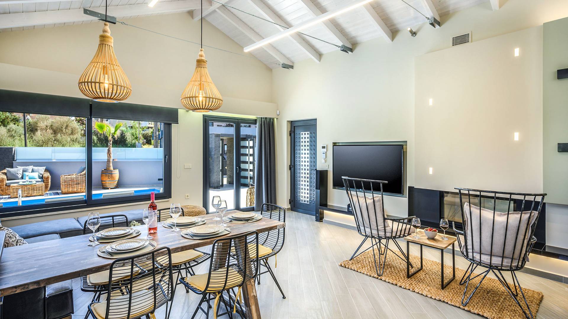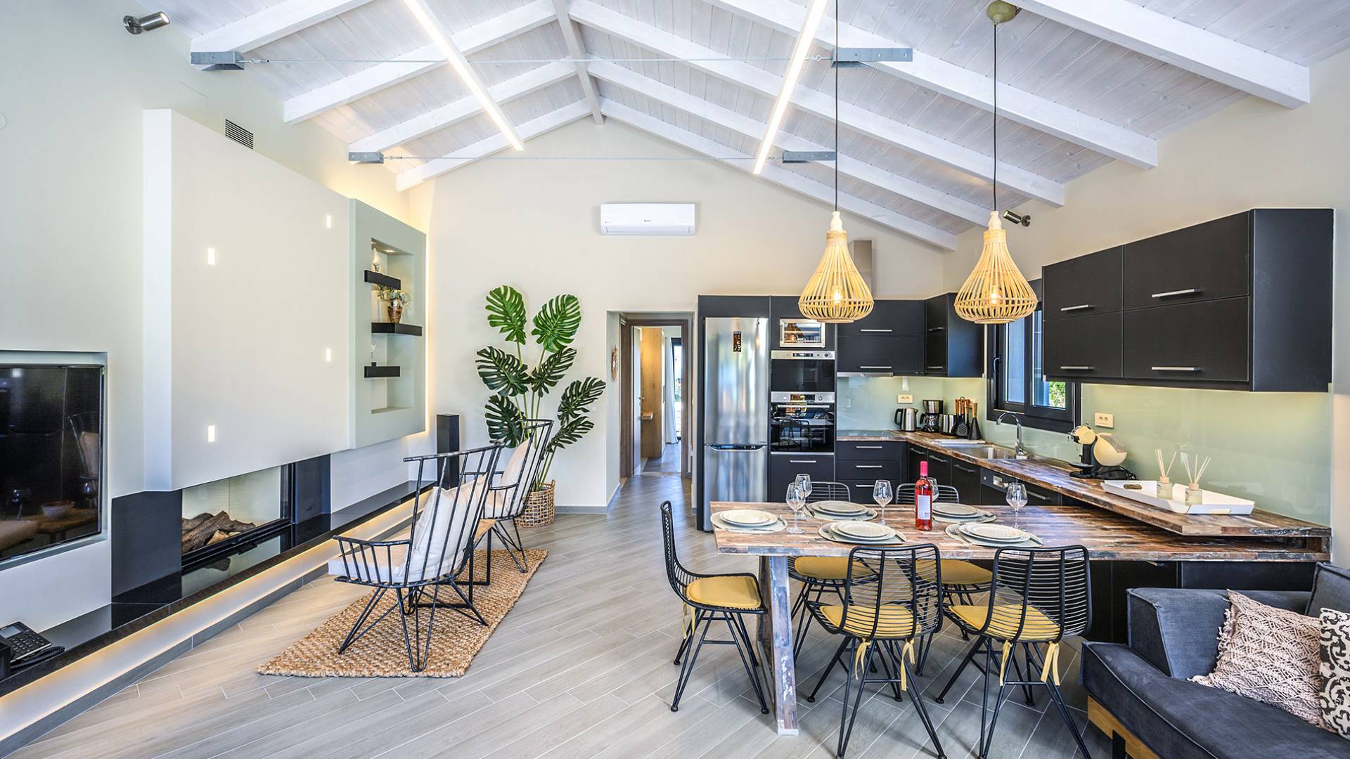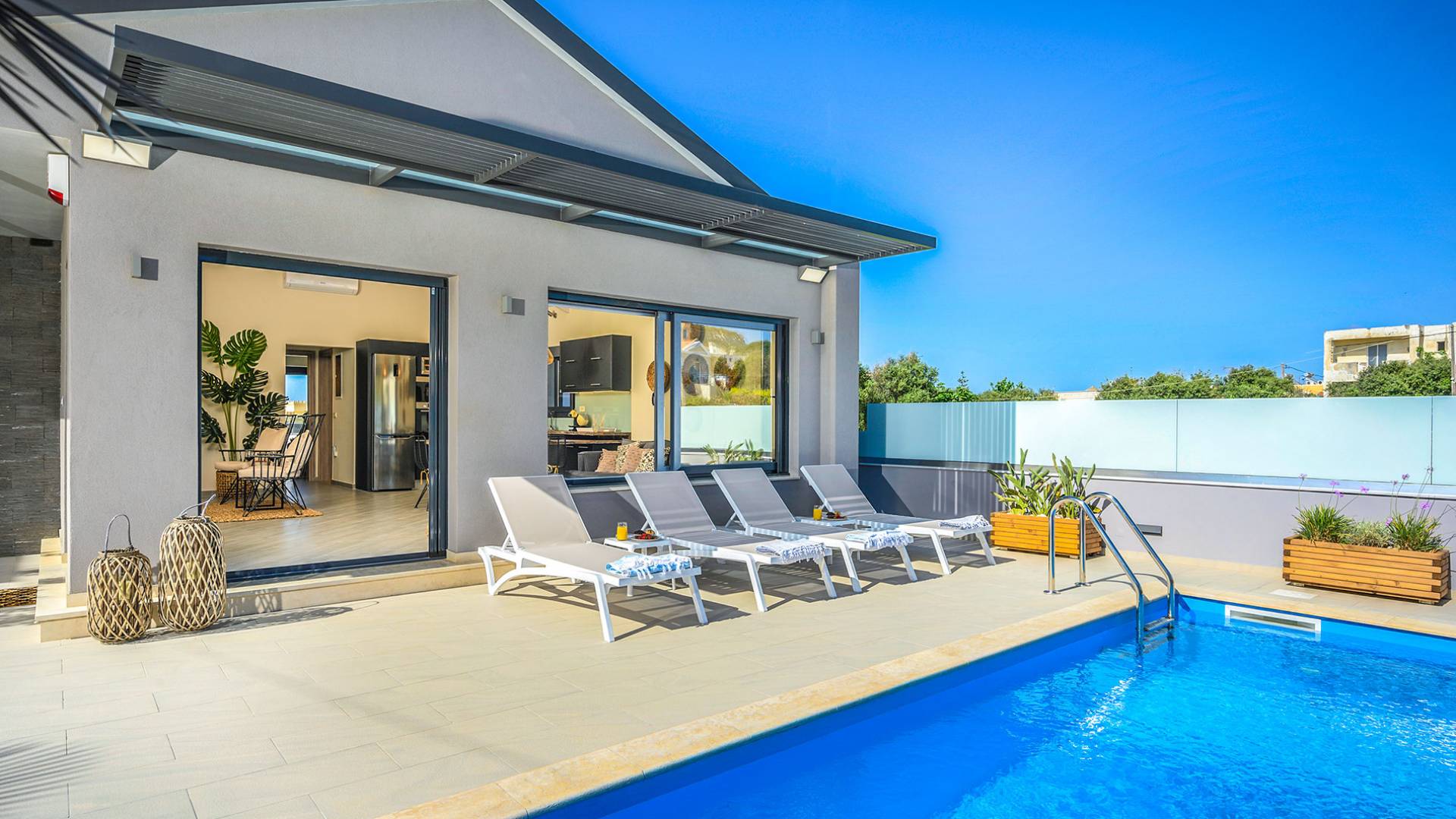 Его изысканный архитектурный дизайн, скромный, но стильный, с черепичной крышей и кажущимися асимметричными линиями, подчеркивающими его архитектурную индивидуальность, произведет впечатление даже на тех, кто не является его сторонником. Современный и уютный, в нем есть открытый бассейн, принадлежности для барбекю и терраса, чтобы обеспечить моменты райского отдыха и веселья с вашими близкими. Выпейте напиток в бассейне и наблюдайте за одним из самых завораживающих закатов, ныряя в море.