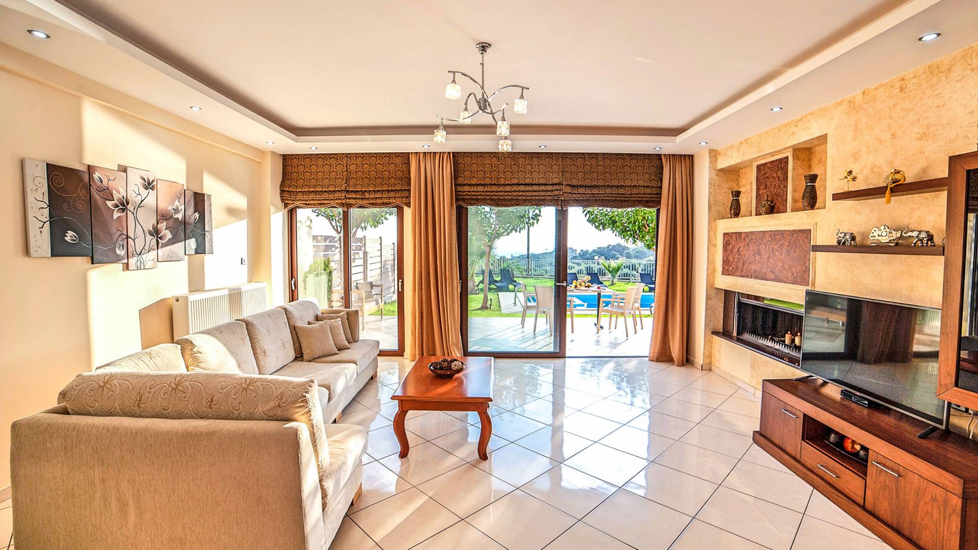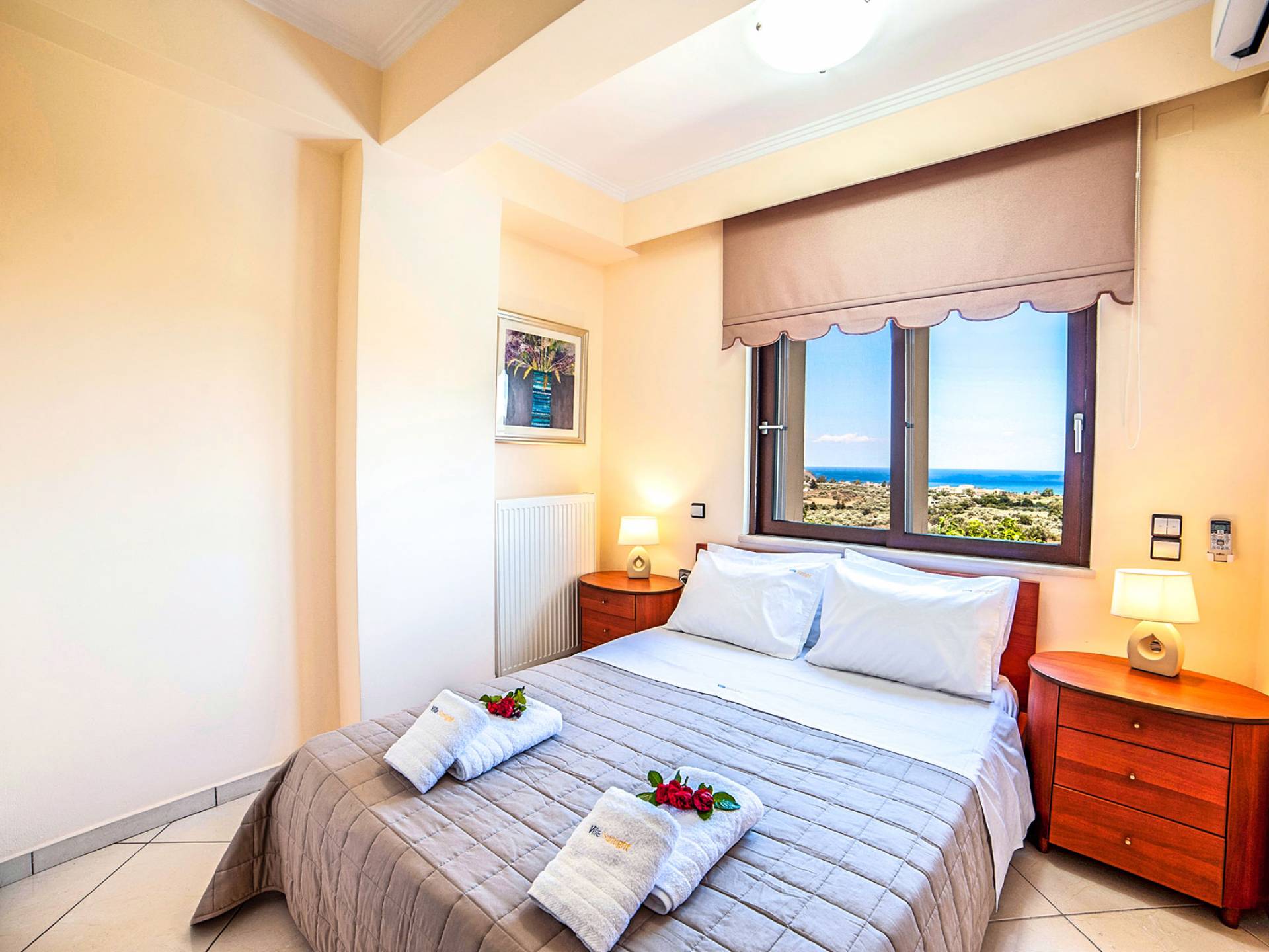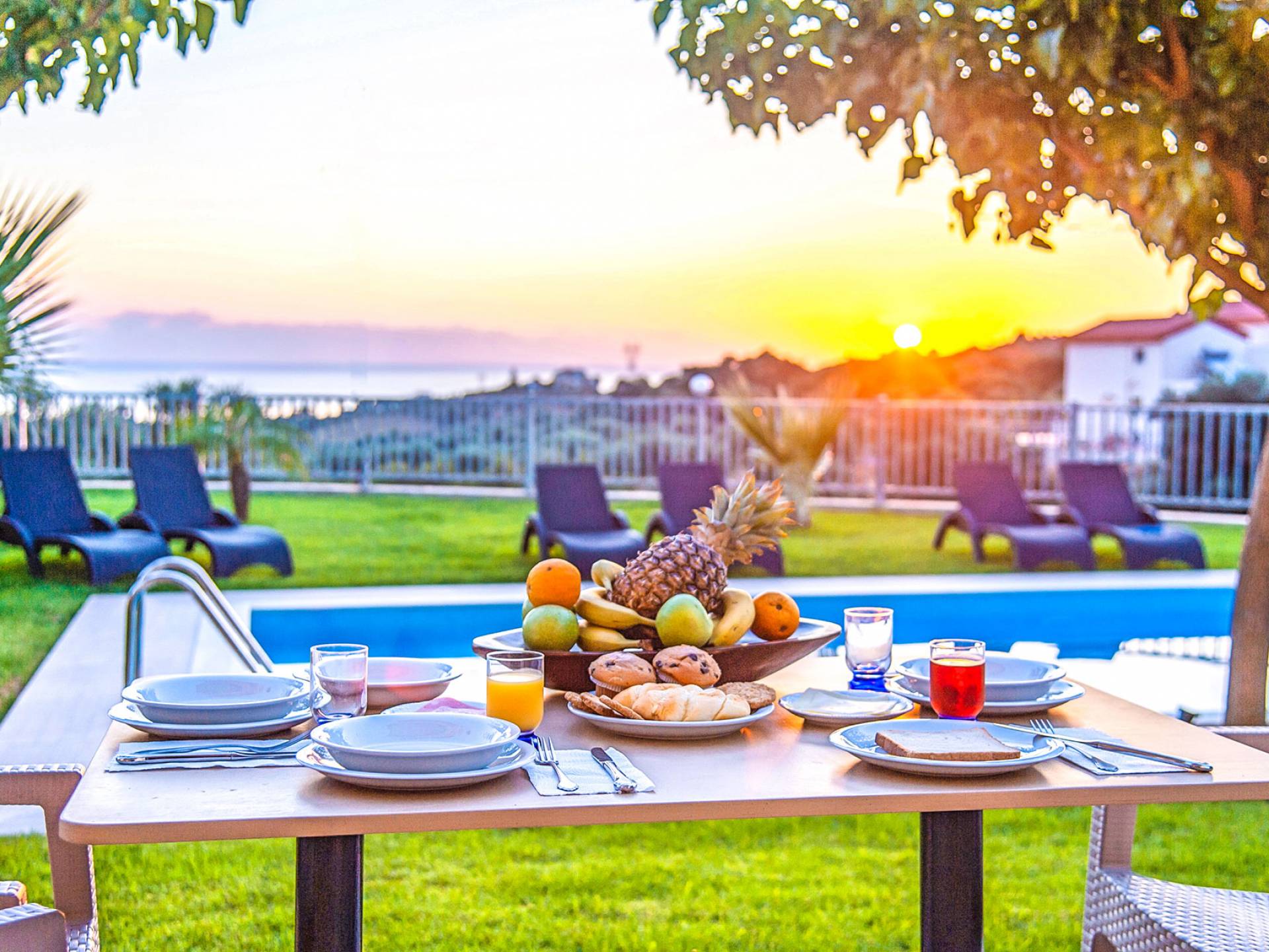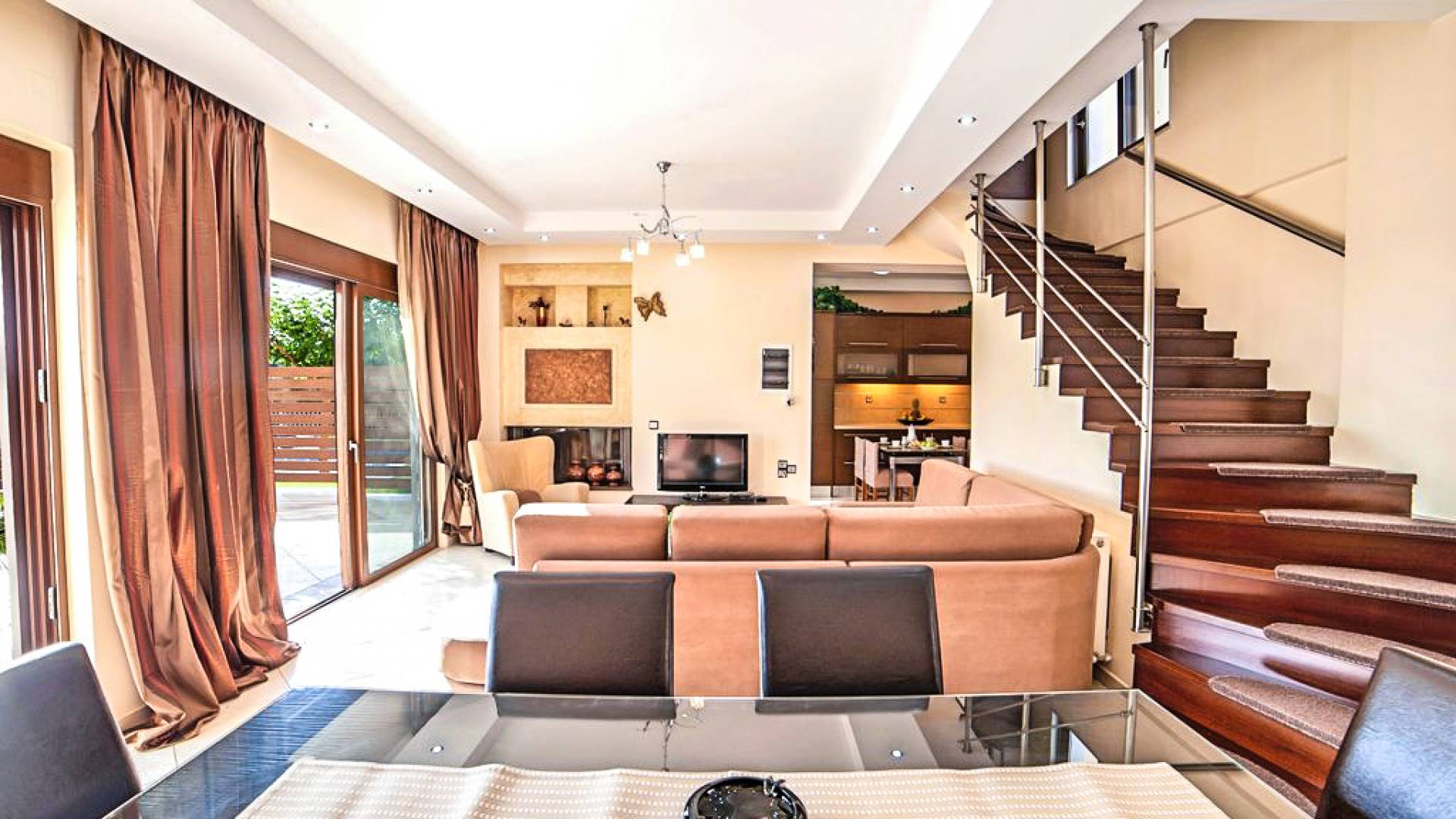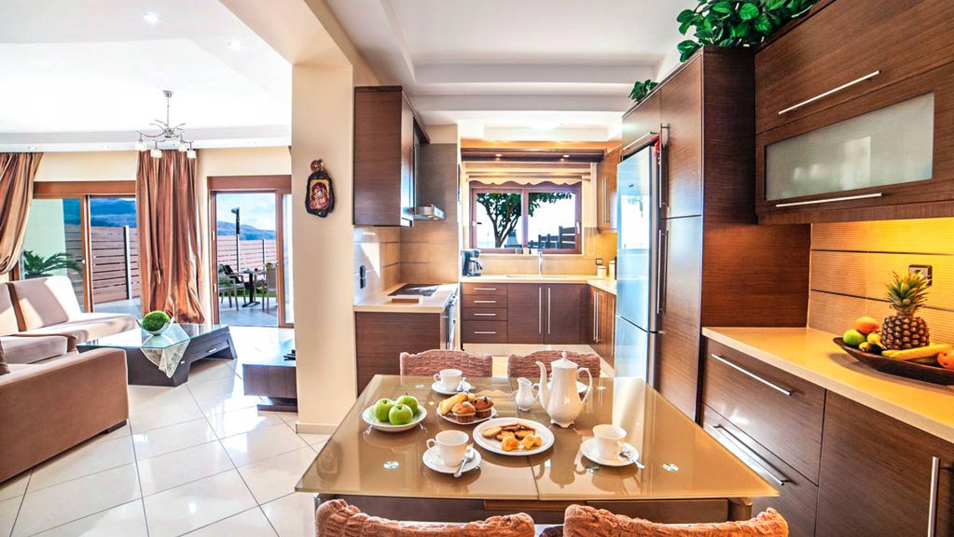 На первом этаже каждой виллы-мезонета есть гостиная открытой планировки с видом на море, окруженная стеклянными дверями, камин и спутниковое телевидение, удобные диваны и диваны, обеденный стол и полностью оборудованная кухня. На этом же уровне предусмотрена общая душевая кабина. На верхнем этаже каждой современной виллы расположены четыре спальни с двуспальными кроватями и балконами с видом на море, а также общая ванная комната с ванной и стиральной машиной. Sunlight Villas могут с комфортом разместить 8 гостей. Предоставляется бесплатный беспроводной доступ в Интернет, кондиционер в каждой спальне, утюг и фен. На внешней территории каждой виллы есть большой частный бассейн площадью 32 кв.м. с детским бассейном, шезлонгами и зонтиками от солнца.