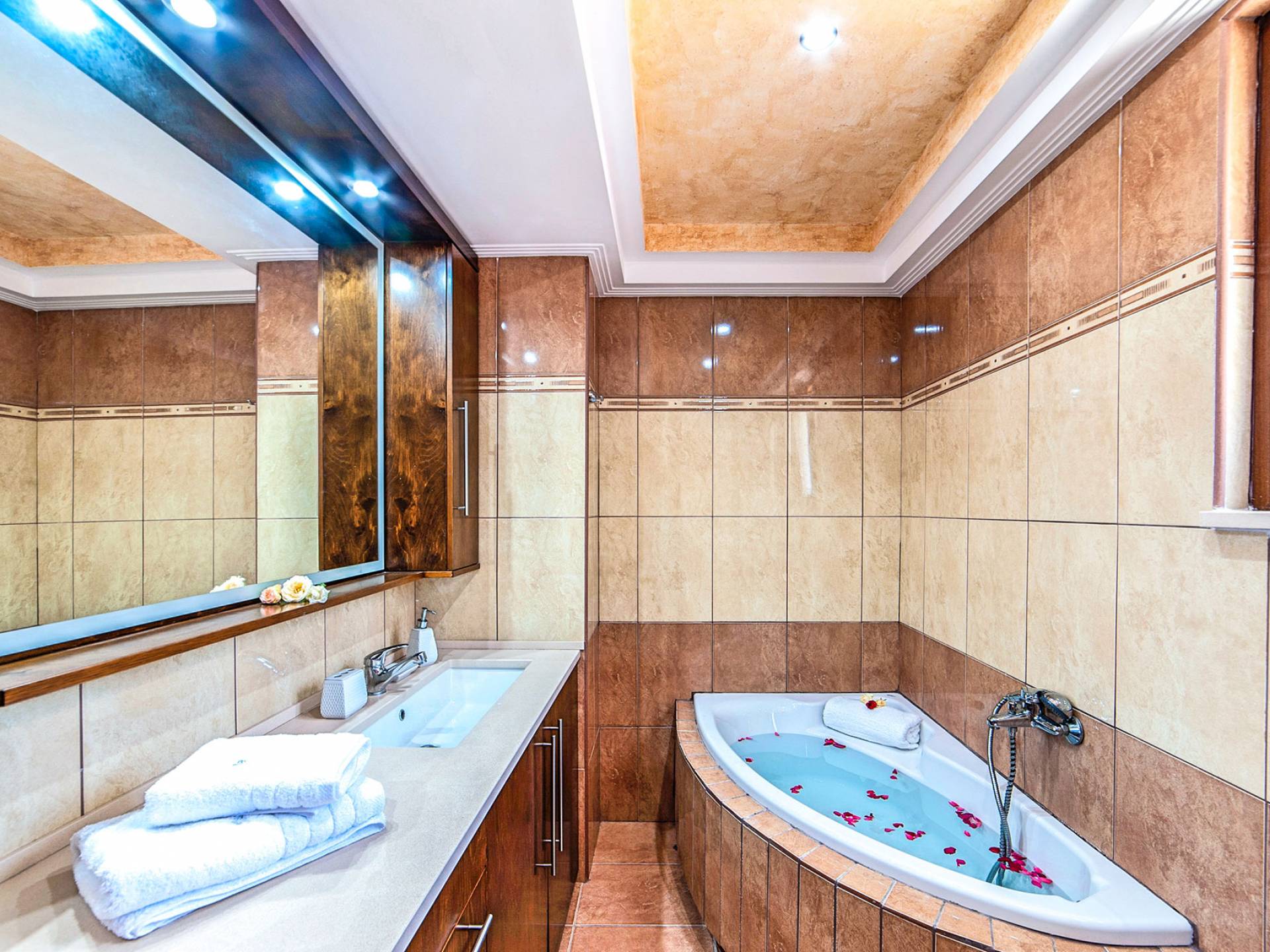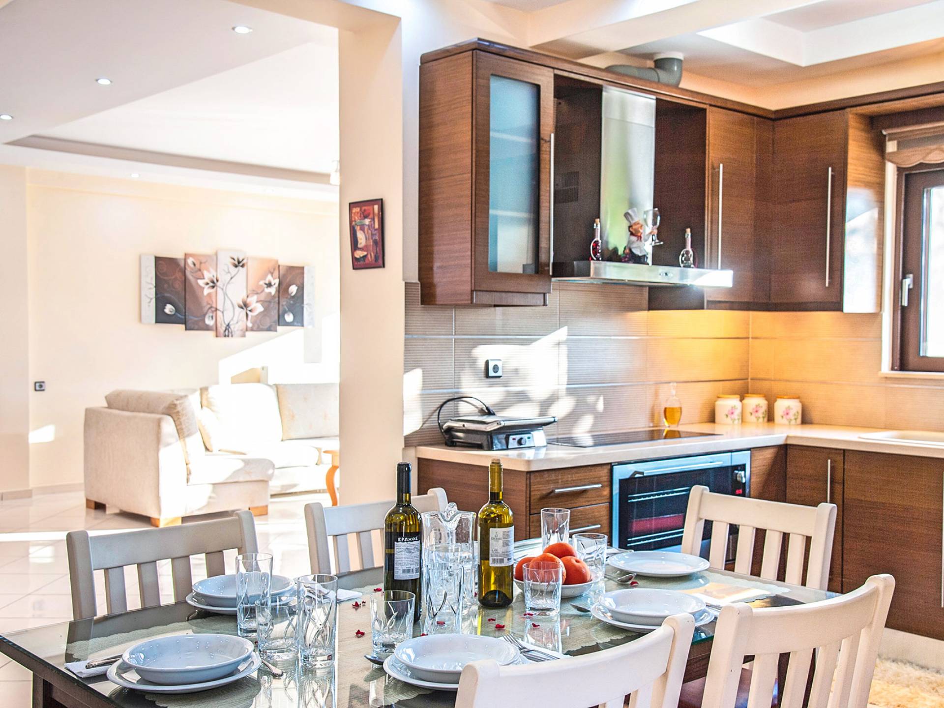 Также есть встроенный мангал и кухонное оборудование (раковина). Это идеальное место, чтобы насладиться коктейлем, лежа на шезлонгах у бассейна, любуясь окрестными горами и морем. Имеется бесплатная парковка. Когда вы будете готовы к общению, вы через несколько минут откроете для себя красивый протяженный пляж и курортную деревню Георгиуполис, предлагающую всевозможные удобства и бесчисленное множество ресторанов. Отель полностью оборудован, так что вы можете наслаждаться отдыхом, будучи уверенным, что вы найдете все, что вам может понадобиться во время вашего пребывания.