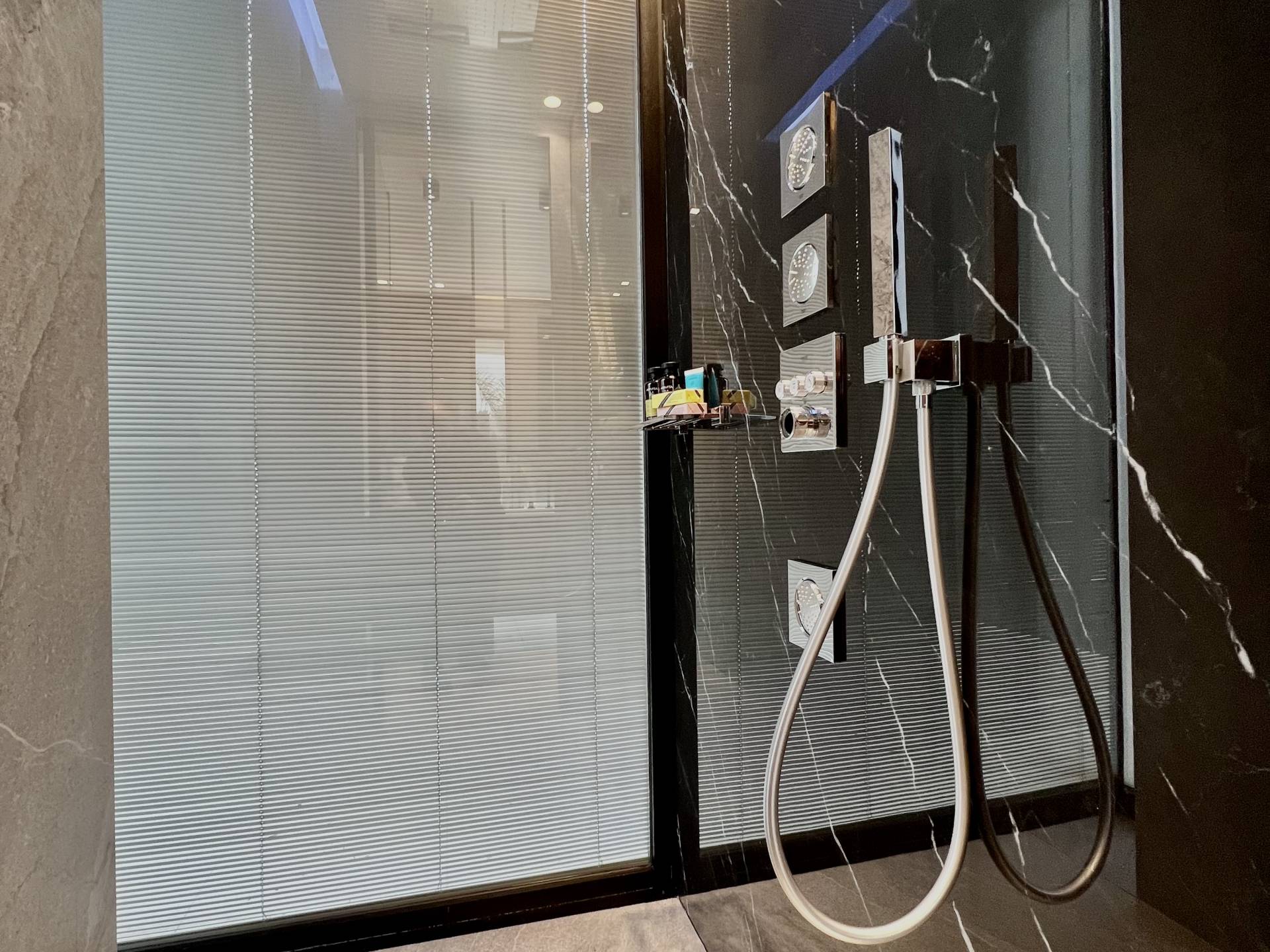 - Master Suite with queen bed, walk-in closet, bioethanol fireplace, and panoramic bathtub views. Ensuite bathroom with Grohe Hydromassage Shower System.