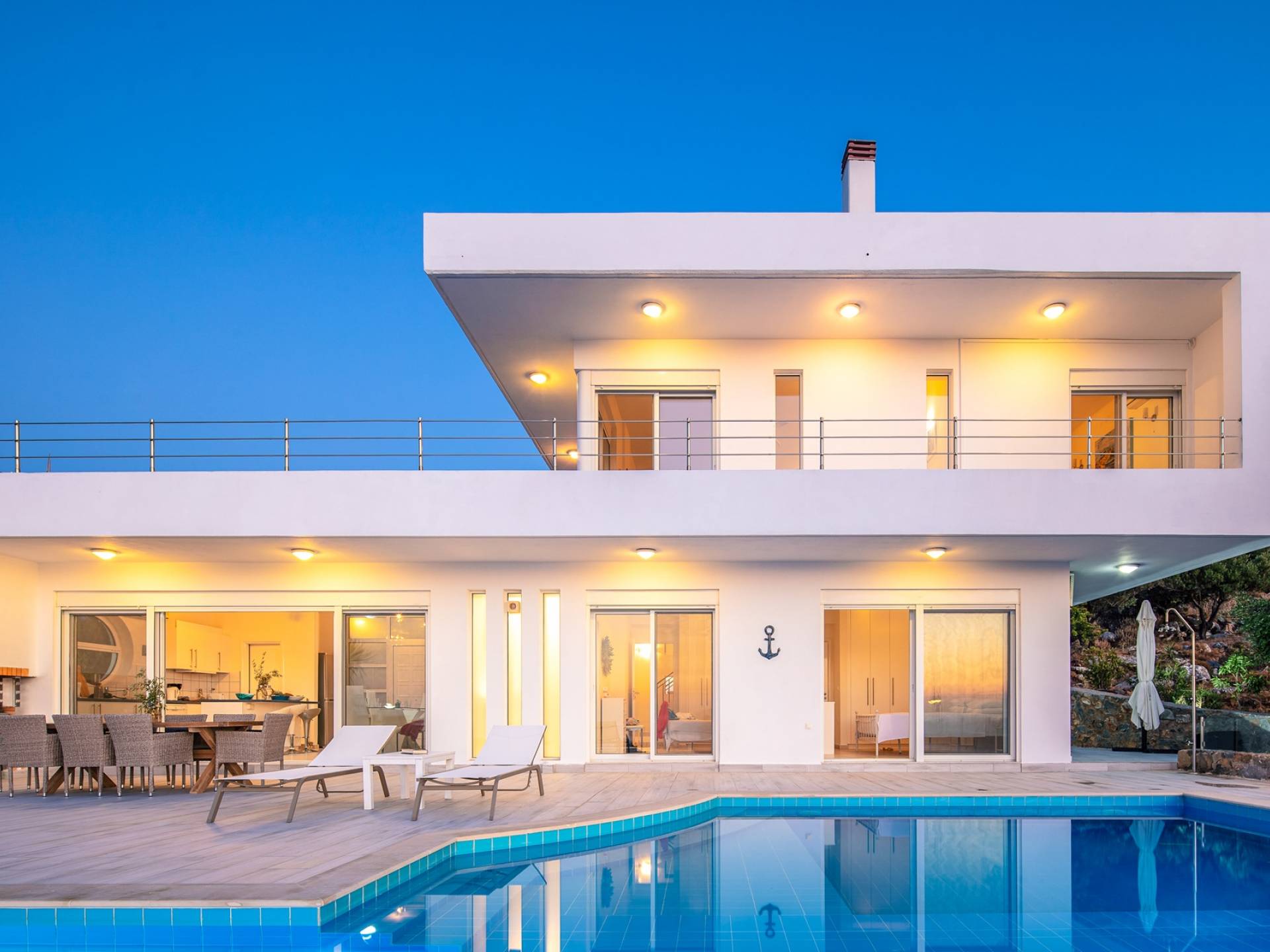 Агапе означает любовь, и вы влюбитесь в это свойство. Вилла оформлена в летнем стиле, и все комнаты имеют вид на бассейн и море. Собственность составляет 6000 квадратных метров со 100 оливковыми деревьями, она тихая и частная, без соседей. Площадь бассейна составляет 53 квадратных метра.