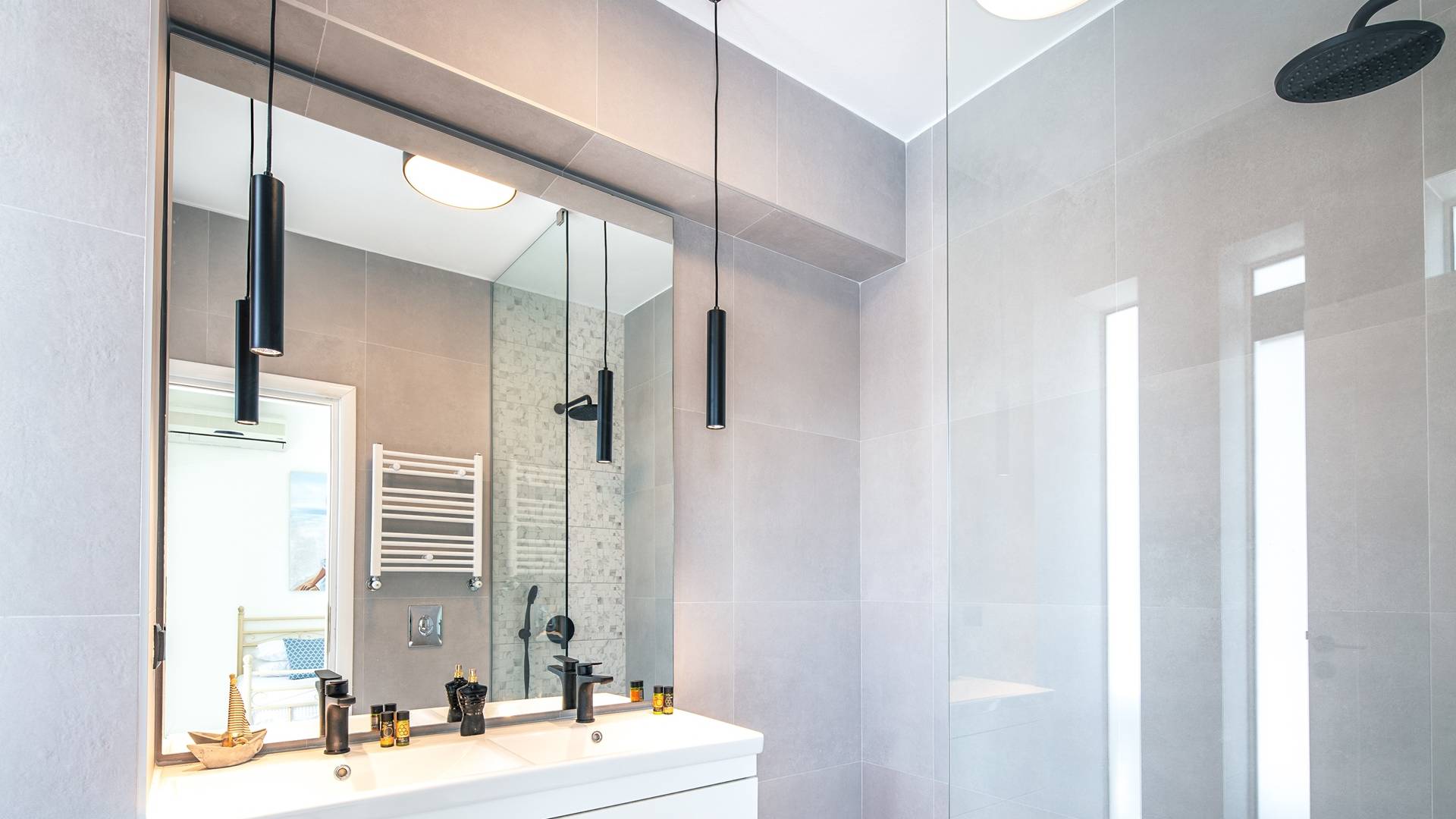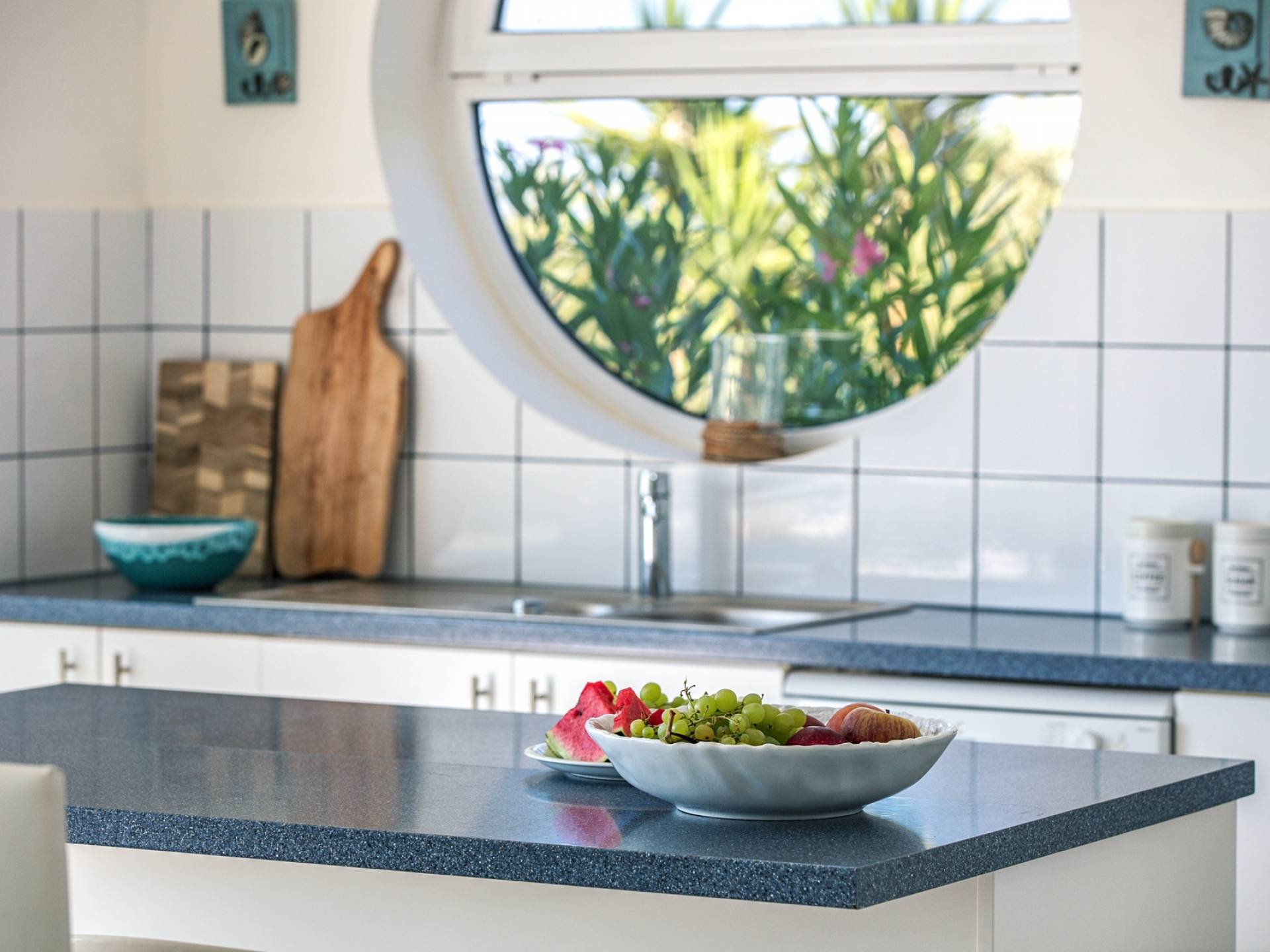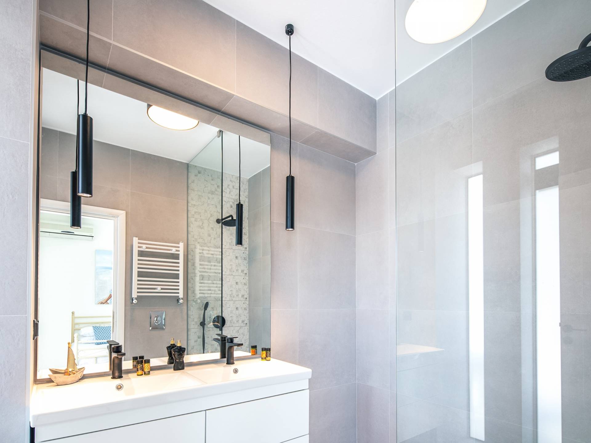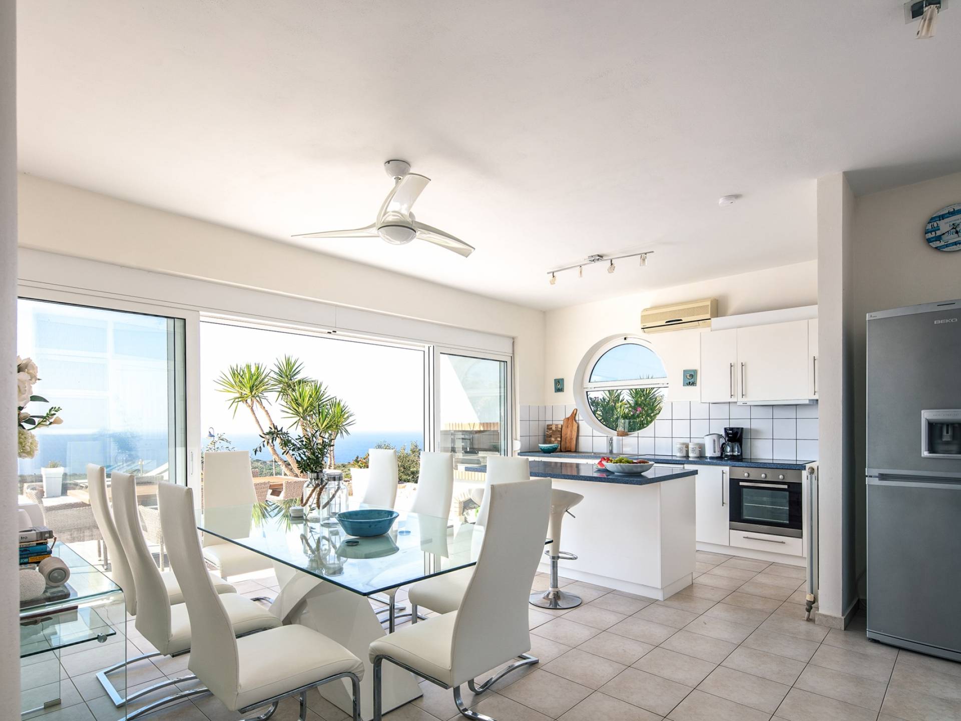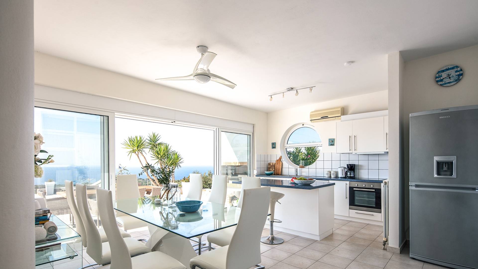 На первом этаже находится кухня открытой планировки с островом и обеденным столом на шесть человек. На этом же этаже расположены две спальни с двуспальными кроватями, две ванные комнаты и прачечная. Все помещения первого этажа имеют выход и вид на бассейн. На первом этаже есть еще одна спальня с ванной комнатой и гостиная. Гостиная имеет прекрасный вид на море и выход на террасу. На террасе можно полюбоваться закатом с бокалом вина. Купание и игра в большом бассейне и отдых на террасе, наслаждаясь видом - это то, что заставит вас не хотеть уходить оттуда.