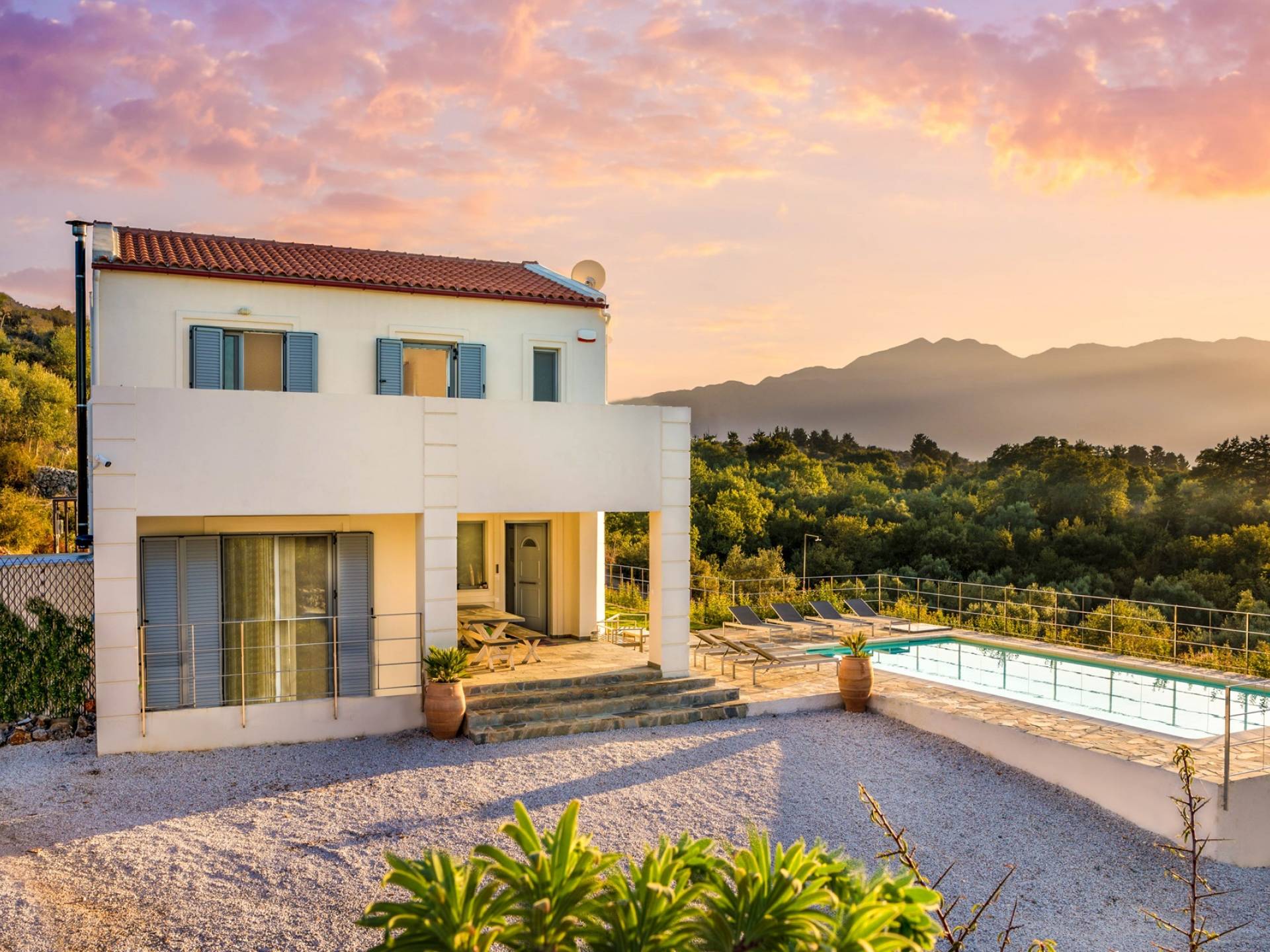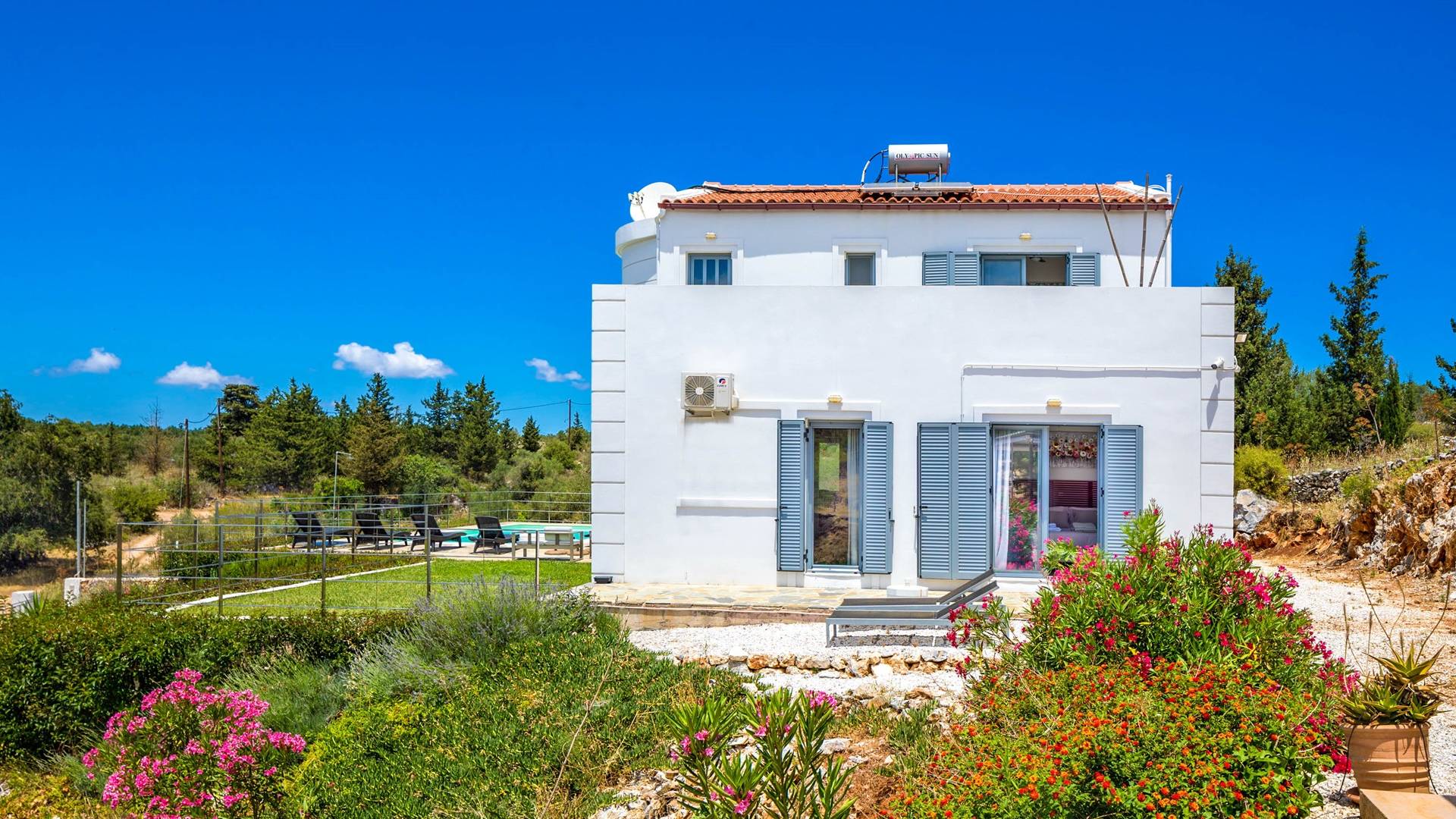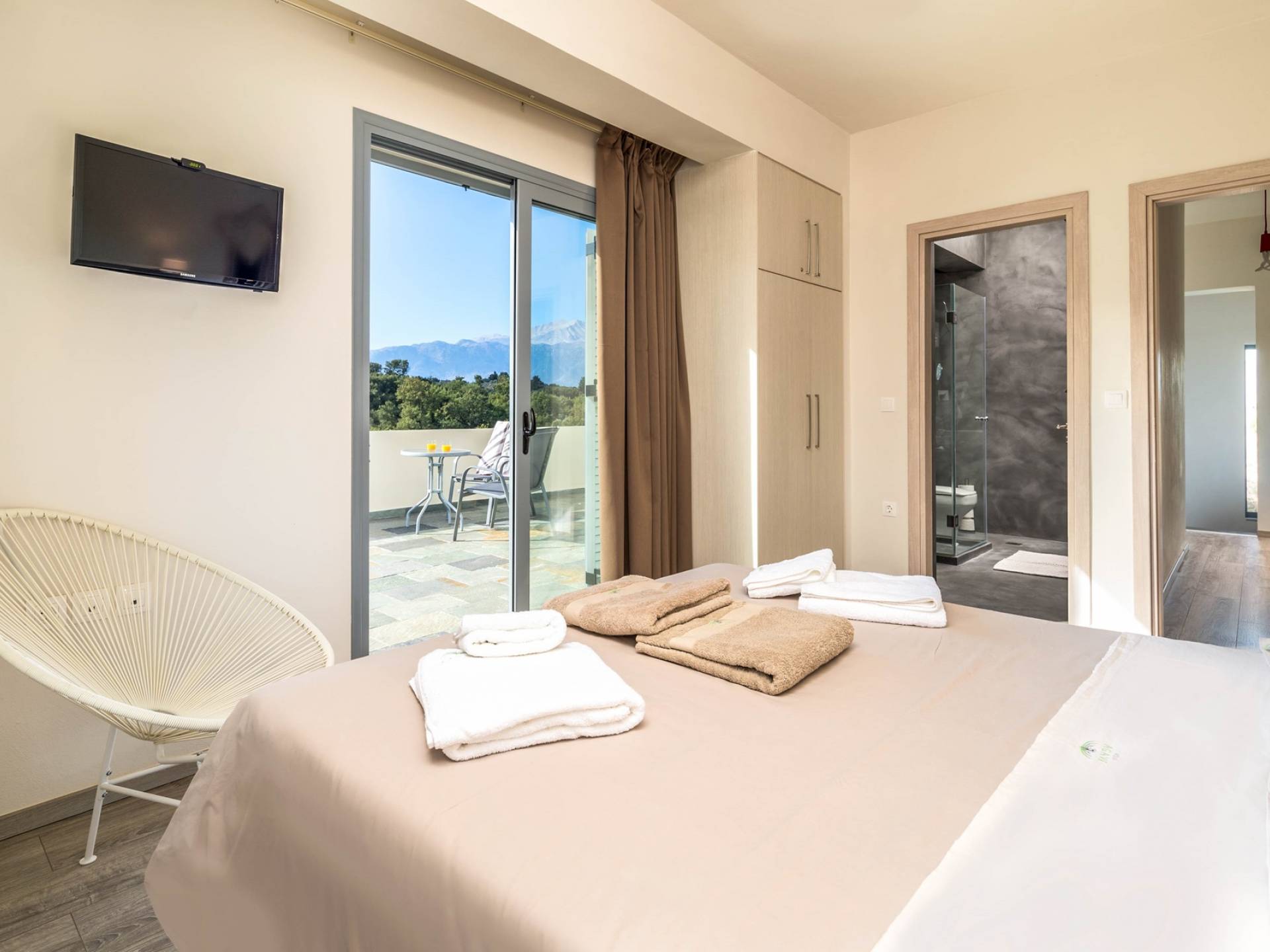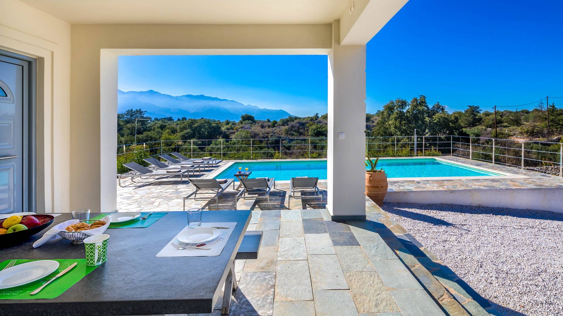 Внизу есть две спальни Superior со встроенными шкафами, кондиционером, потолочным вентилятором и выходом прямо на частную панорамную площадку с зонтиком и шезлонгами. Снаружи есть новое поле для игры в петанк или боулинг, панорамная веранда с джакузи и диван для отдыха под солнцем. Недавно построенная вилла в Вамосе, отвечающая самым высоким требованиям, представляет собой современный отель, предлагающий множество превосходных удобств, включая расслабляющее джакузи, потрясающий частный бассейн и просторную солнечную террасу, с которой можно насладиться прекрасным видом. Вилла спроектирована так, чтобы сделать ваш отдых по-настоящему комфортным, чтобы вы почувствовали тепло подлинного гостеприимства Крита.