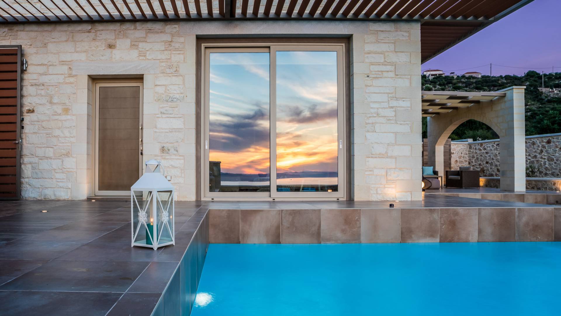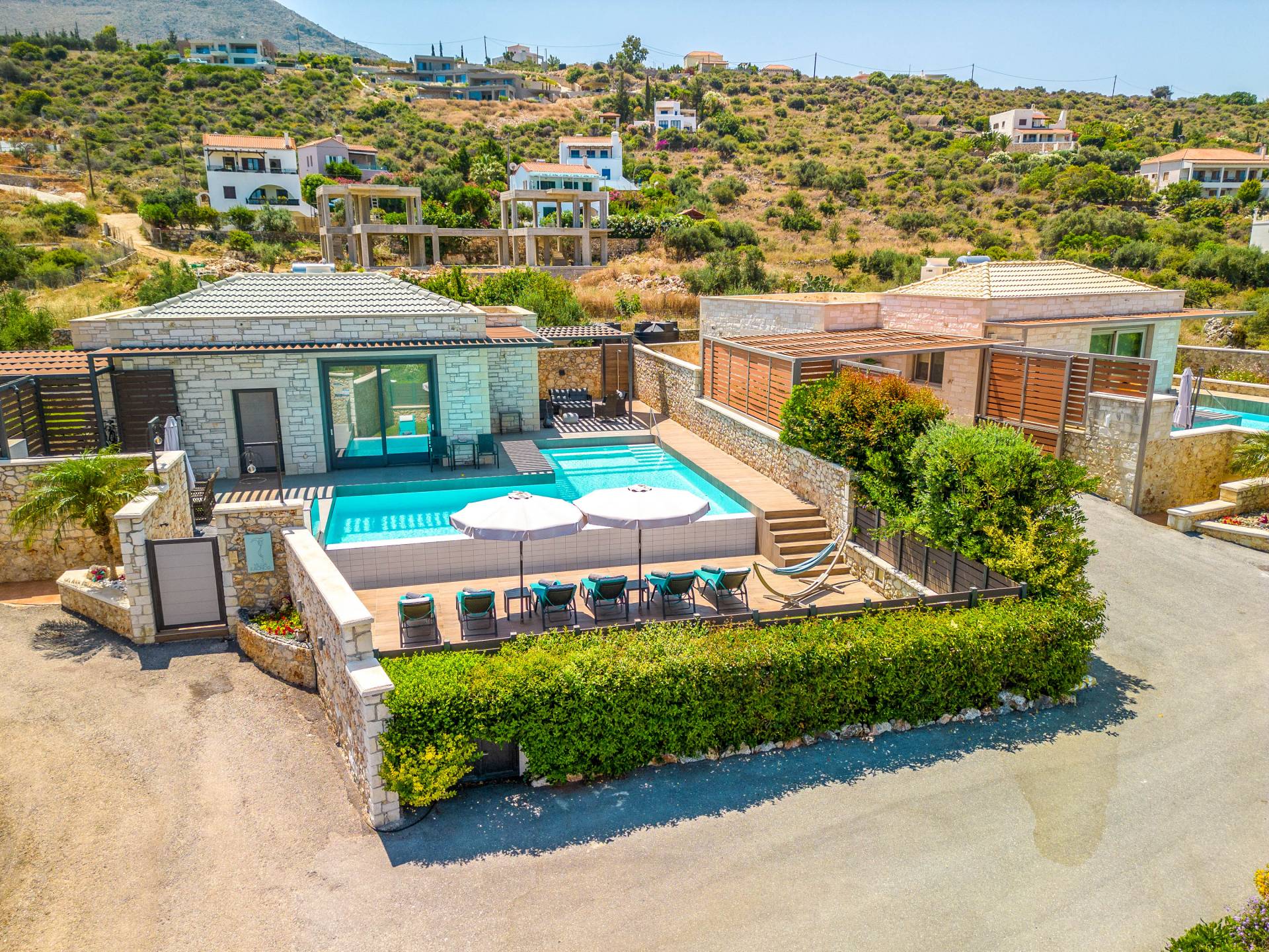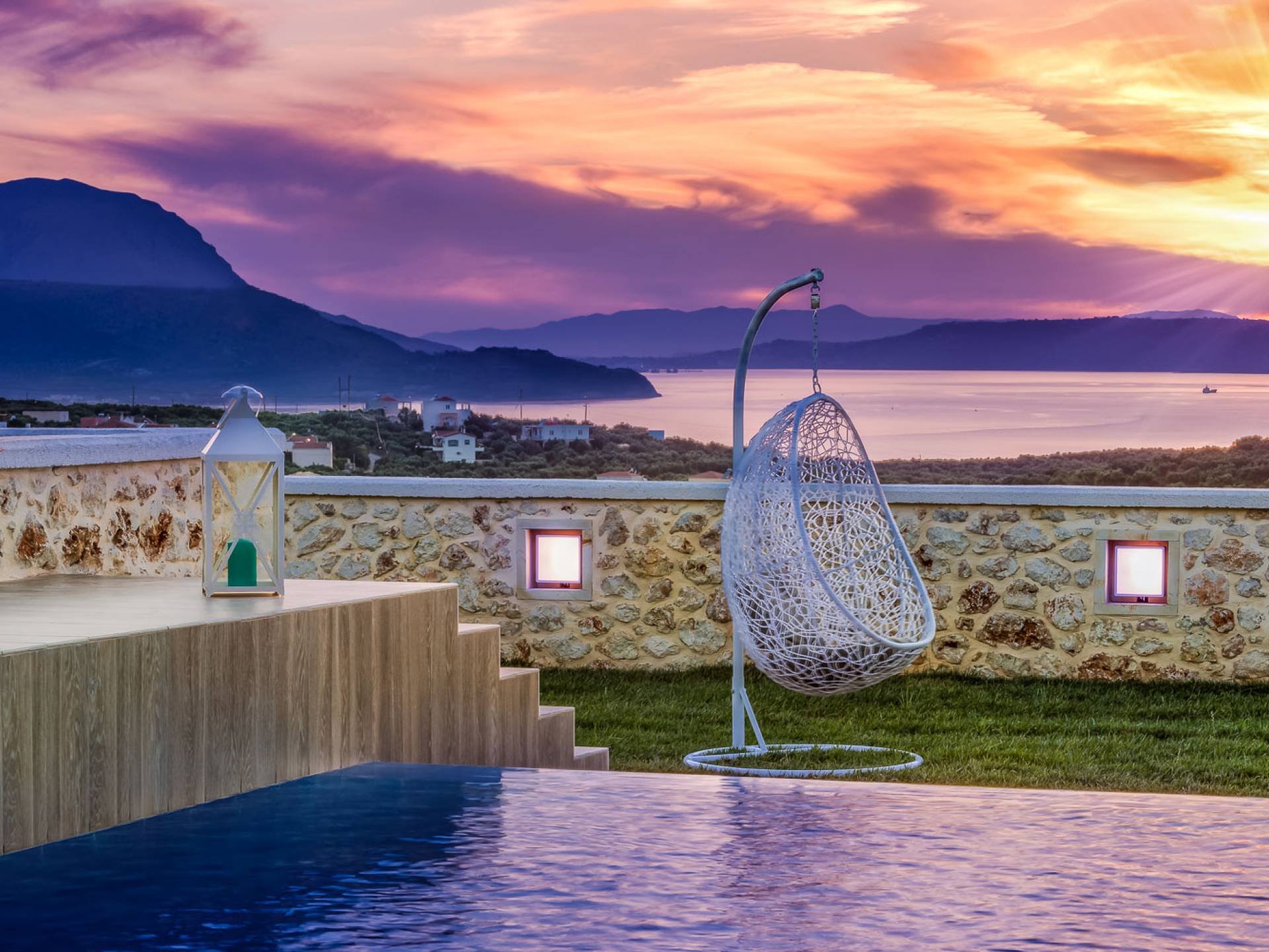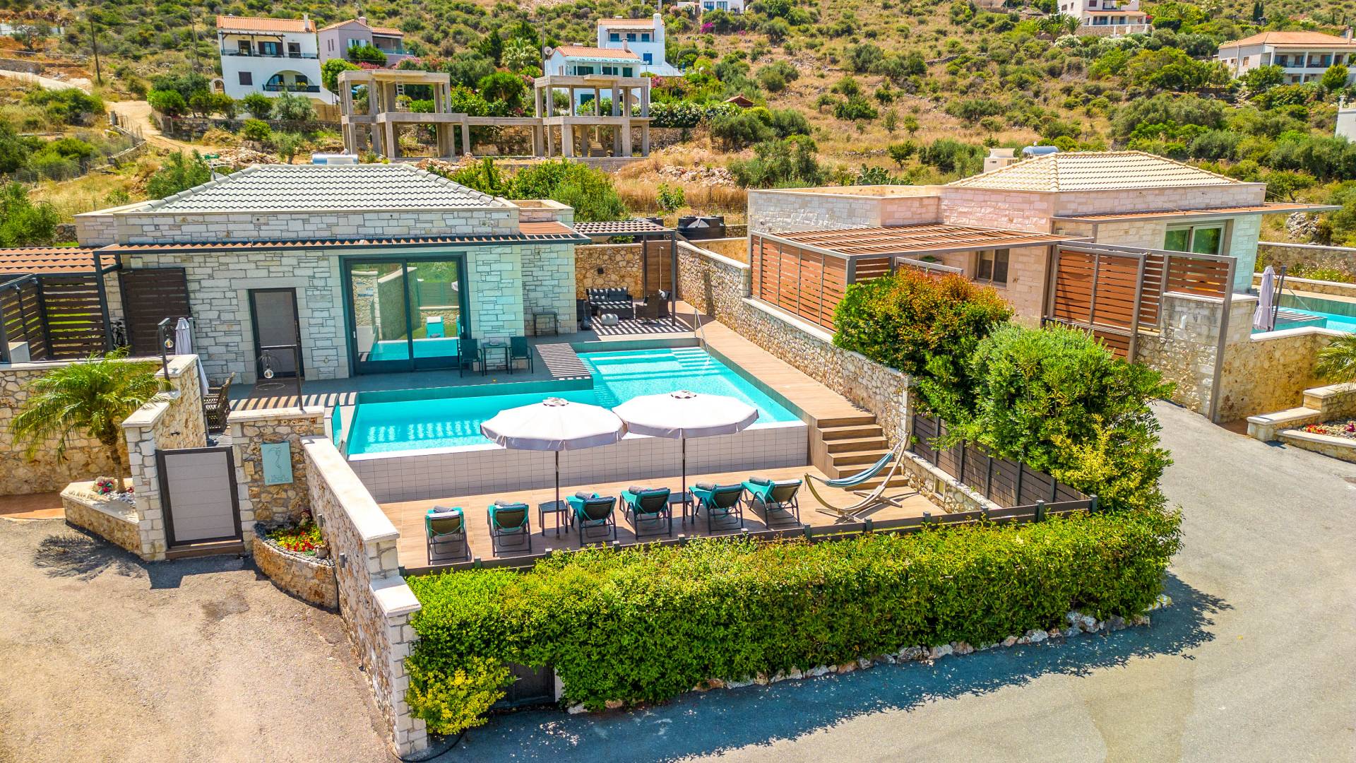 На расстоянии одного метра вы увидите бассейн площадью 60 кв. м, где вы можете насладиться напитком в зоне отдыха с гидромассажем. Здесь также есть барбекю и обеденный стол, а также зона отдыха, где вы можете послушать музыку или даже почитать книгу в сопровождении различных природных звуков критской сельской местности. Вечером вы можете насладиться великолепным романтическим закатом, который раскрашивает прекраснейшими красками чистое синее средиземноморское небо, или вы можете пройти примерно 20 минут до ближайших таверн и отведать блюда критской кухни. По запросу на вилле можно заняться такими видами активного отдыха, как подводное плавание с аквалангом, прогулки на лодке или даже расслабляющий массаж в доме.
