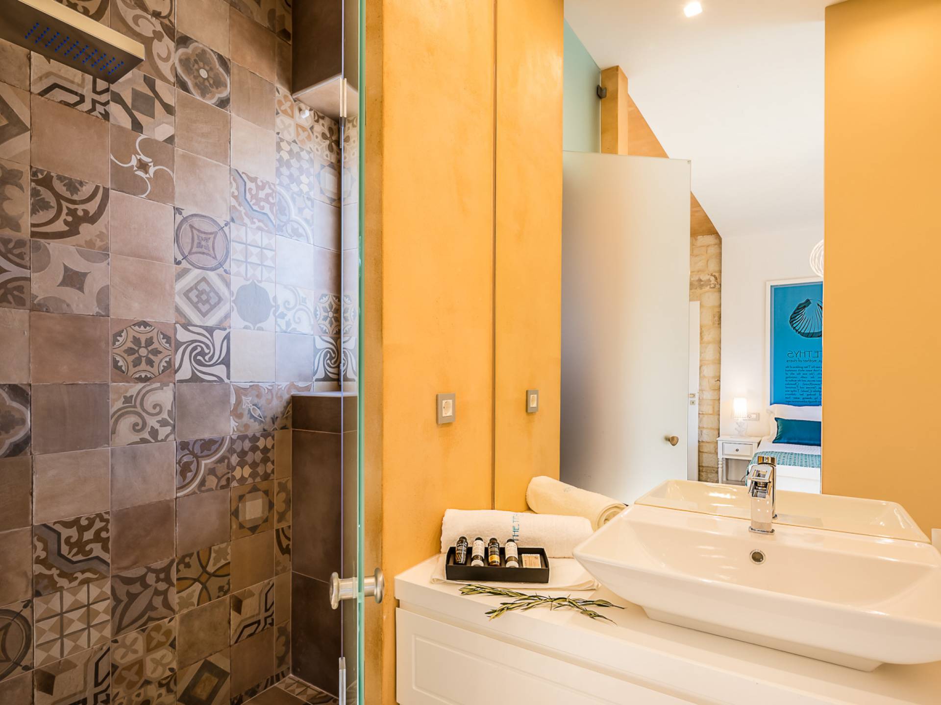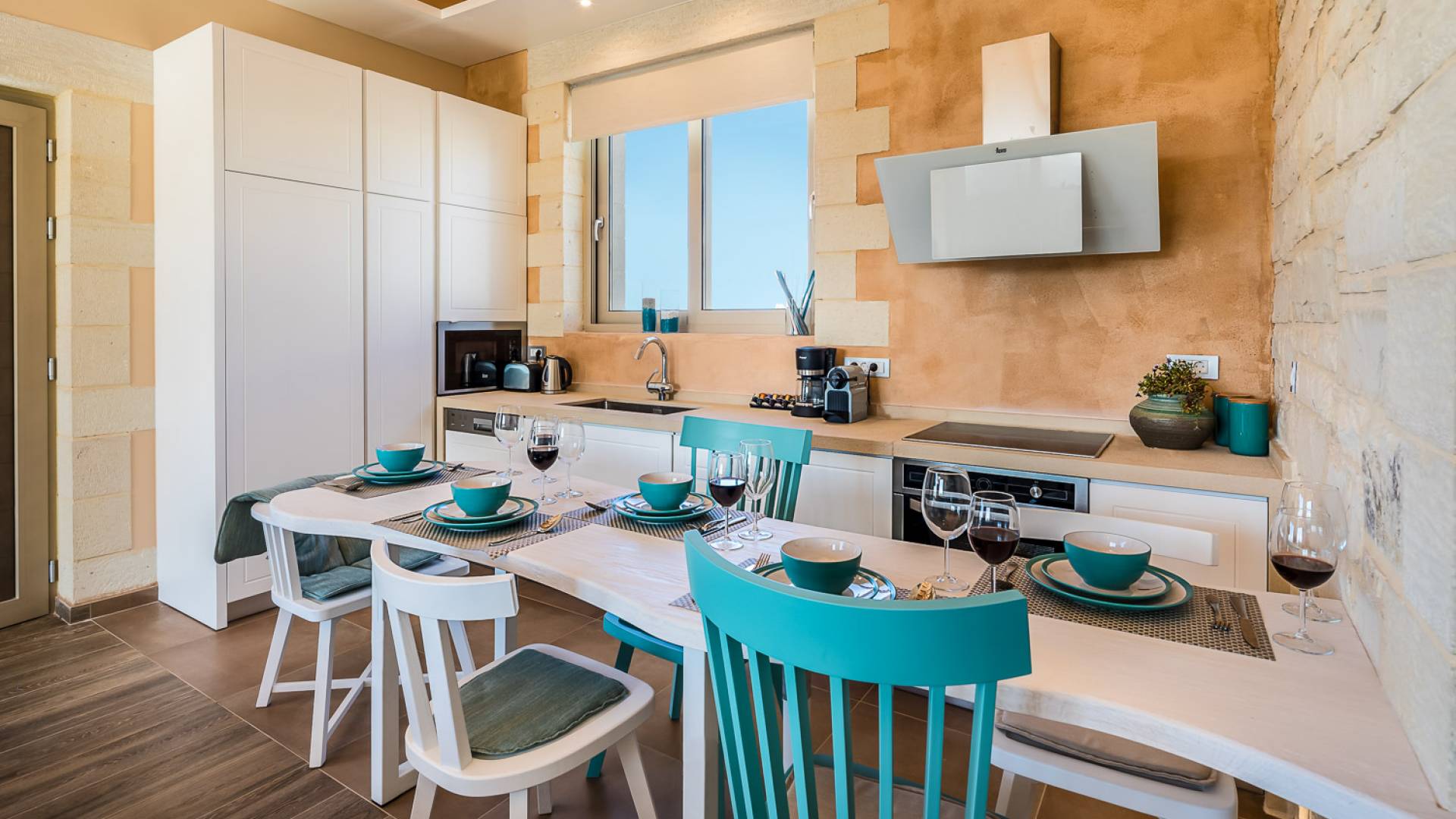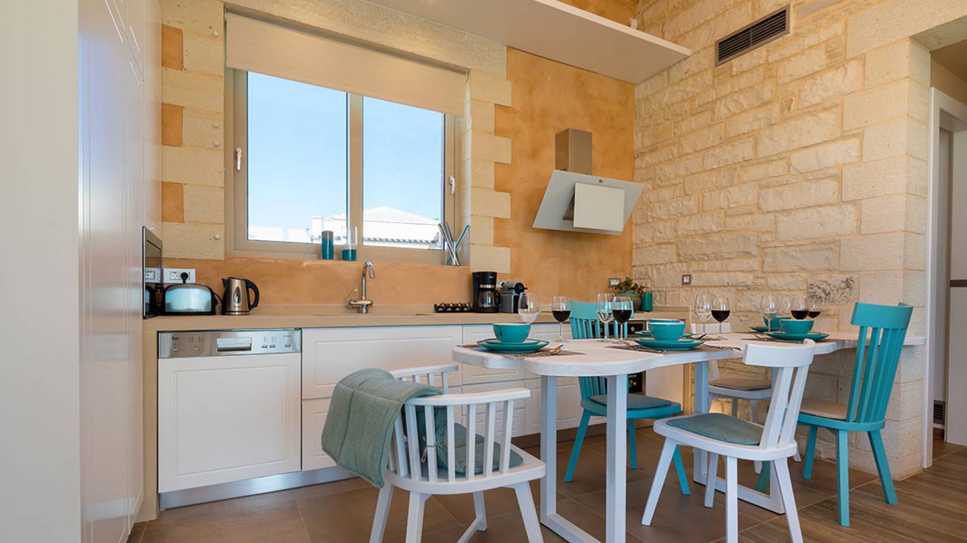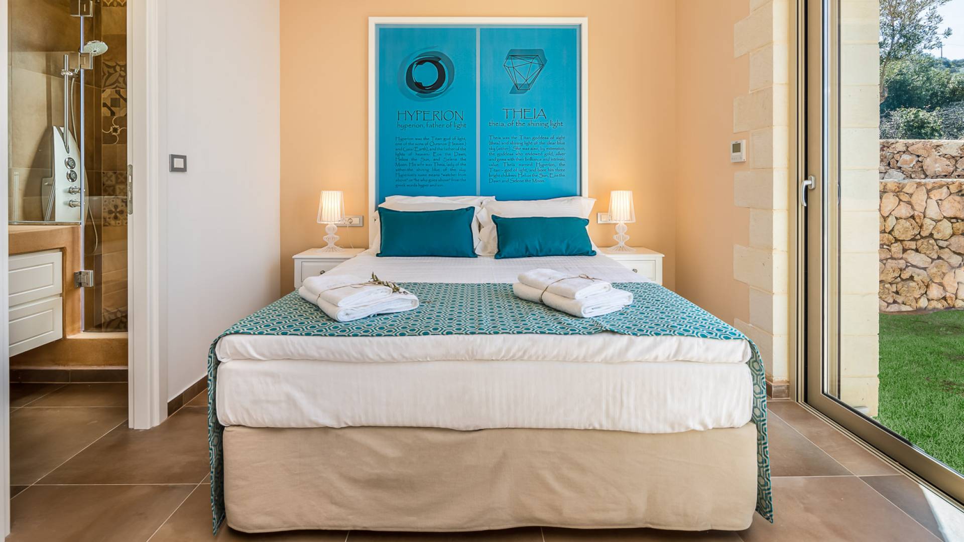 Вилла Rhea Crete состоит из двух спален с двуспальными кроватями с собственными душевыми и туалетами, а также спальни с двумя односпальными кроватями. Есть общий санузел с двухместной ванной типа джакузи и душевой кабиной. Кухня полностью оборудована и представляет собой зону открытой планировки с зоной отдыха. Есть две большие оконные двери высотой 3,5 м, поэтому вы не упустите ничего из вида, даже находясь внутри.
