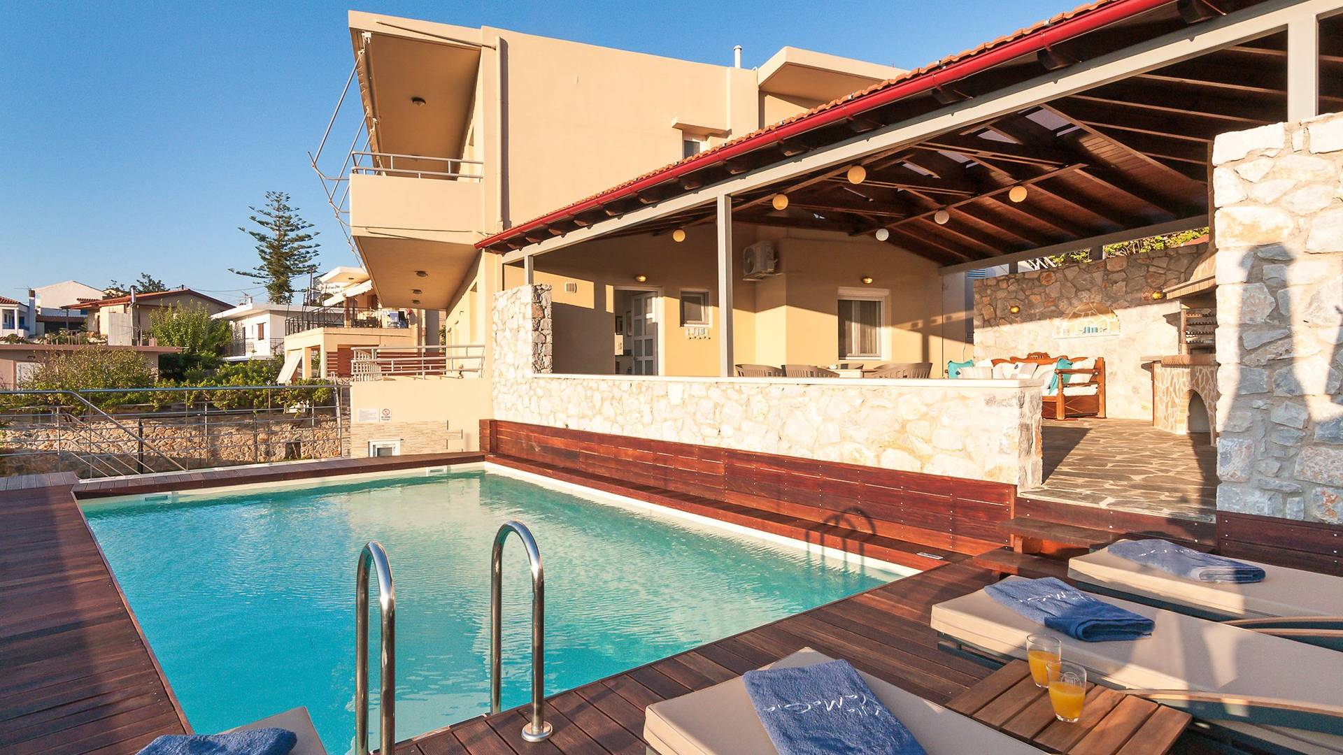Вилла Вамагия расположена на холме Плака, прямо над заливом Альмирида, откуда открывается прекрасный вид на залив Суда и Белые горы. Вилла Вамагия представляет собой довольно современное здание в тихом месте. Он состоит из двух независимых и отдельных домов (дом Васо и дом Марии), которые имеют общую внешнюю территорию. В каждом доме вы найдете две спальни, гостиную, столовую и кухню, а также ванную комнату. В доме Васо есть очень хороший кабинет с великолепным видом.