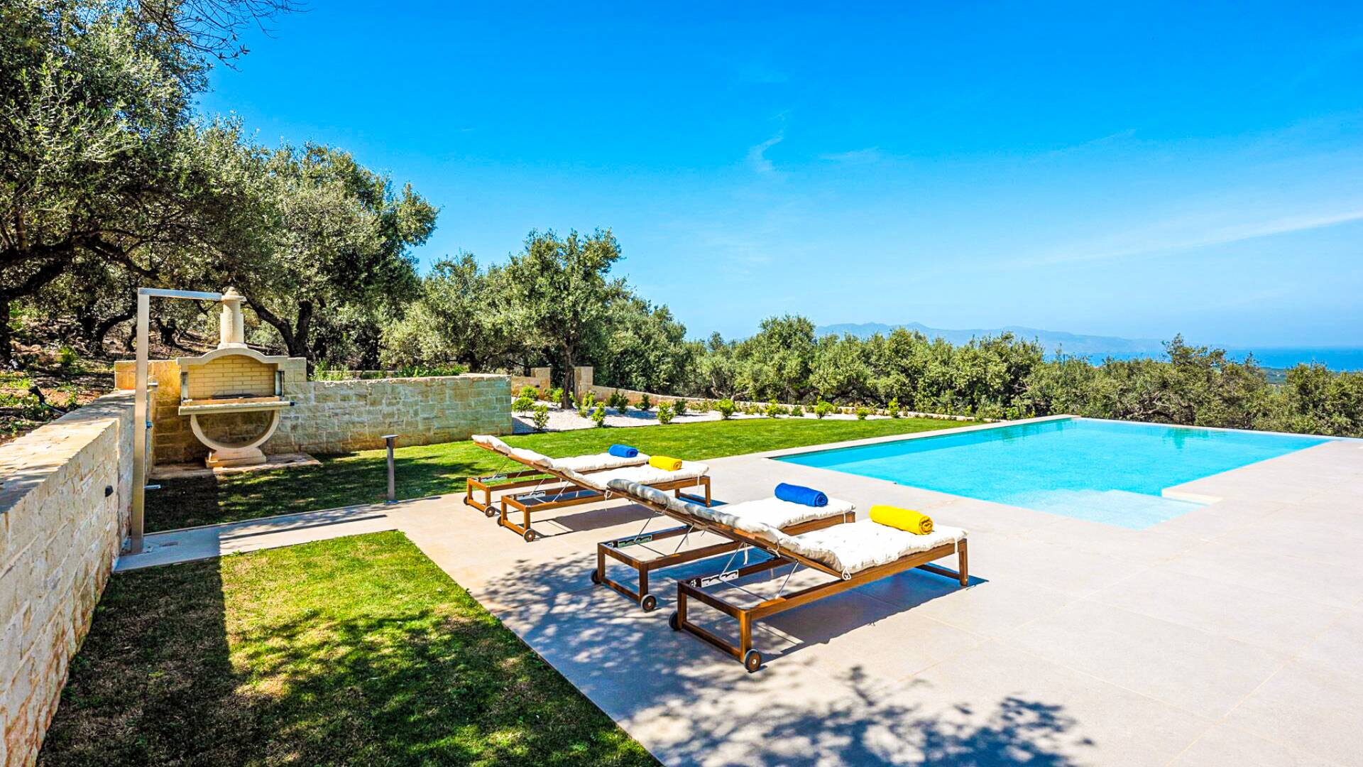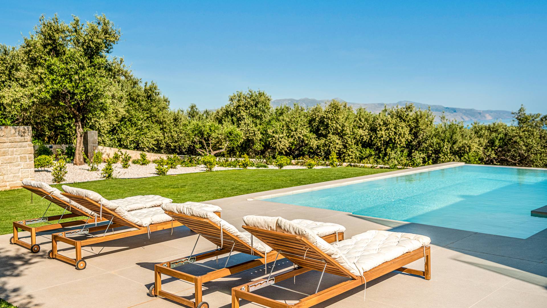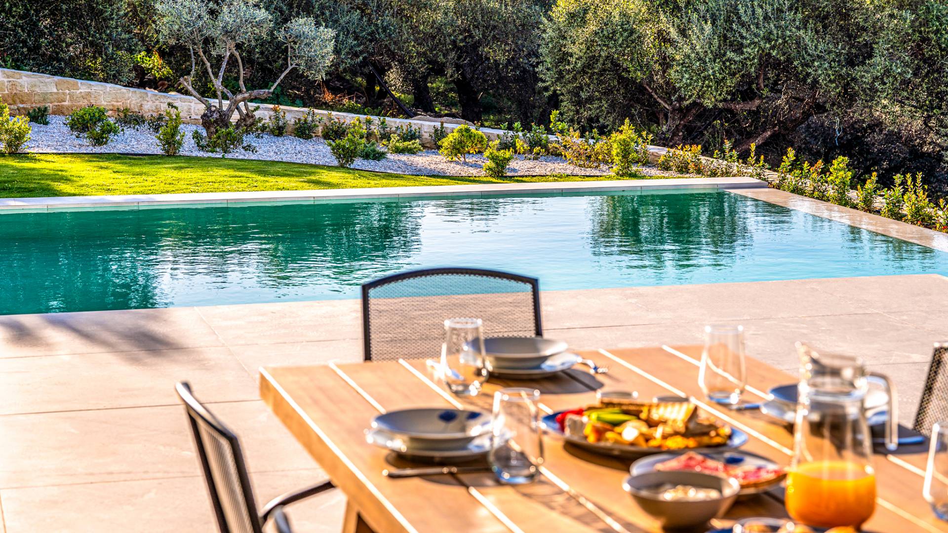 Bask in the Mediterranean sun from your private swimming pool. Designed for entertainment and relaxation, the outdoor area features:
