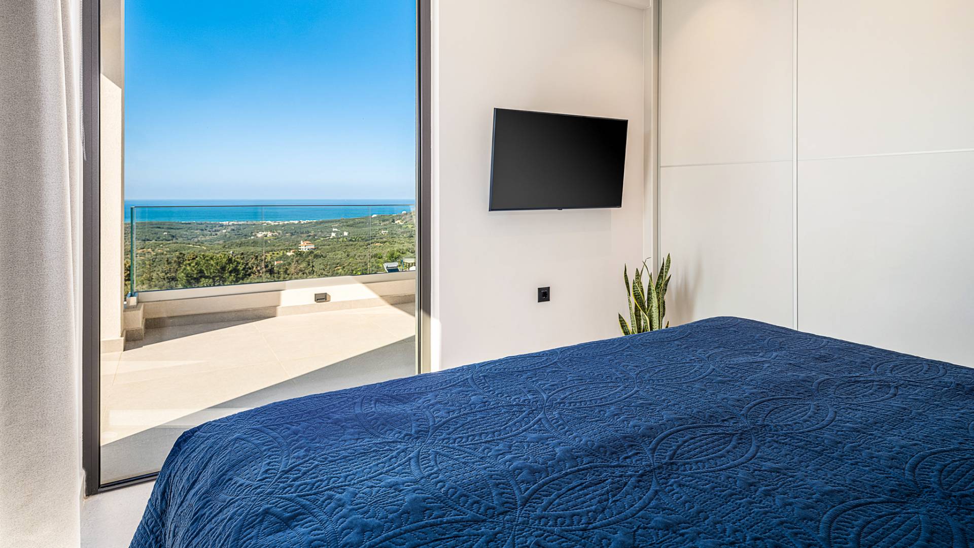 - Bedroom 3 with two single beds, ensuite bathroom and balcony with panoramic views