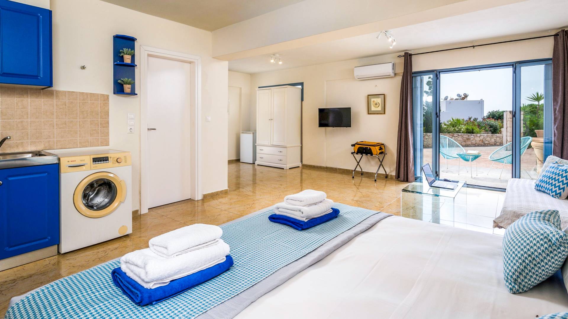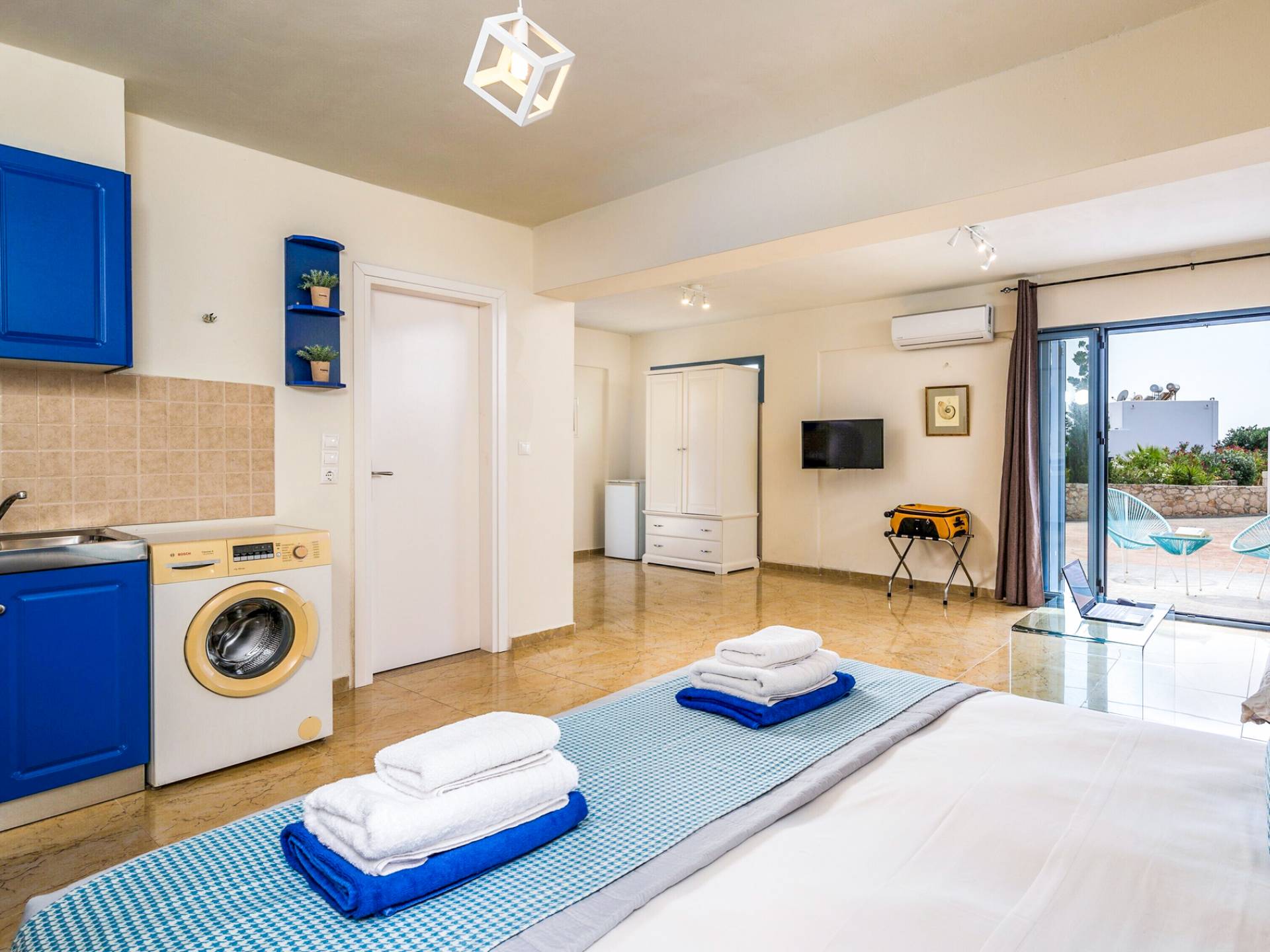 - Mini-markets and tavernas within 2.5 km (in Stavros & Chorafakia villages).