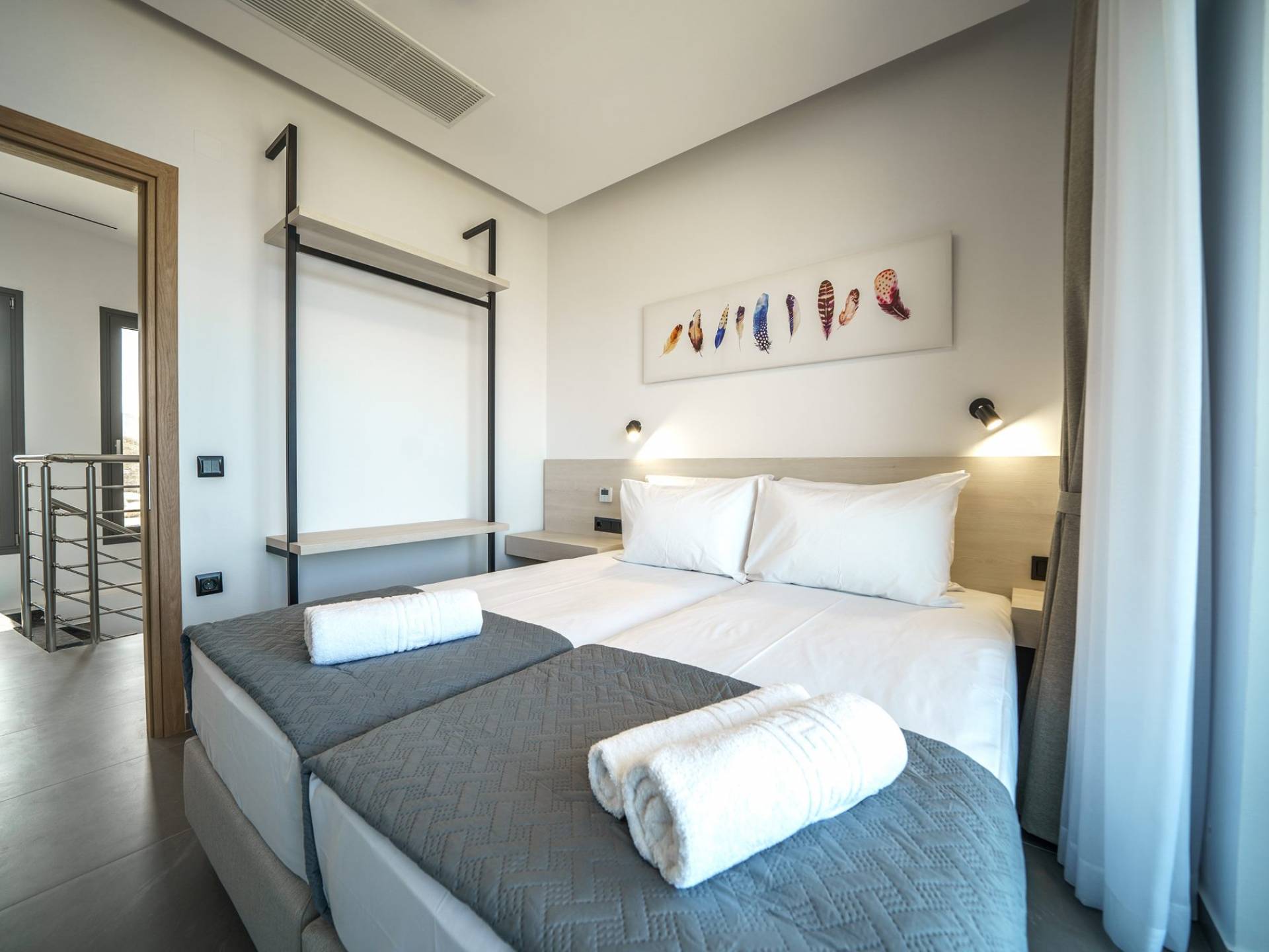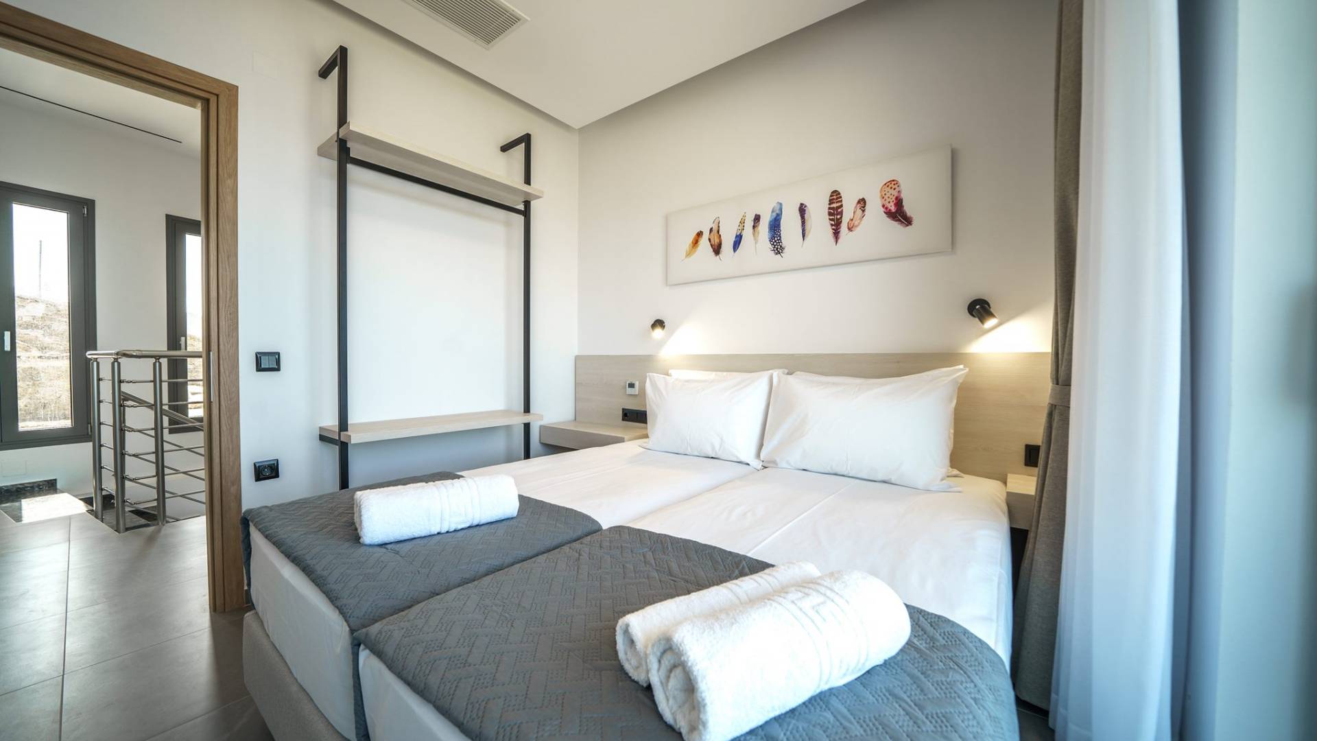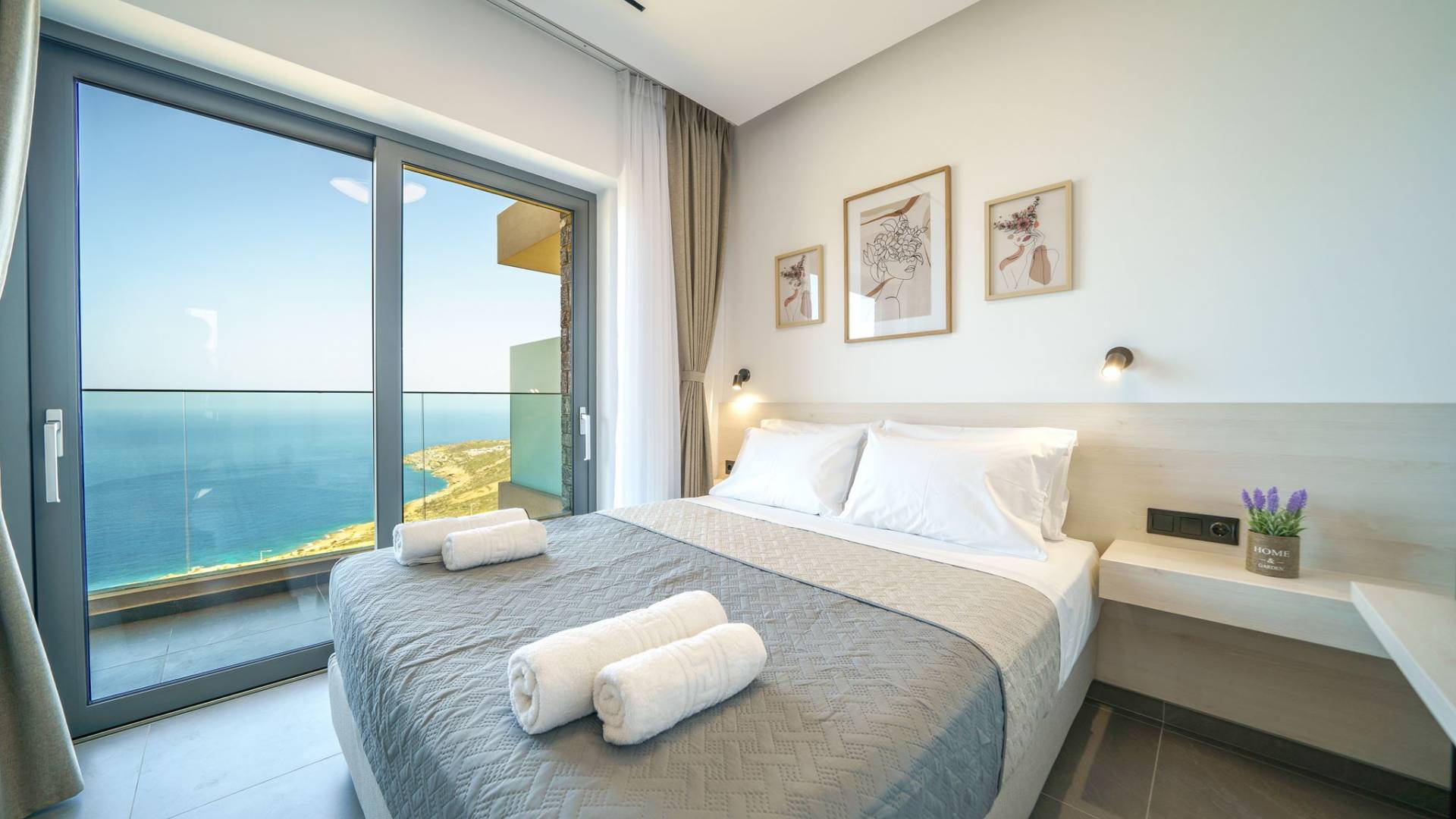 Когда придет время ложиться спать, вас ждут 3 дизайнерские спальни. В каждой спальне есть кровать размером 1,60 х 2,00, дополненная 32-дюймовым телевизором, кондиционером и шкафом для вашего удобства. из всех спален есть выход на балкон и веранду с уютной зоной отдыха, где каждое утро вы можете просыпаться с завораживающим видом на море.
