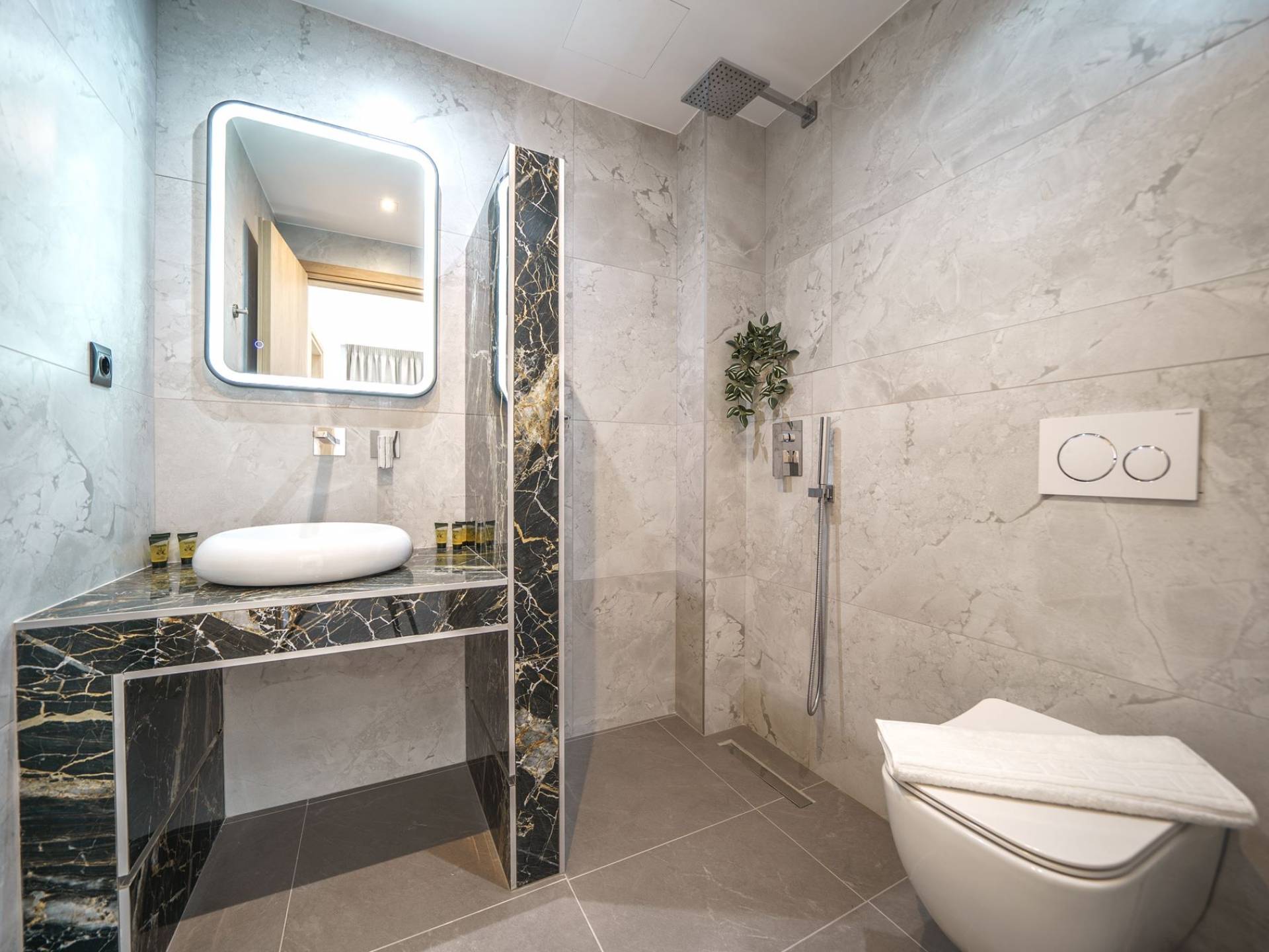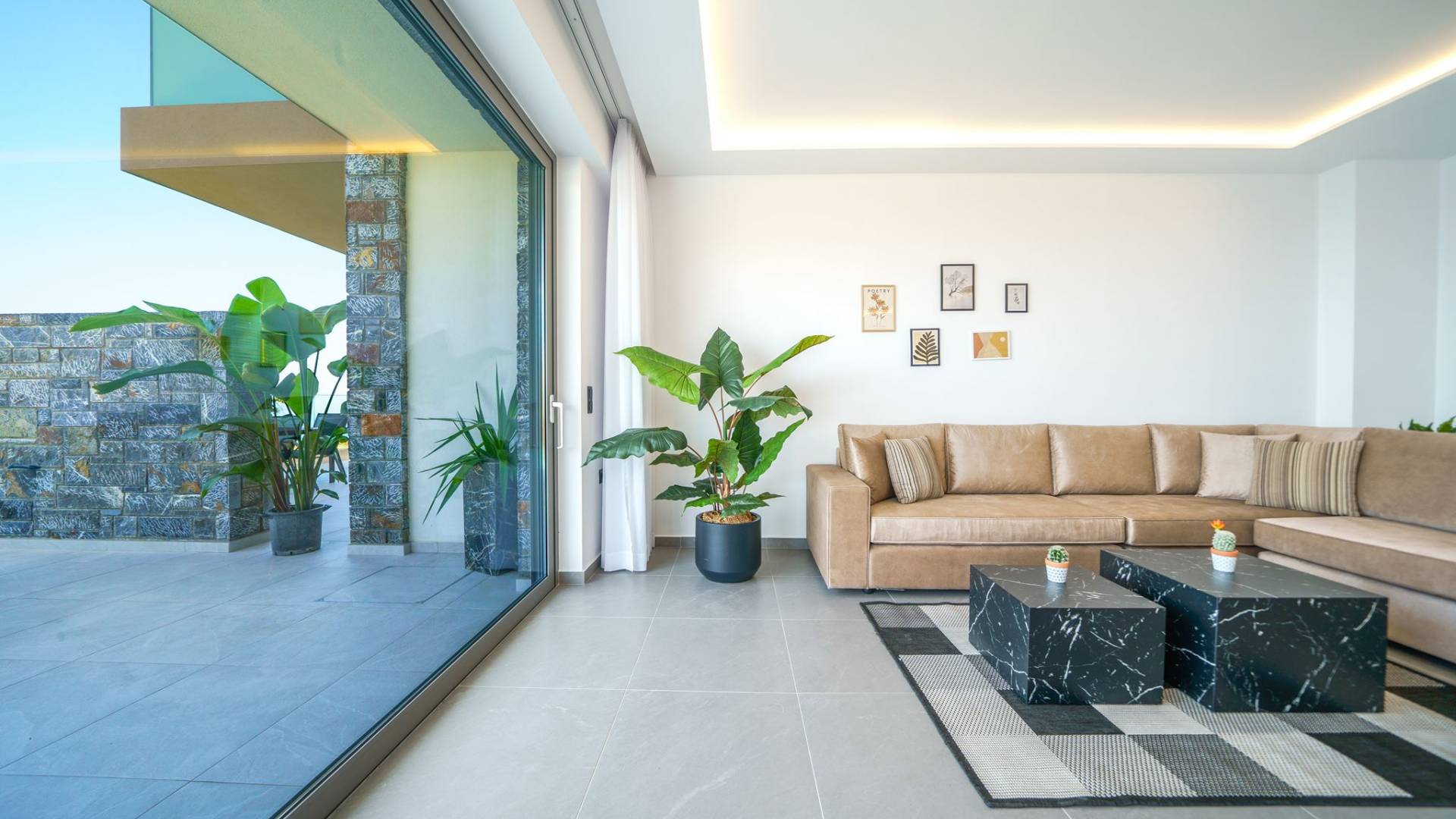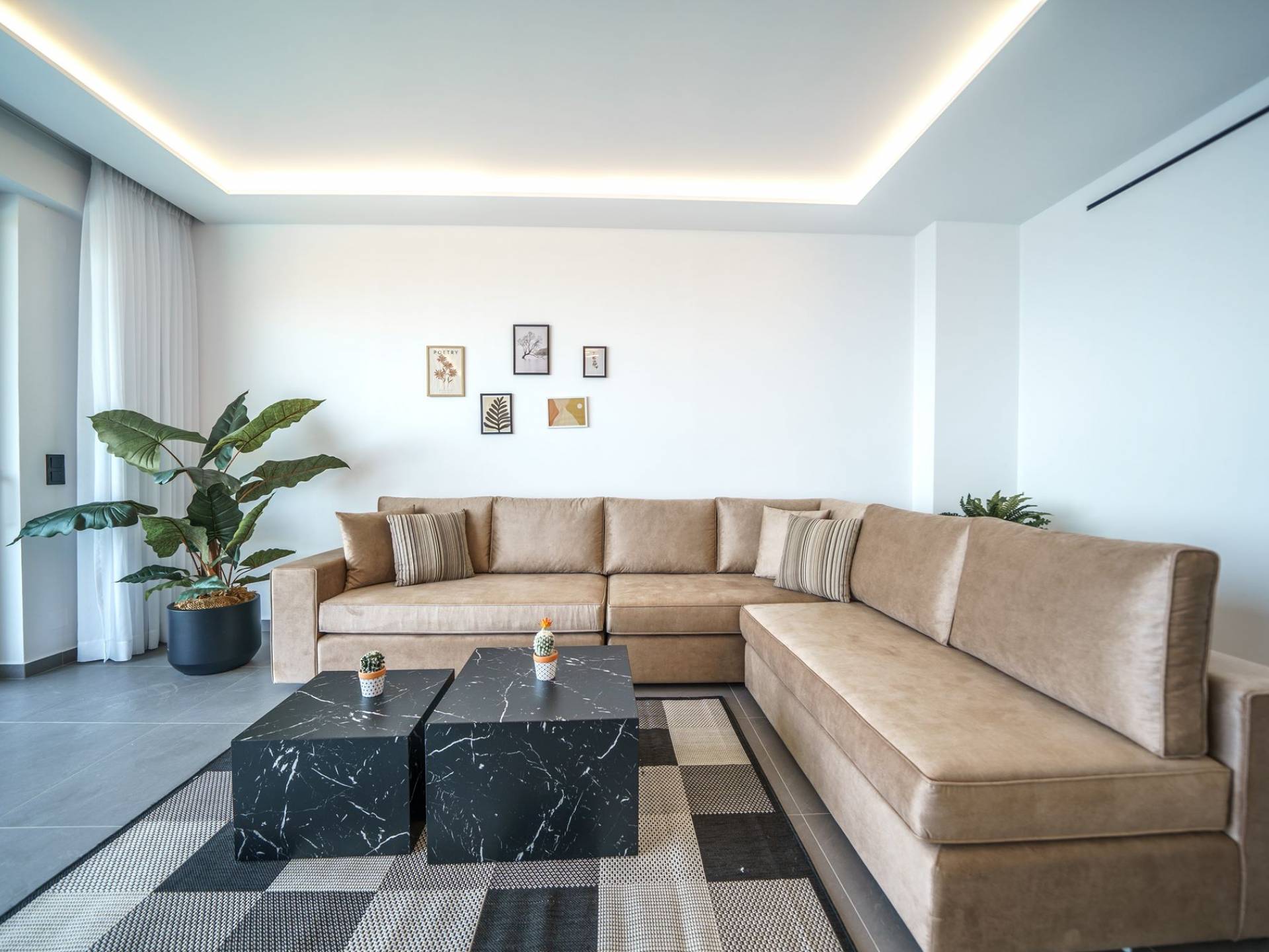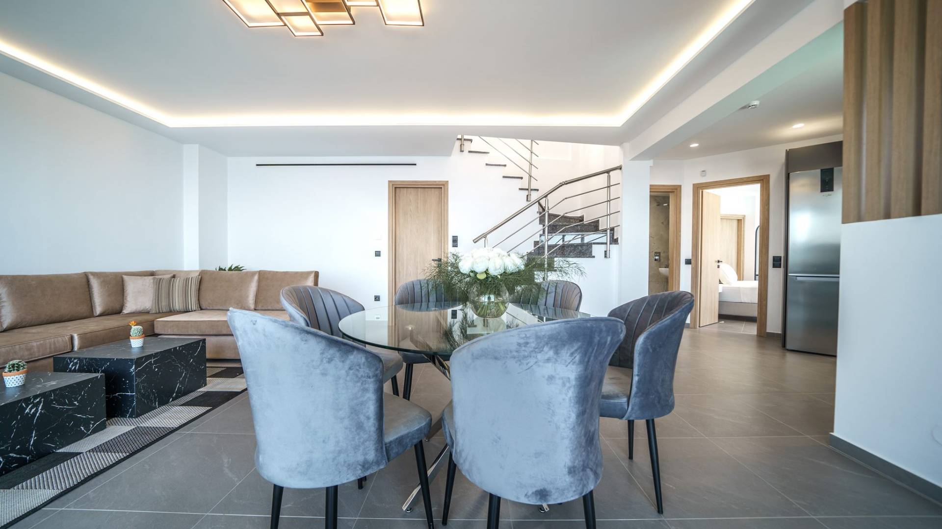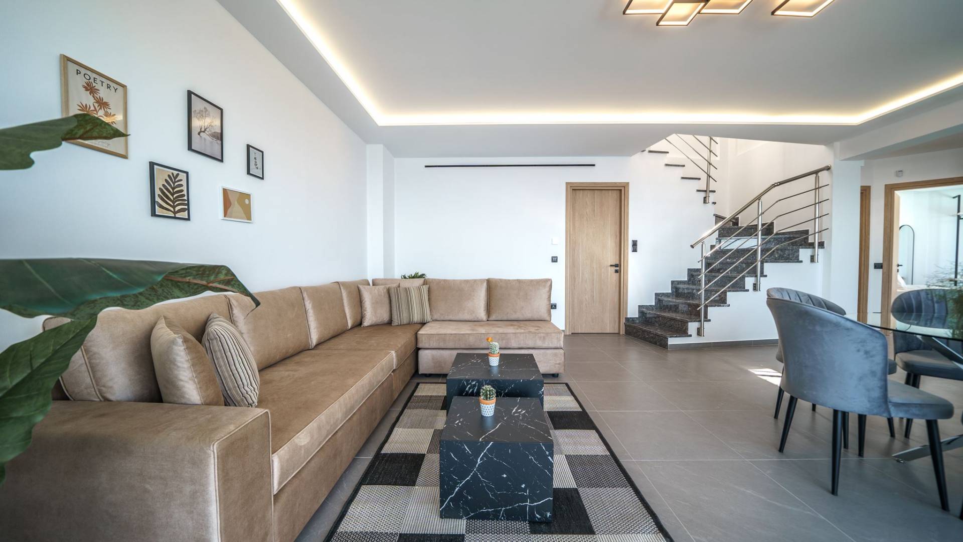 Гостиная приветствует вас стильным гостиным уголком с 50-дюймовым смарт-телевизором, который идеально подходит для расслабляющих вечеров, пока вы путешествуете дальше. Вы будете очарованы центром гостиной: просторным веранда с захватывающим видом на море, приглашающая вас насладиться красотой природы.