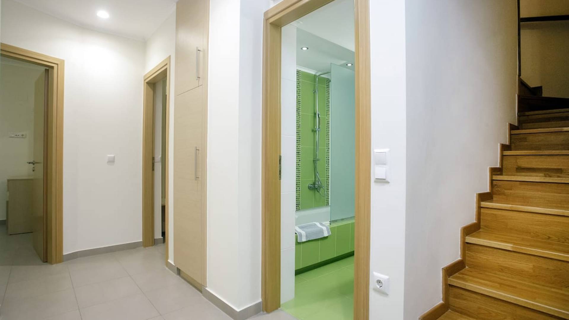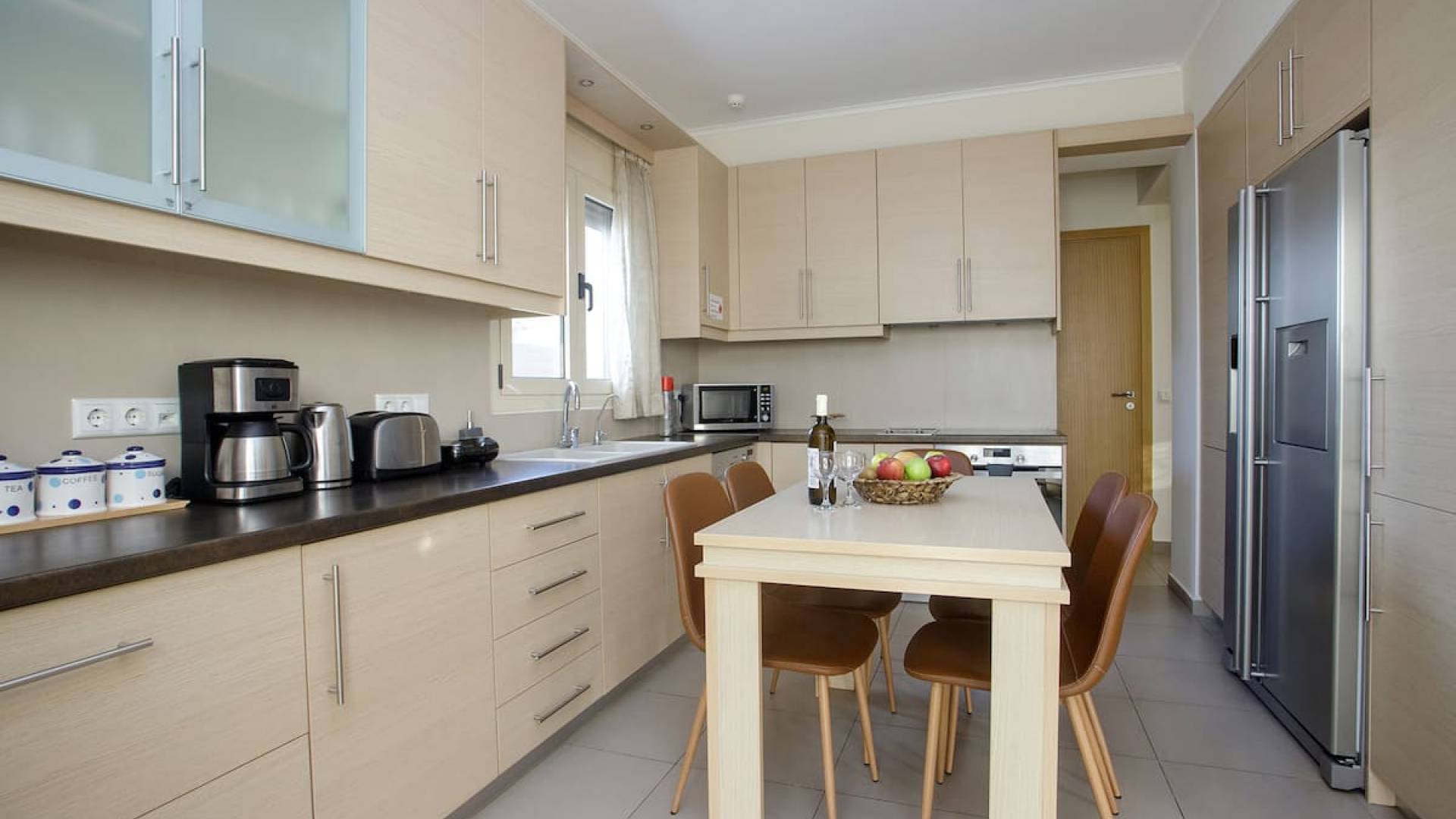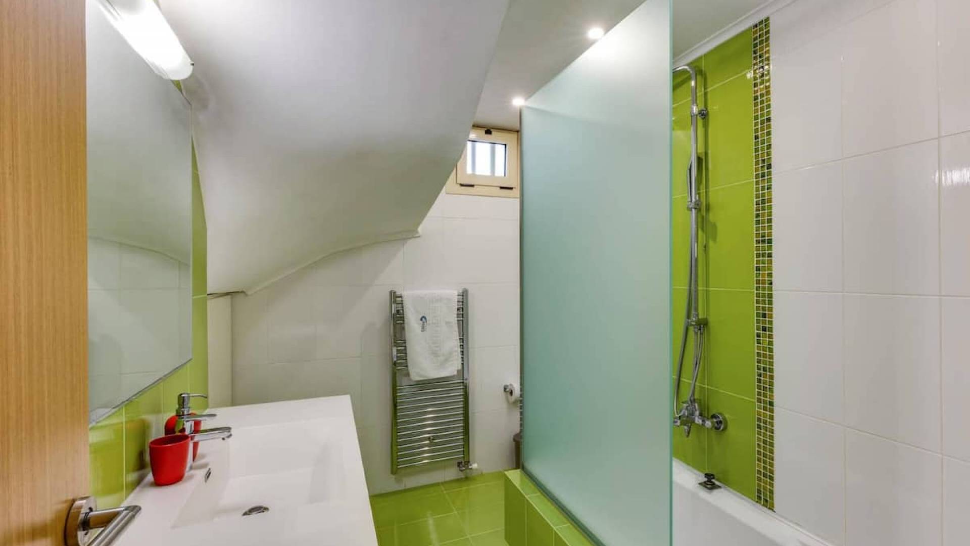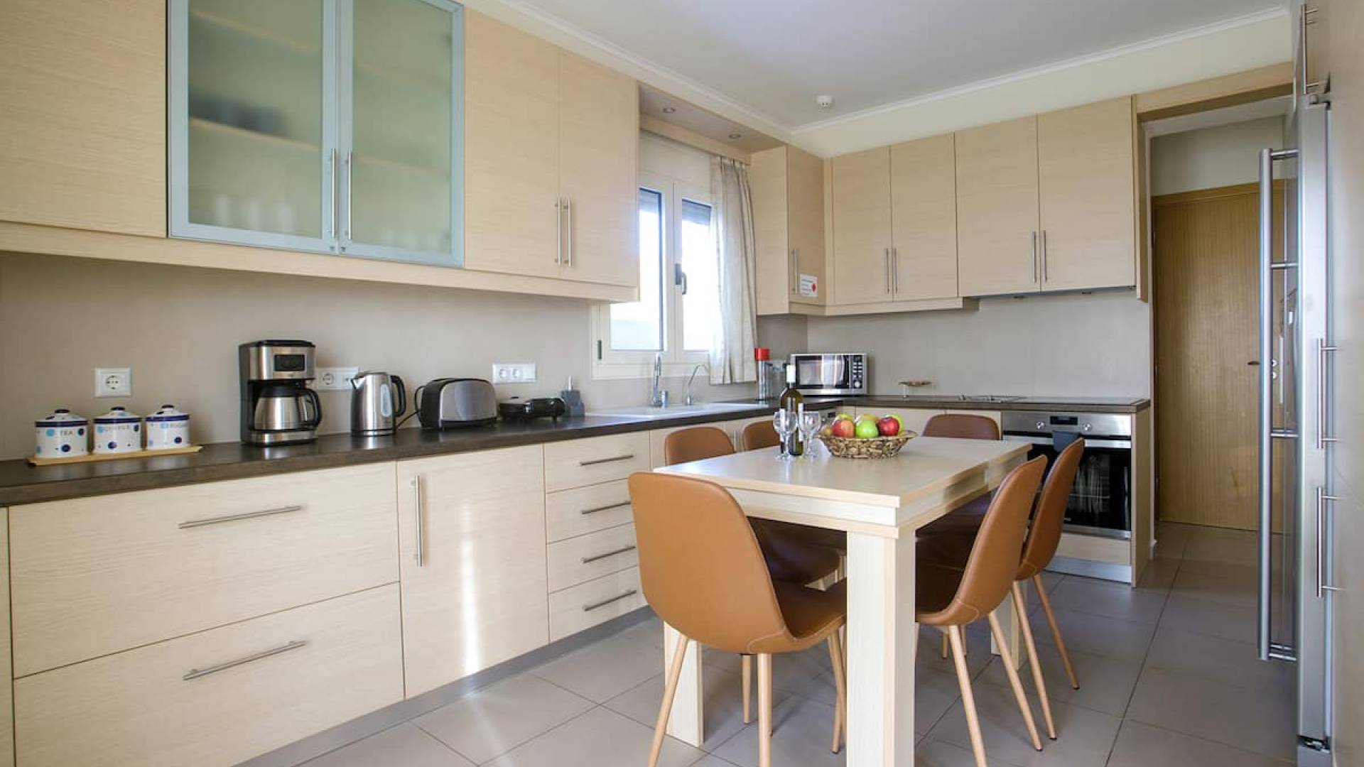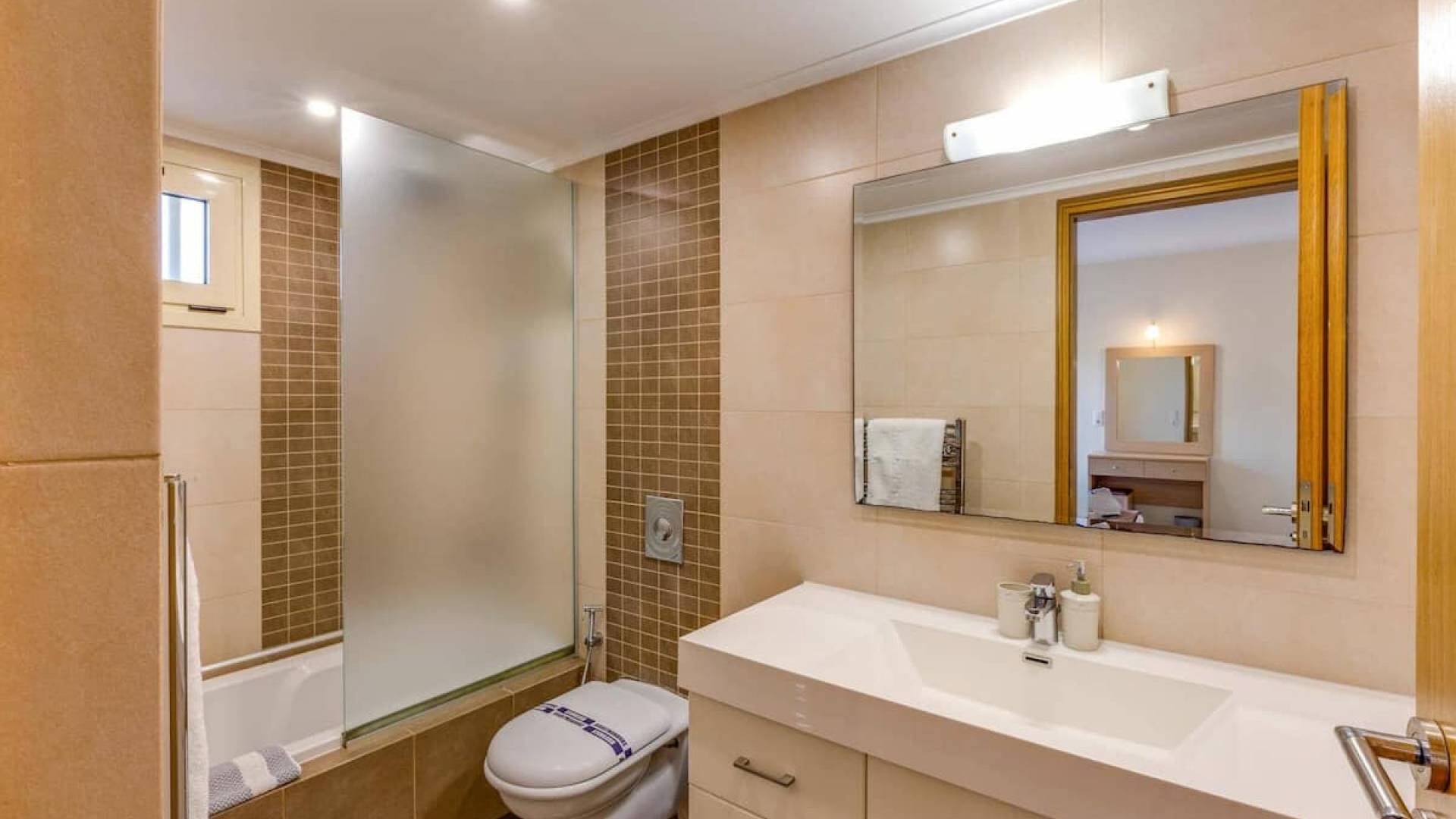 Вилла Лида Ираклион имеет 4 спальни (2 комнаты с двуспальными кроватями и 2 комнаты с двумя односпальными кроватями) и 2 ванные комнаты (одна общая и одна ванная в главной спальне) на первом этаже. Каждая комната имеет выход на веранду. Верхний этаж представляет собой общую зону с кухней, гостиной и столовой. Он окружен балконами с панорамным видом на море и горы.