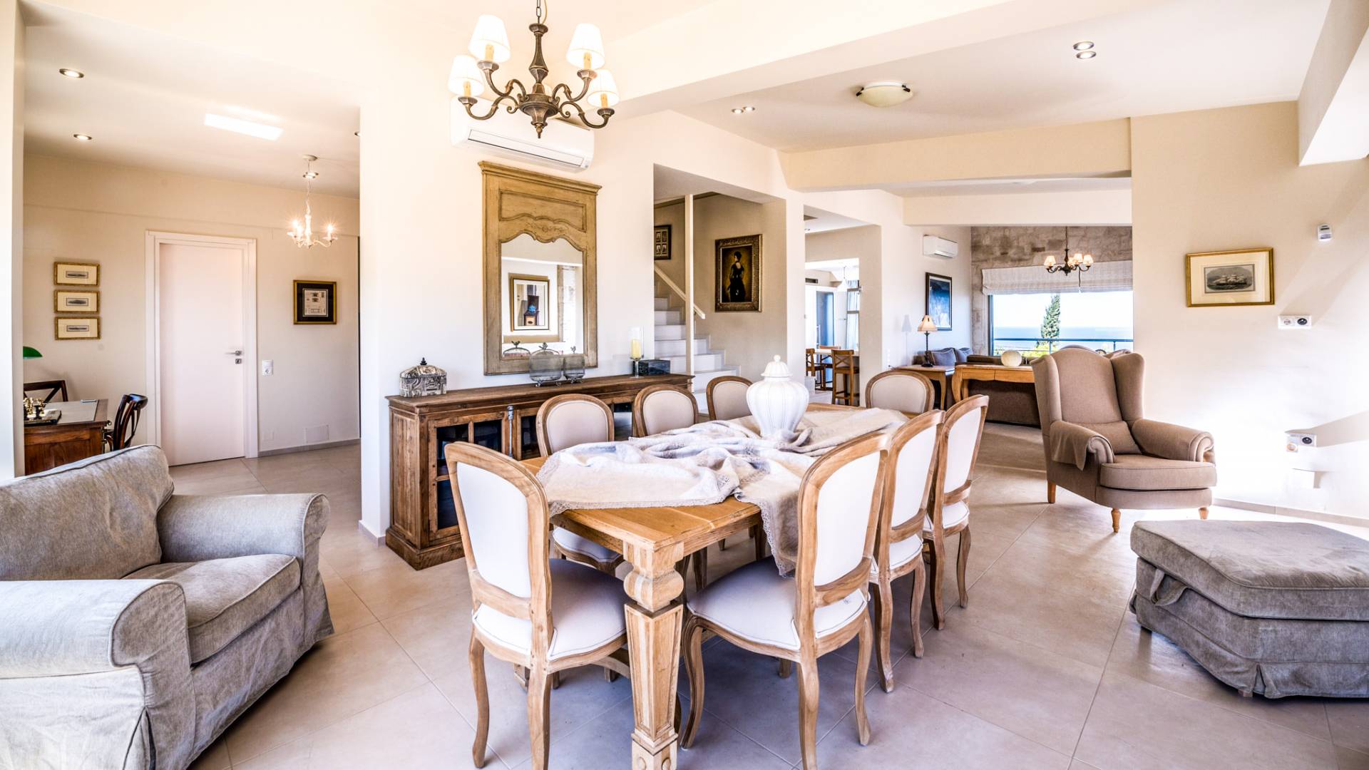 Проведите романтический и спокойный вечер, сидя у дровяного камина в окружении элегантной и изысканной мебели. Поужинайте с друзьями или семьей за большим овальным столом или на веранде с панорамным видом на Эгейское море. Позвольте нашему опытному шеф-повару побаловать вас и ваших друзей по особому случаю и создать уникальные воспоминания об отпуске.