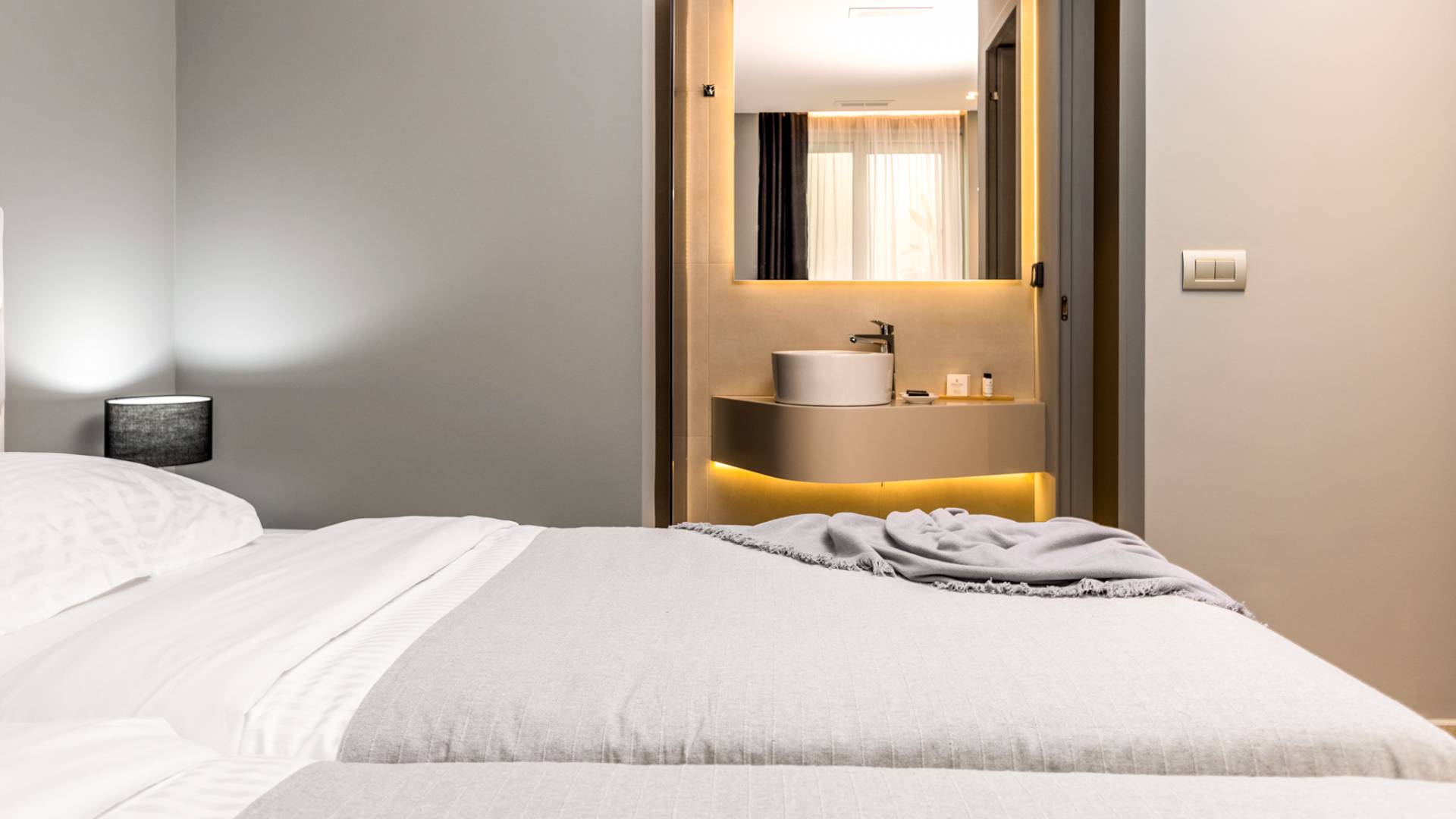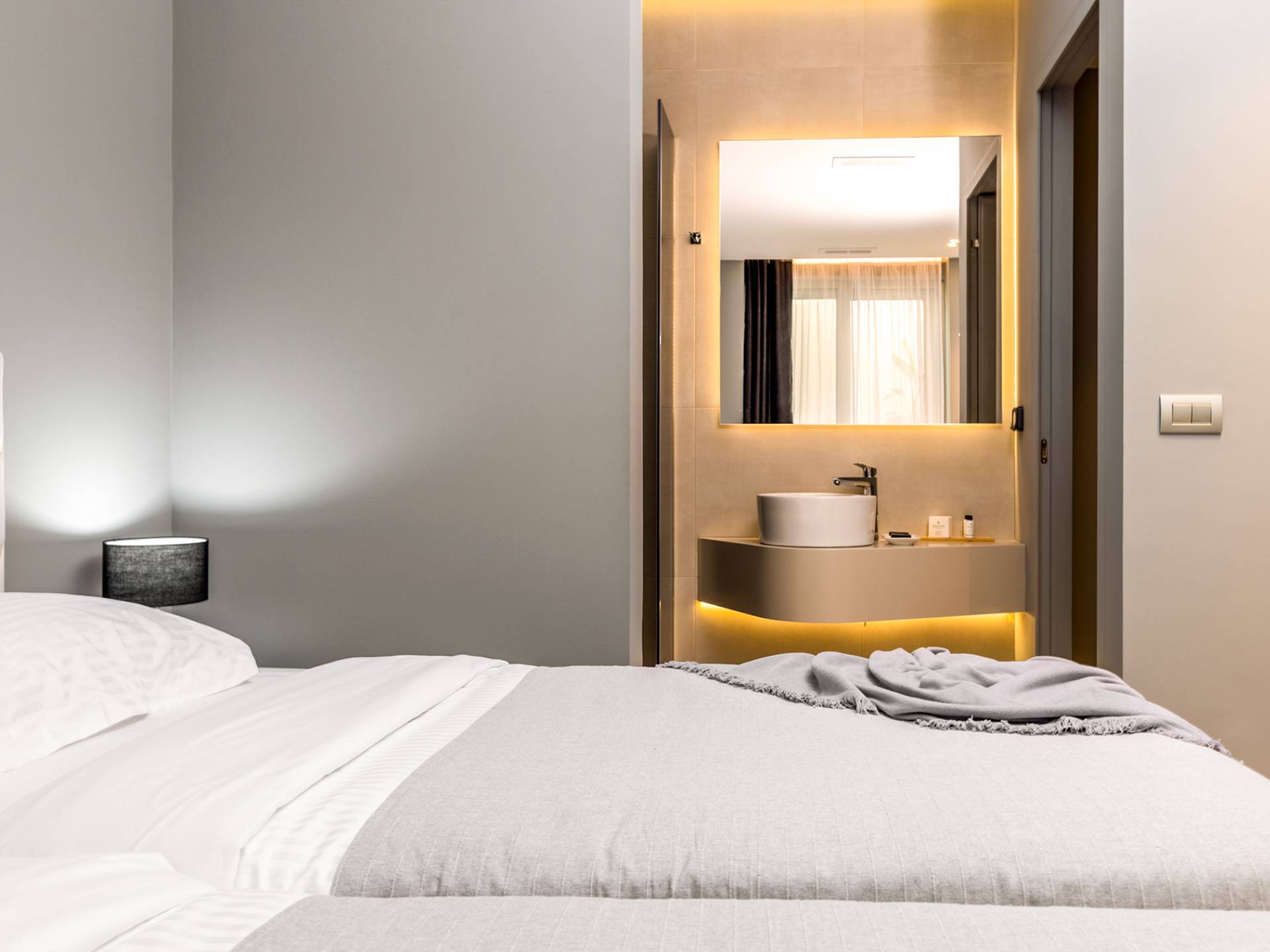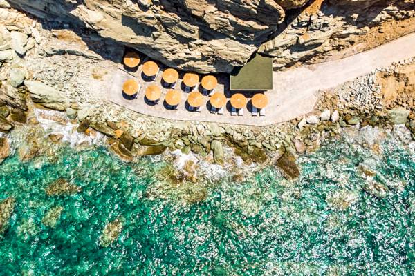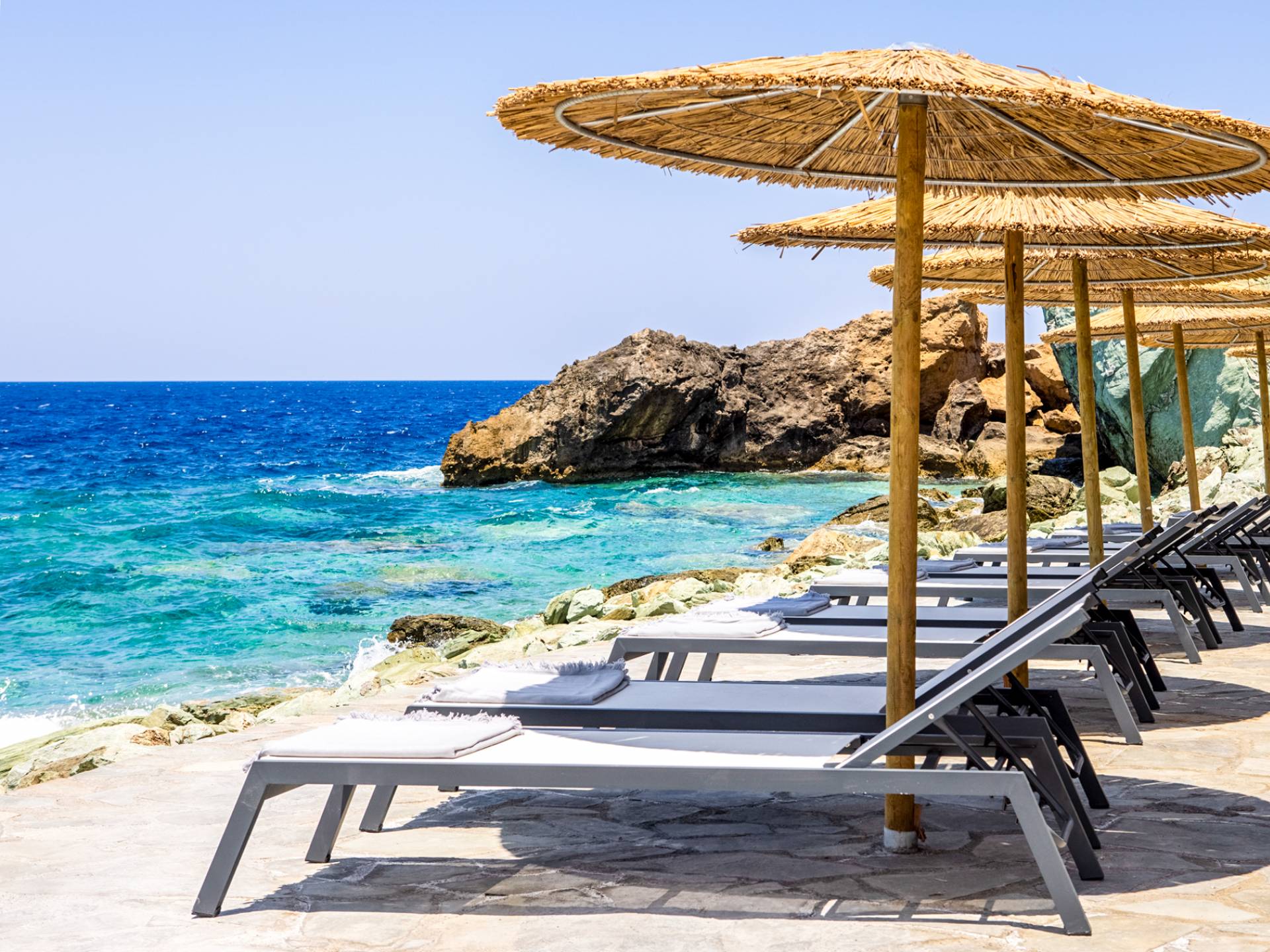 Tucked away in a small, picturesque bay, Roya Blu Villas Crete features exclusive access to a natural stone sunbathing platform with direct steps into the crystal-clear sea. The area is thoughtfully equipped with a beach bar, a private changing room, and a freshwater outdoor shower - creating a serene, resort-style seaside experience just moments from the villa.