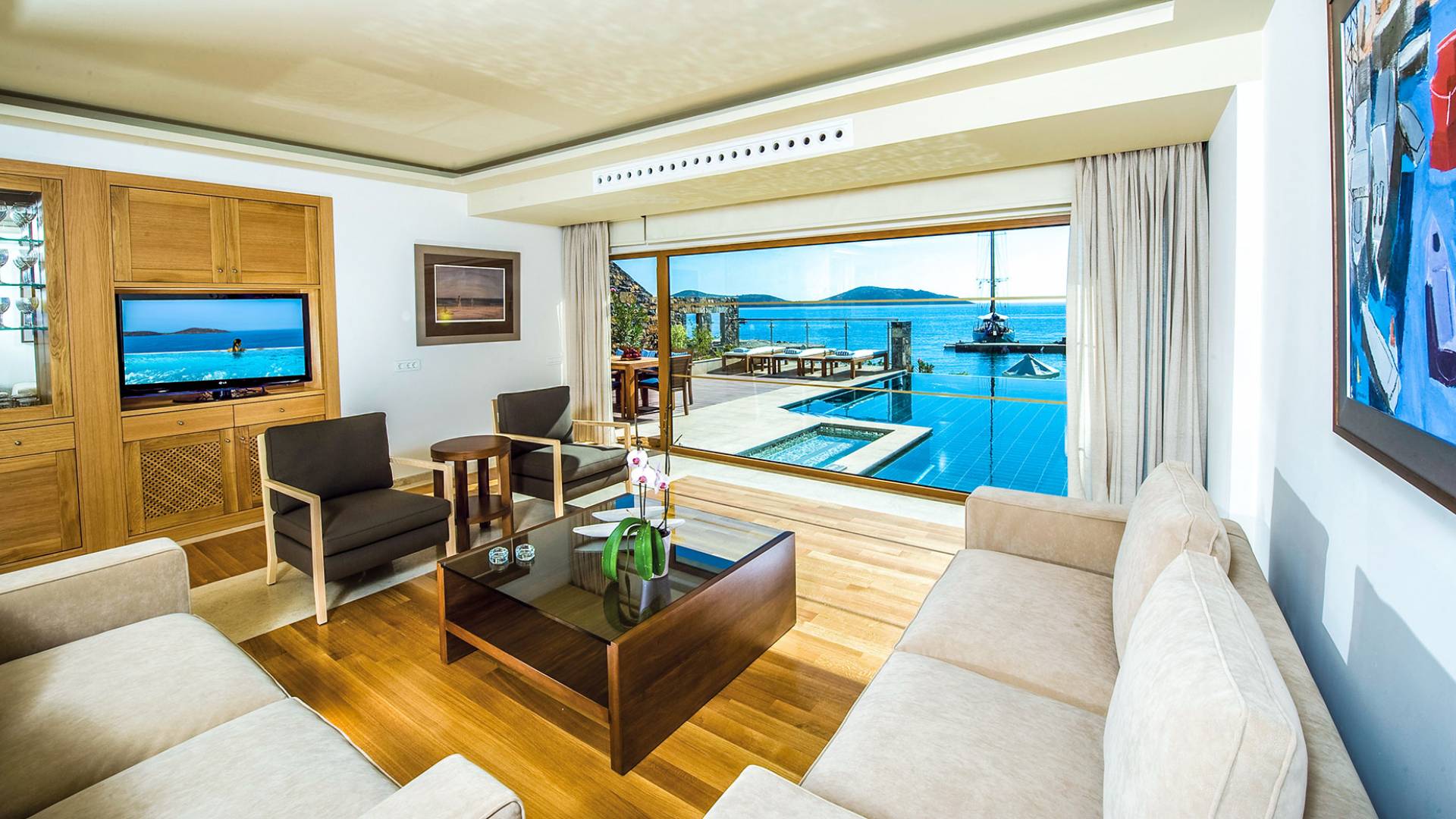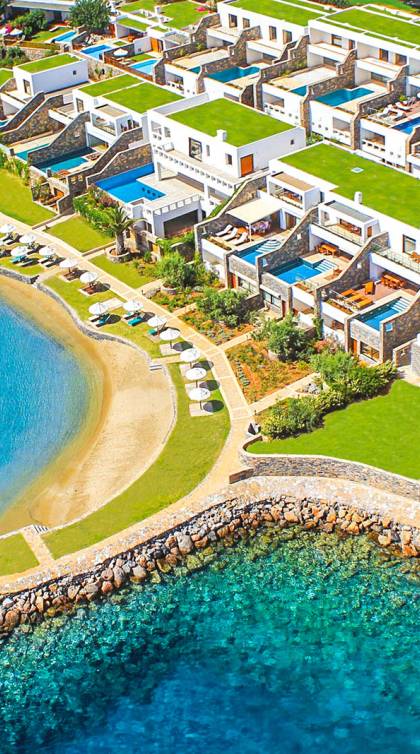 The Elounda Peninsula All Suite Hotel — самый эксклюзивный отель в Греции. Уникально расположенный на полуострове участок земли, он выходит на залив Мирабелло и просторы Эгейского моря. Вид голубой, насколько может видеть глаз. До отеля Elounda Peninsula All Suite ведет частная дорога, ведущая к лаунджу на верхнем этаже. На его просторных верандах вы почувствуете себя на мостике флагманского корабля.