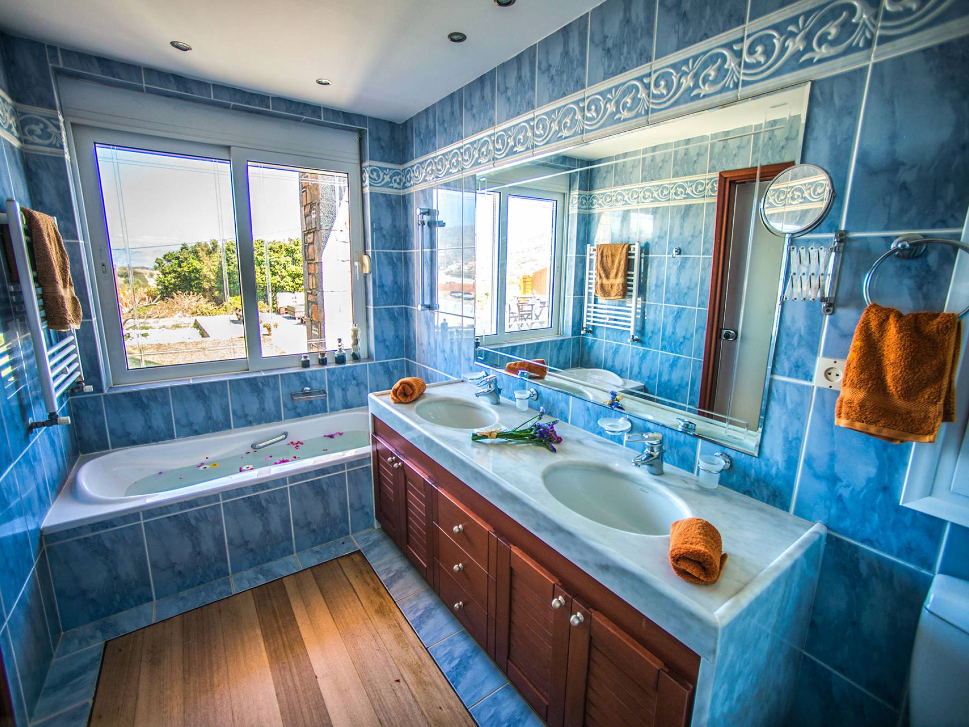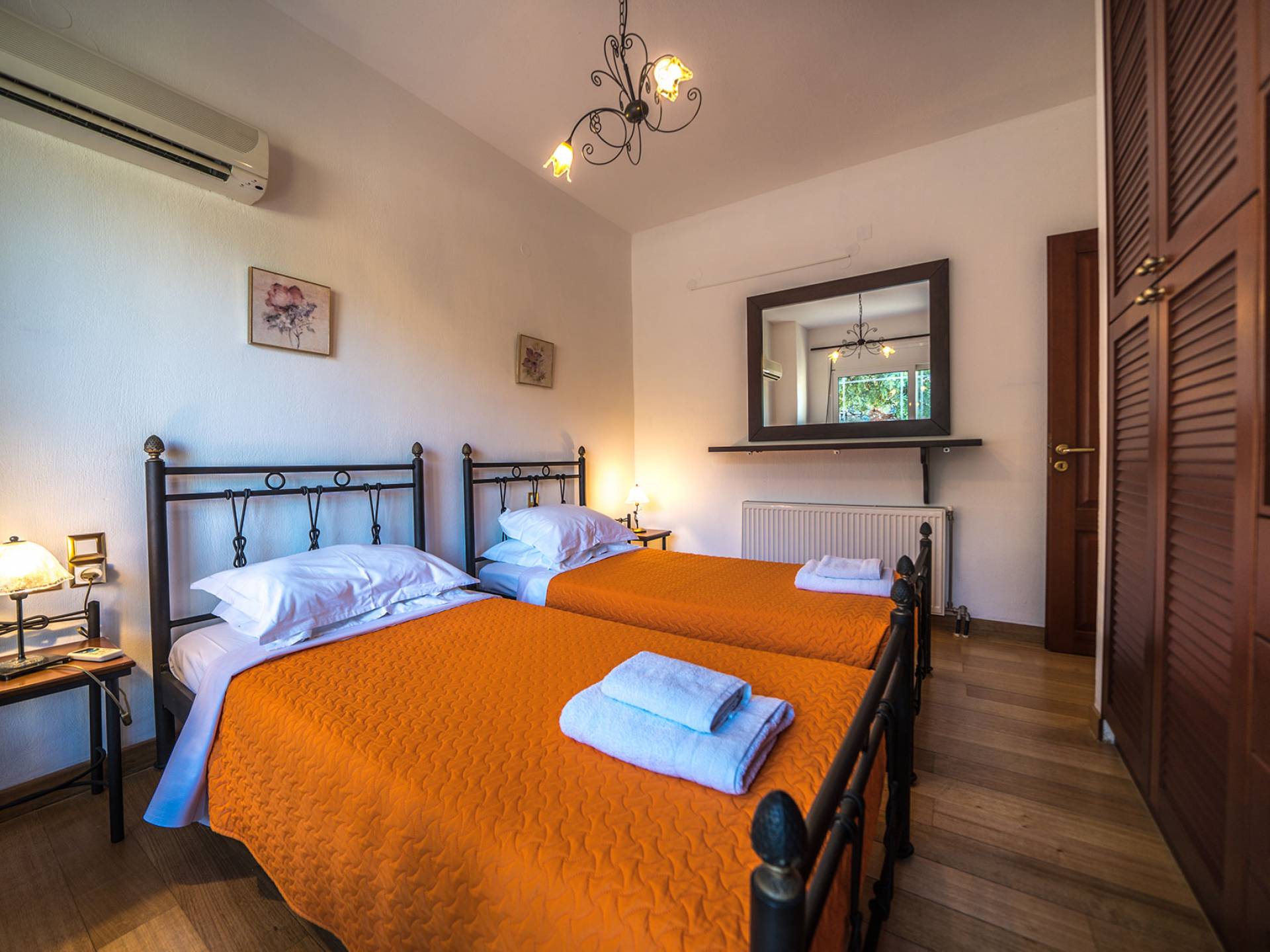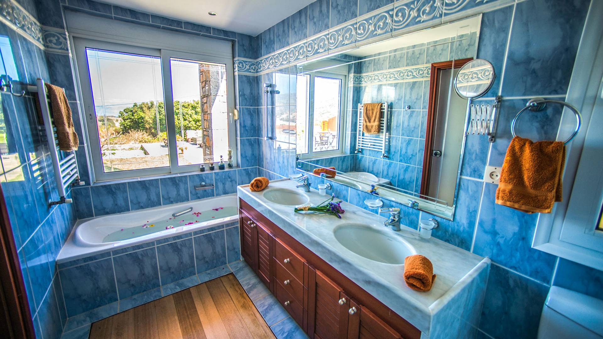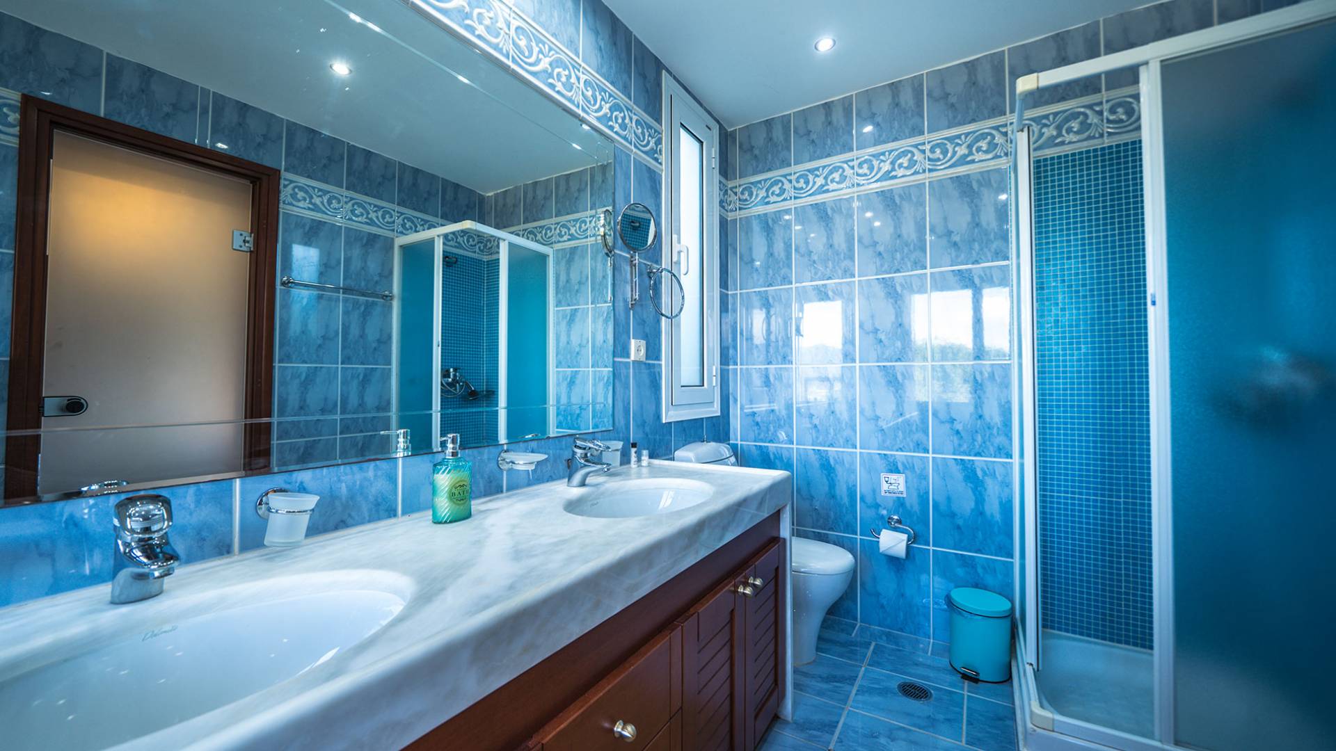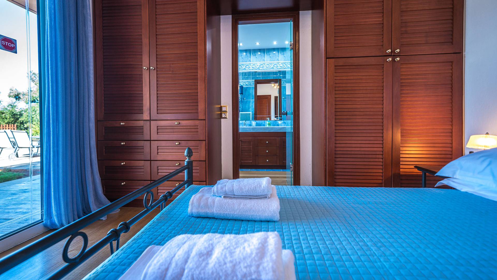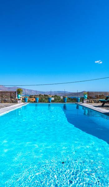 Снаружи кристально чистый частный бассейн окружен пышным садом с видом на близлежащие роскошные отели и Критское море, залив Мирабелло и остров Спиналонга. Несколько ухоженных террас ведут вверх по холмистой местности к дому и бассейну. Большой бассейн является эксклюзивным для виллы. У бассейна и в саду есть места как в прохладной тени, так и в ярком свете, а также уединение и бесконечный вид. Свет и виды зеленого и синего проникают через окна виллы.