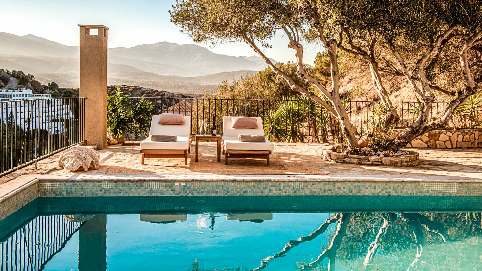 - Sun kissed terrace, sun loungers and lounge area with panoramic views