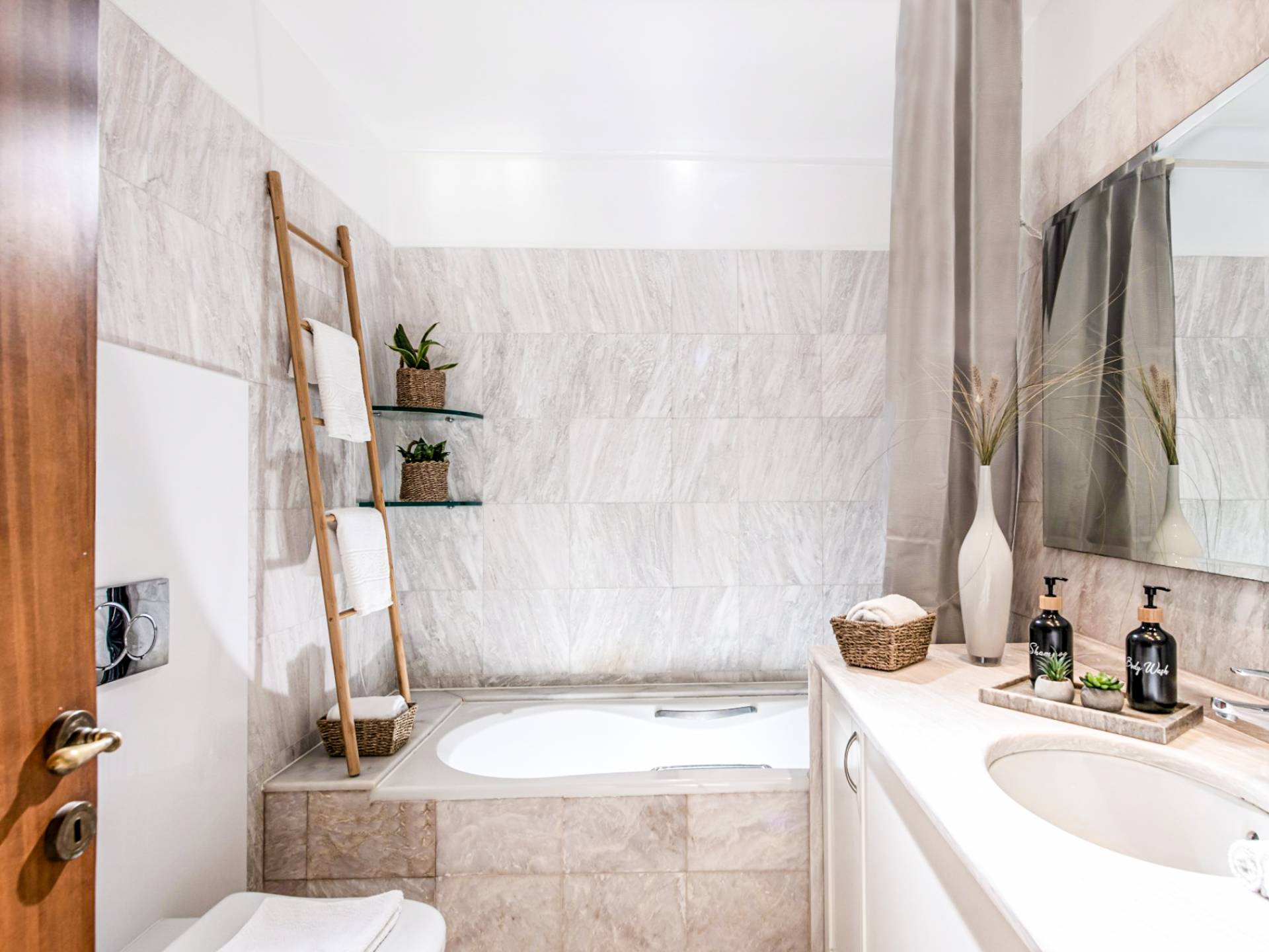 This 90 m² villa blends modern elegance with warm Mediterranean character: