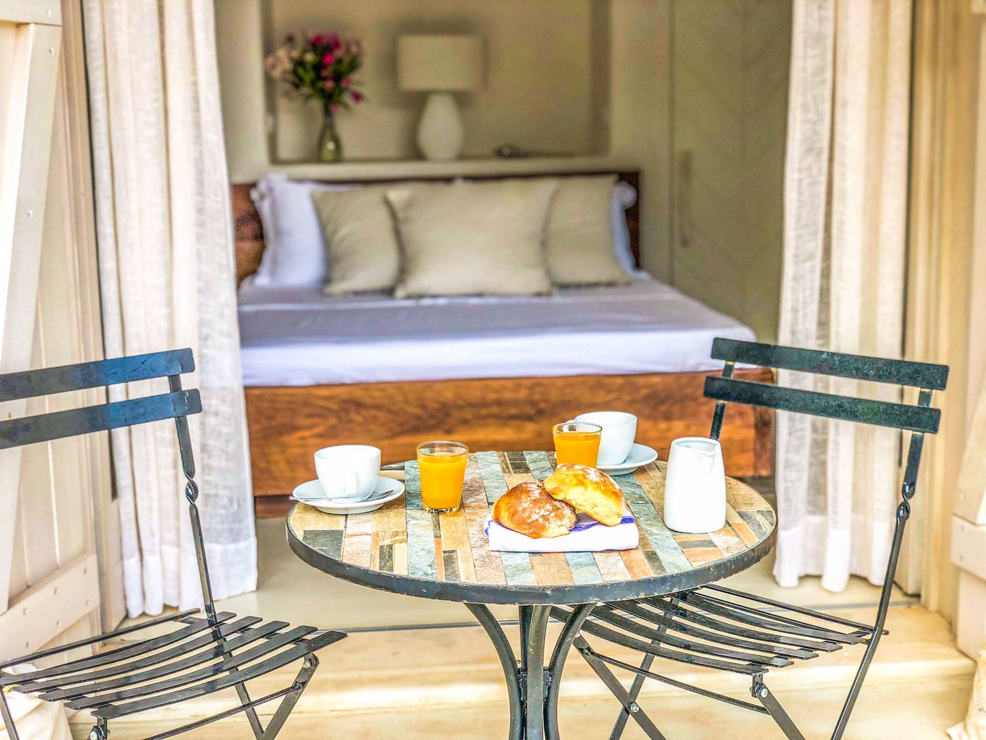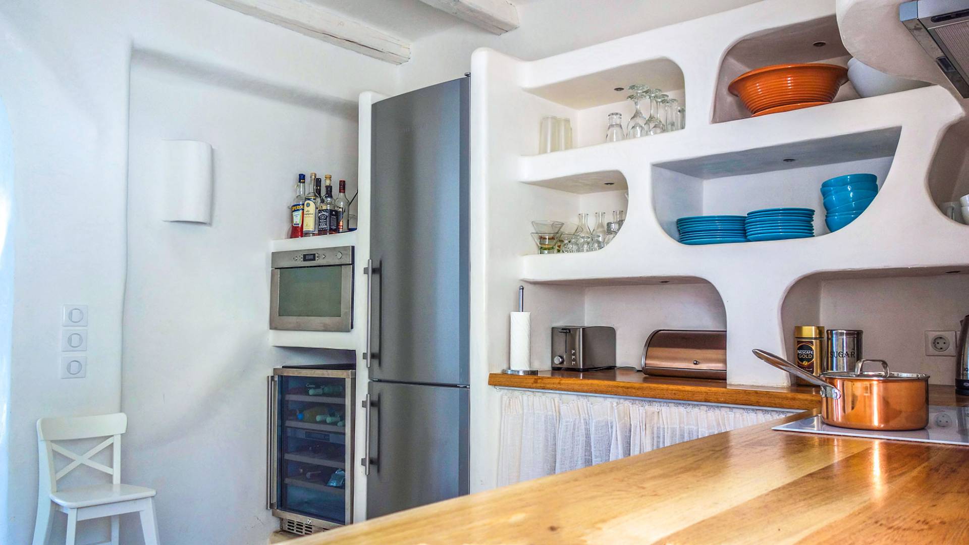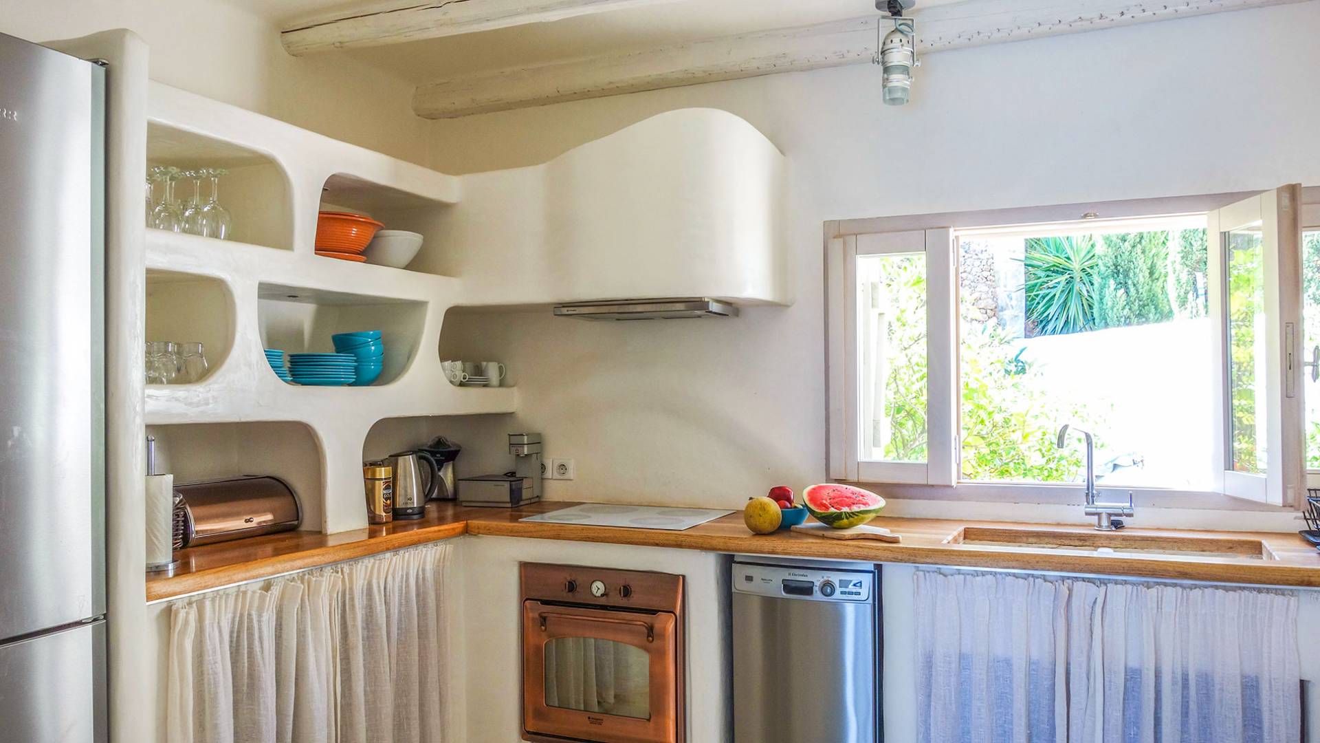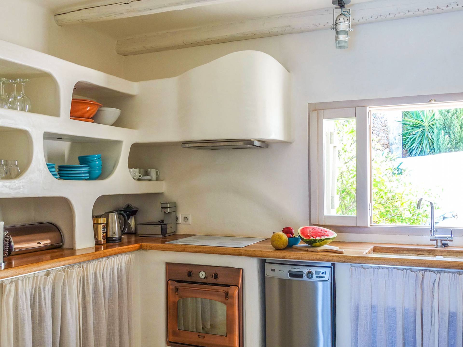 Сад и фруктовый сад, созданные ландшафтным архитектором, сочетают в себе декоративные и ароматные растения, чтобы круглый год наслаждаться фруктами и цветами: оливки, апельсины, мандарины, лимоны, инжир, мусмулия (разновидность персика ), гранат и ароматические растения – мята, розмарин – превращают сидячие места в тенистой гостиной рядом с садом в глубоко расслабляющий отдых.