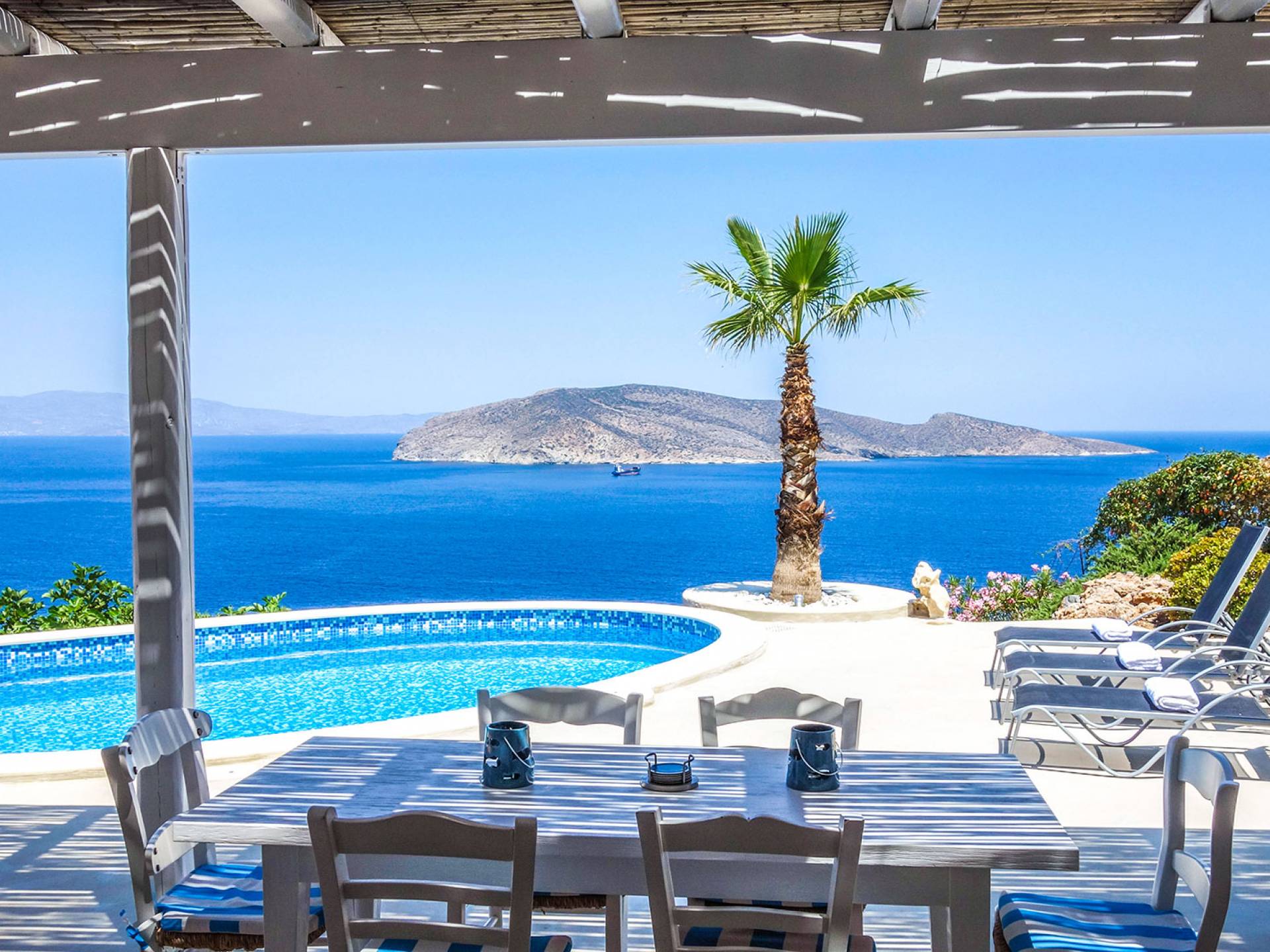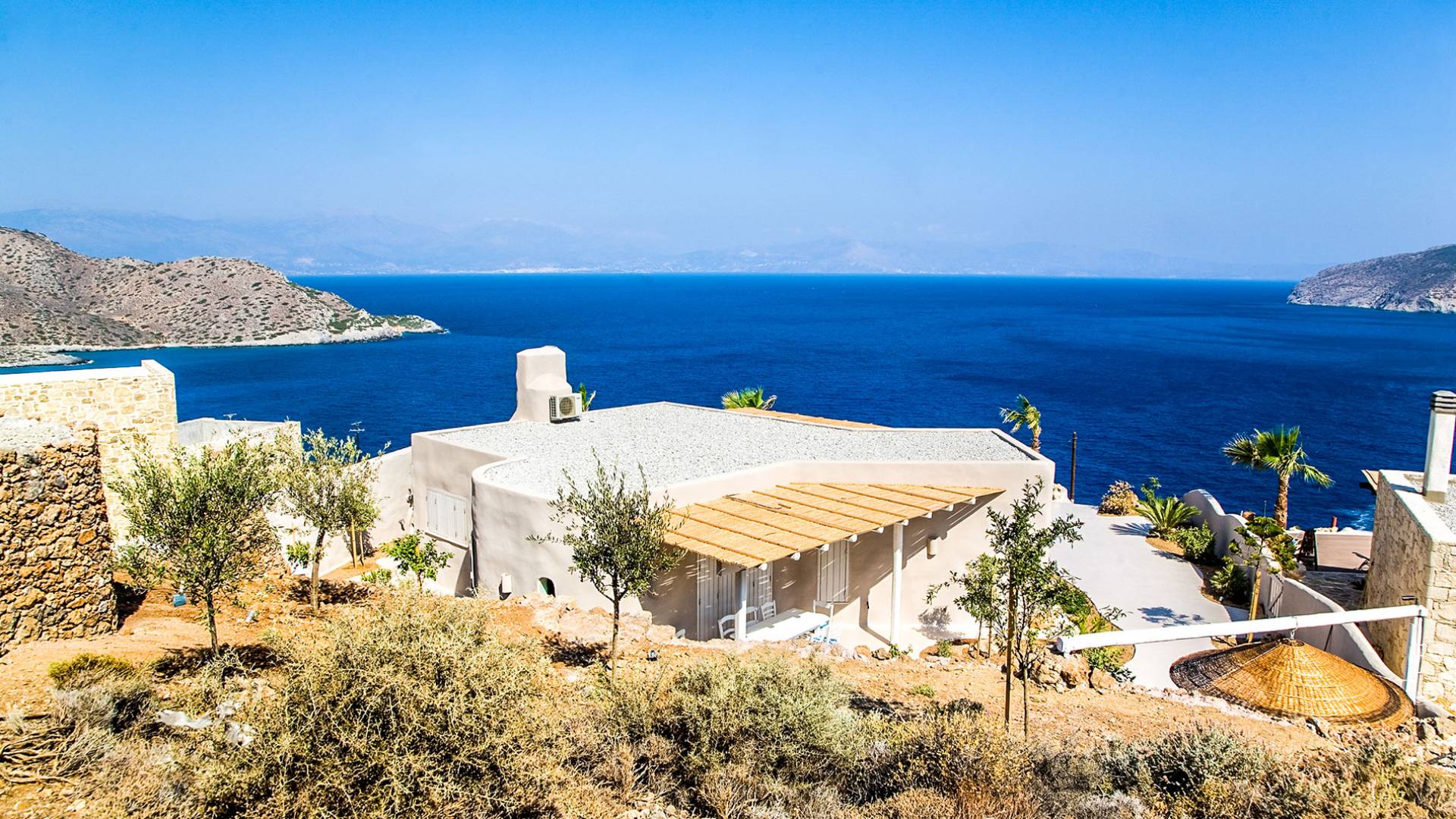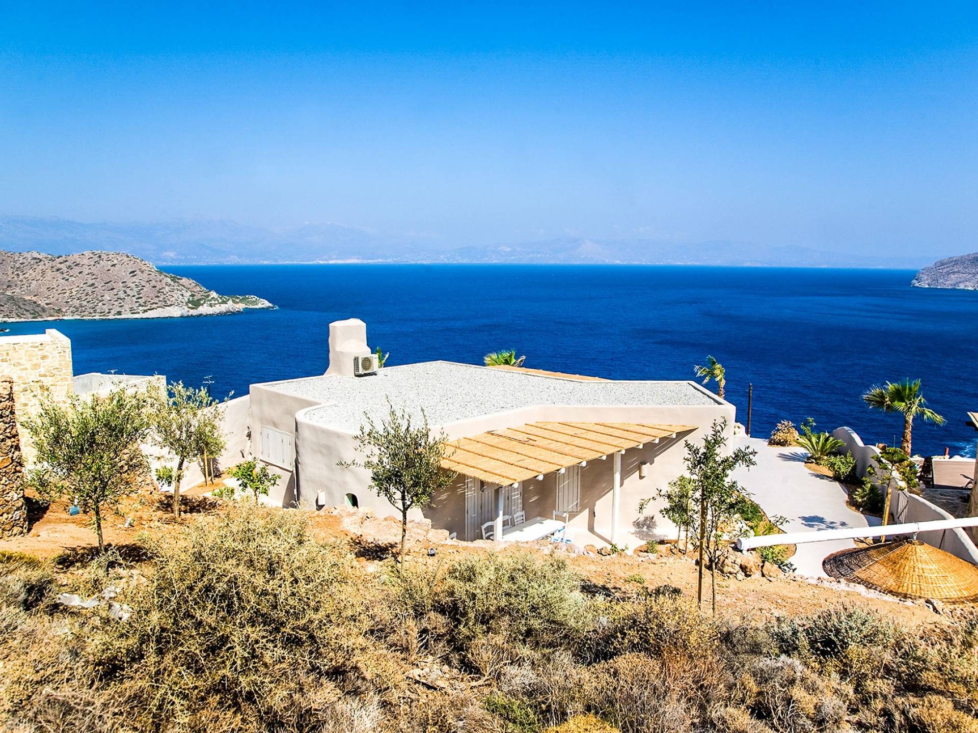 Villa Achilleas Crete – это уникальная вилла в кикладском стиле, построенная известным архитектором в 2013 году. Вилла расположена в престижном районе Восточного Крита, всего в 200 метрах от берега и на высоте 150 метров над уровнем моря. Эта роскошная одноуровневая вилла, построенная посреди оливкового сада, предлагает уединение и захватывающий вид на остров Псира и залив Толос.