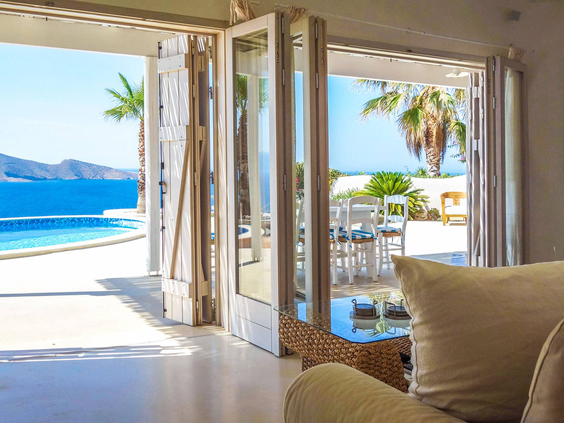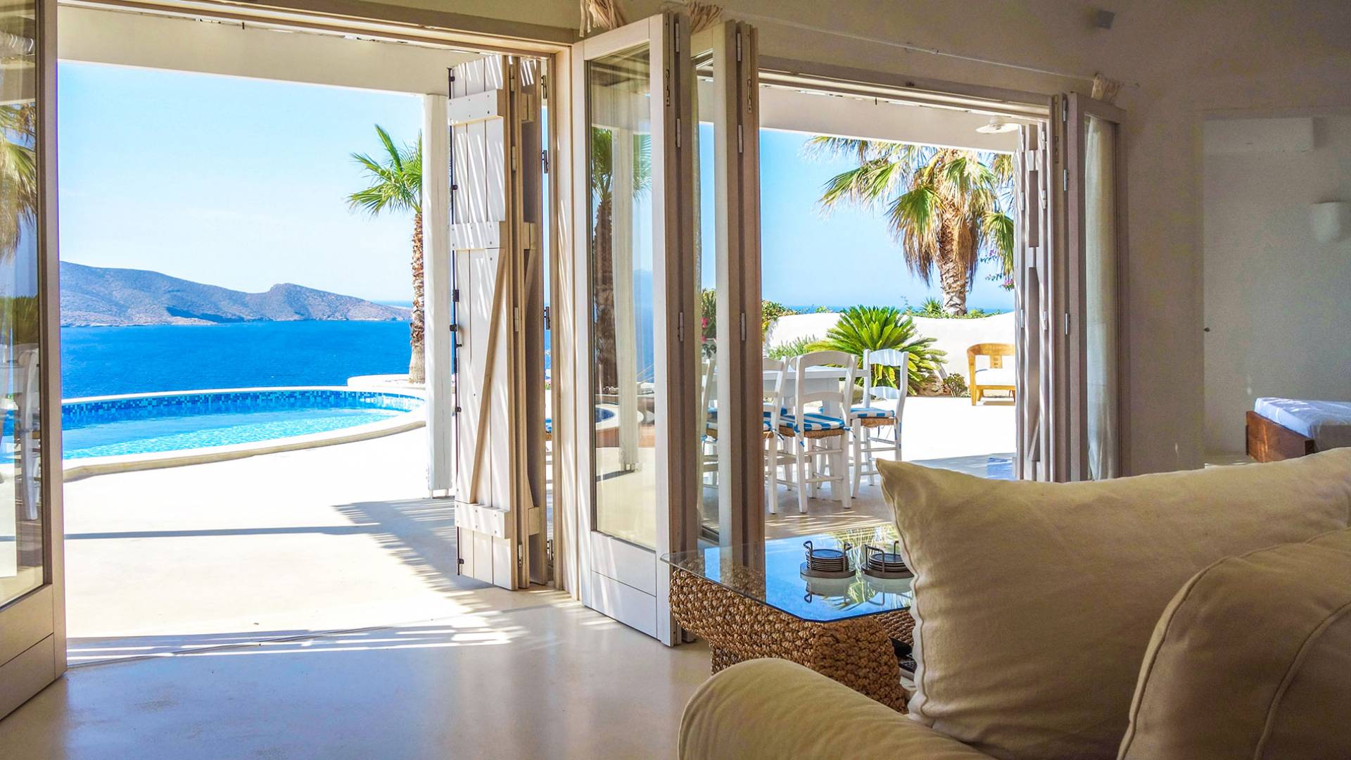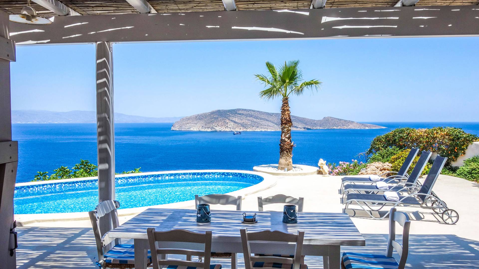 Villa Achilleas Crete – это уникальная вилла в кикладском стиле, построенная известным архитектором в 2013 году. Вилла расположена в престижном районе Восточного Крита, всего в 200 метрах от берега и на высоте 150 метров над уровнем моря. Эта роскошная одноуровневая вилла, построенная посреди оливкового сада, предлагает уединение и захватывающий вид на остров Псира и залив Толос.