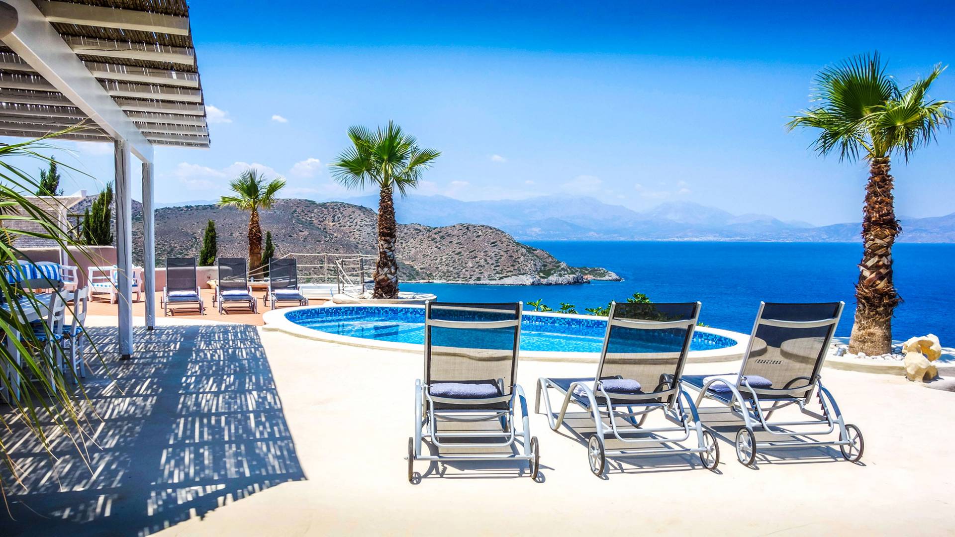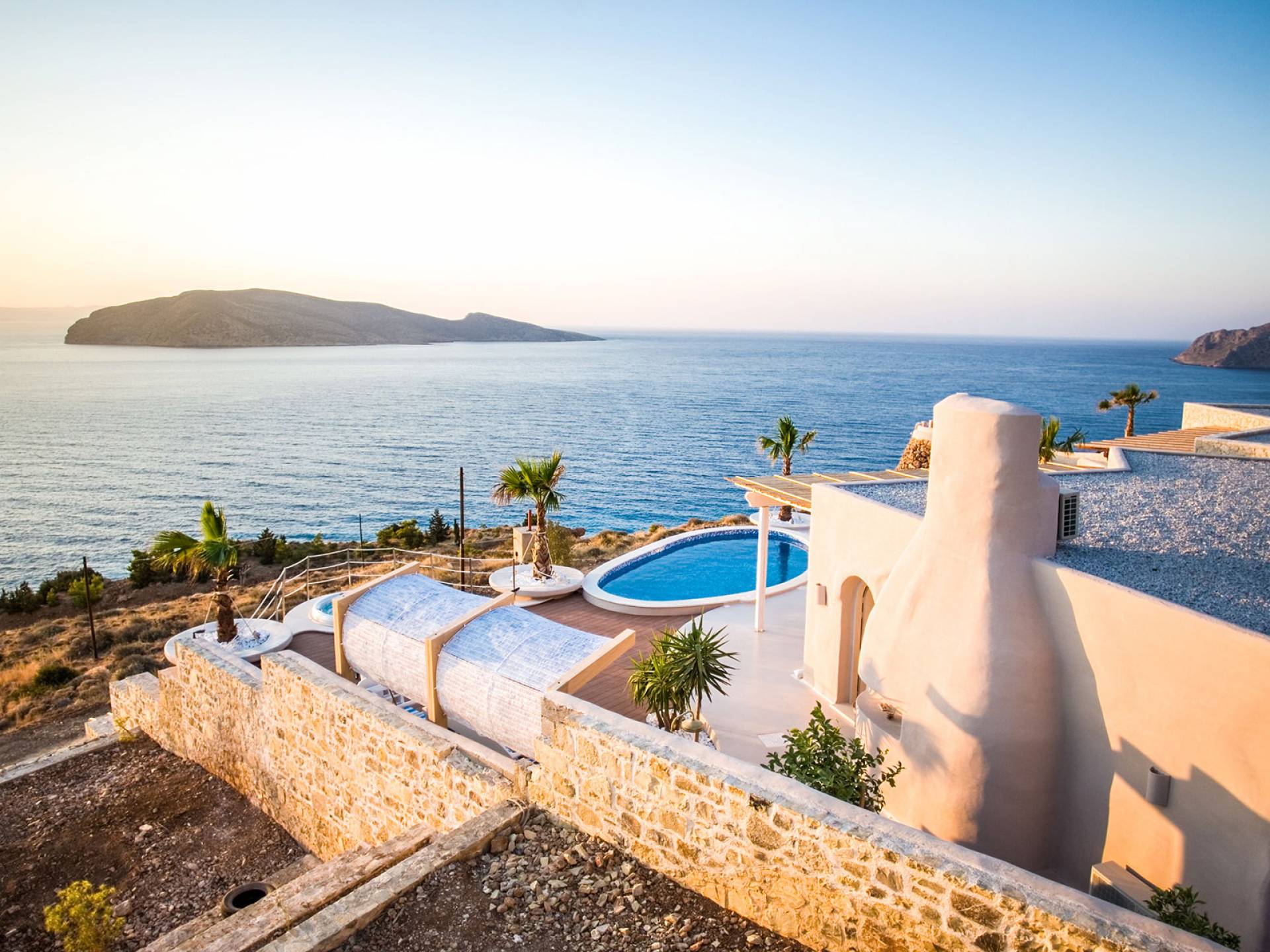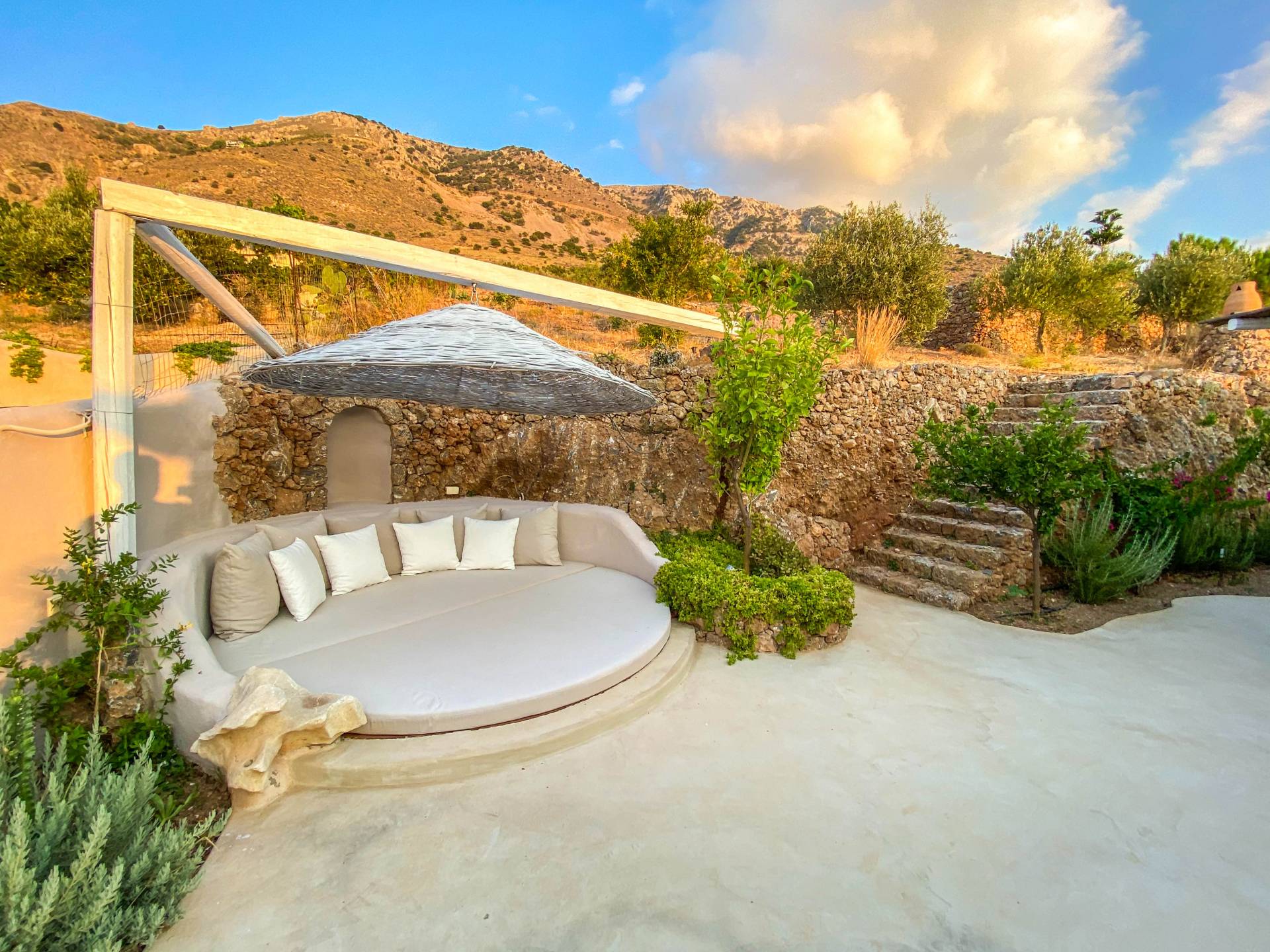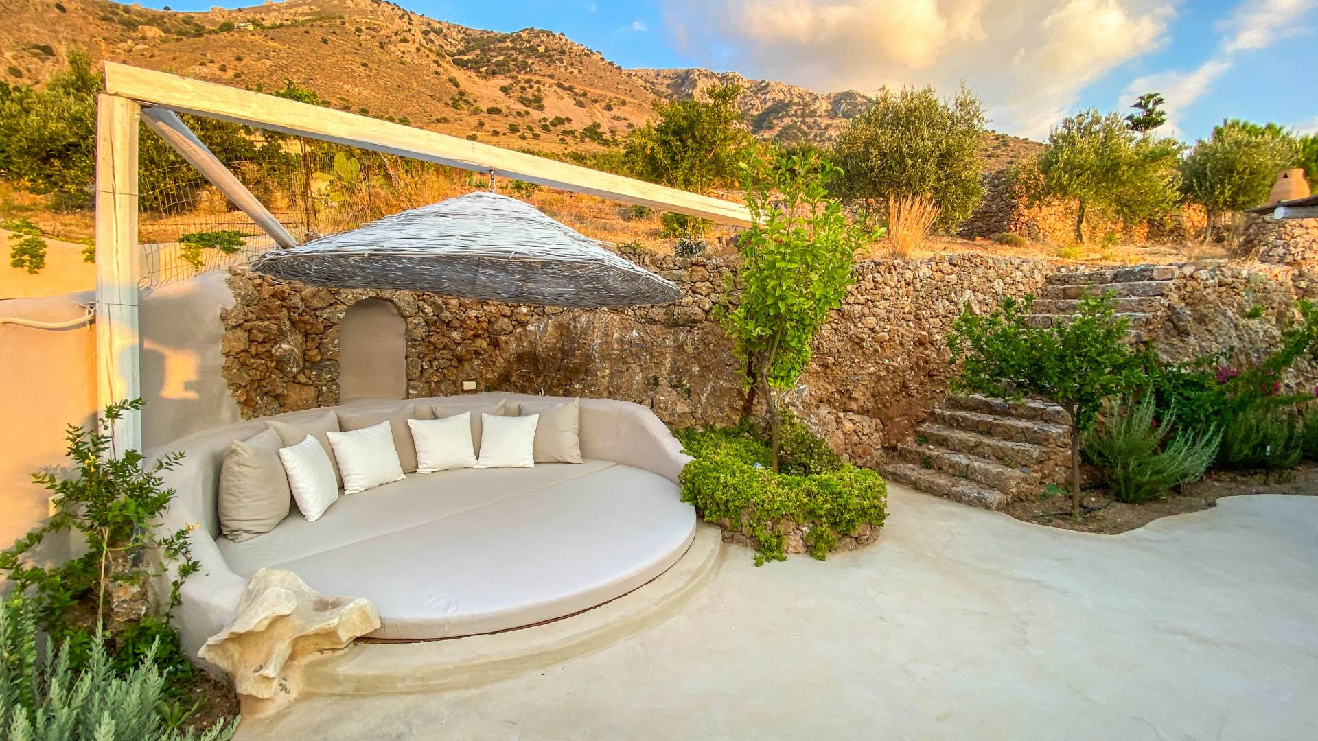 Вилла Achilleas Crete и сады были спроектированы таким образом, чтобы в течение дня было несколько участков тени, когда солнце движется вокруг виллы.