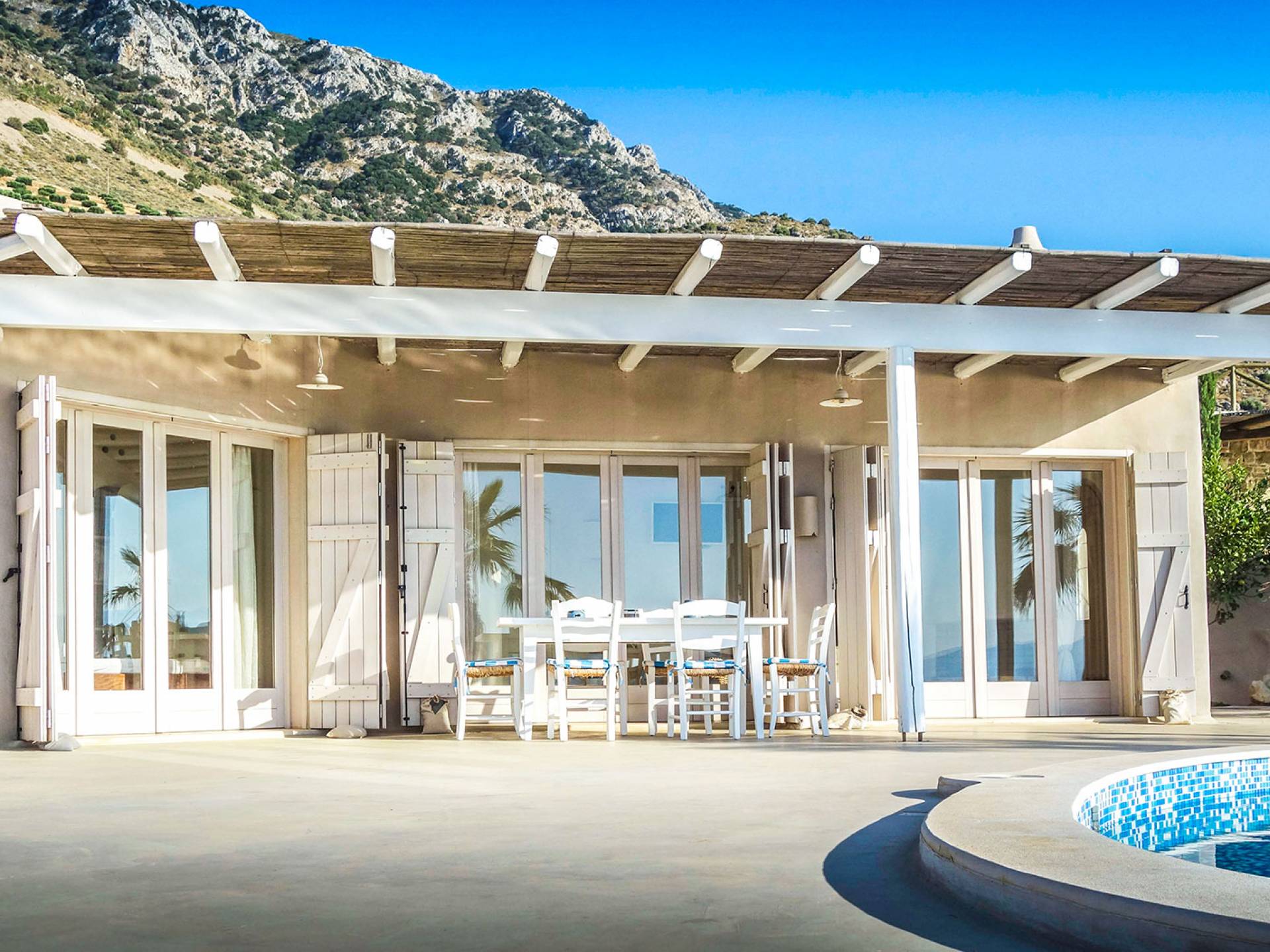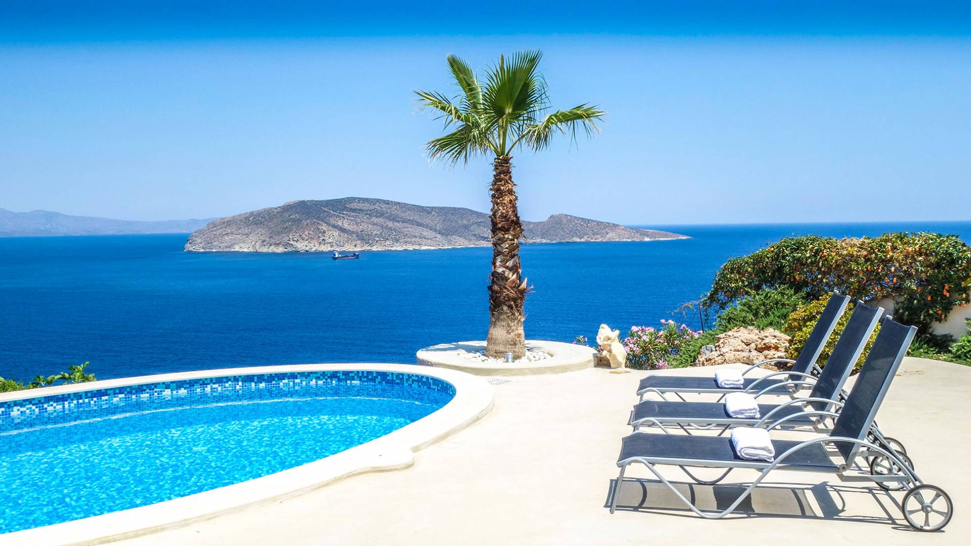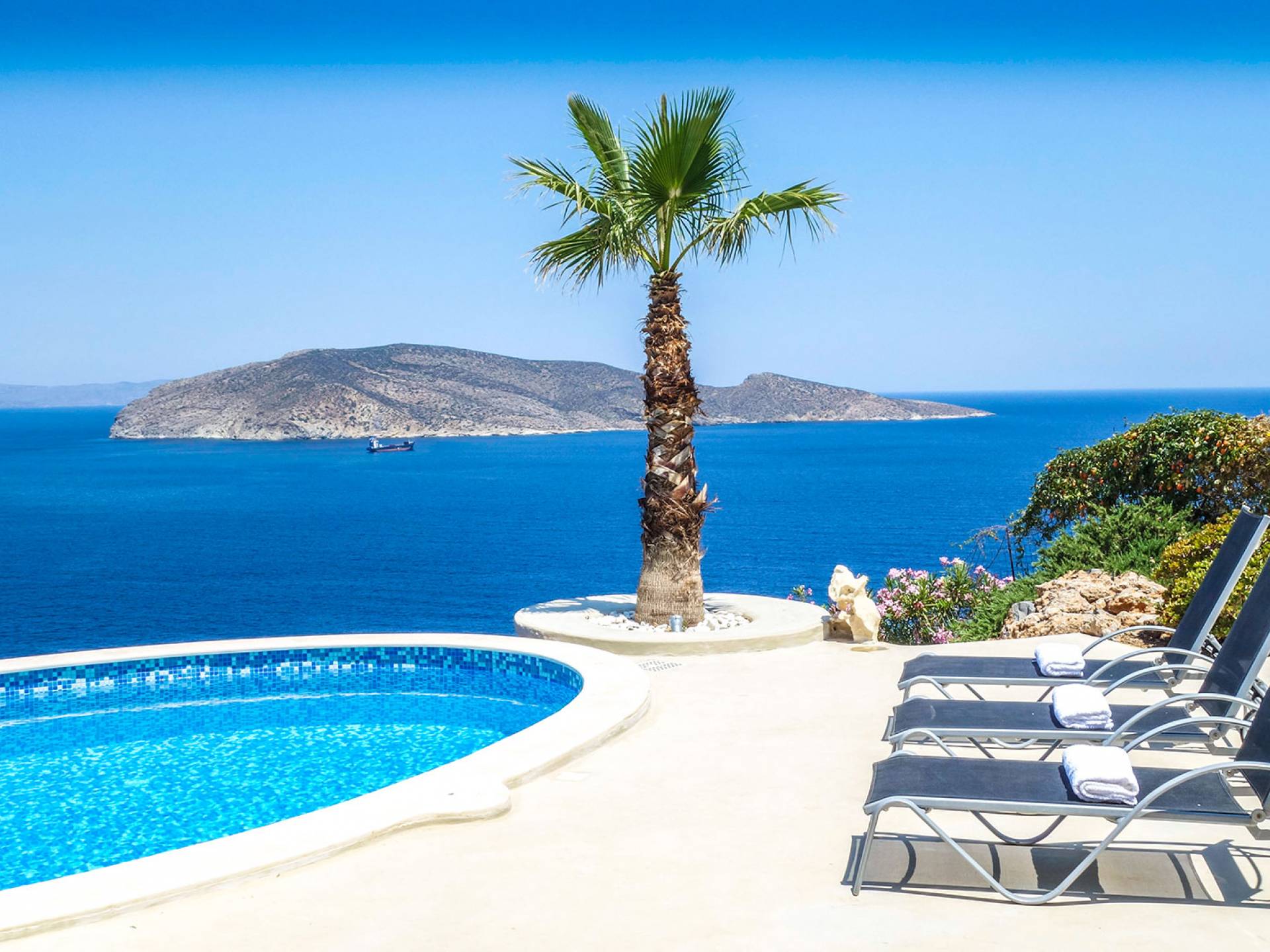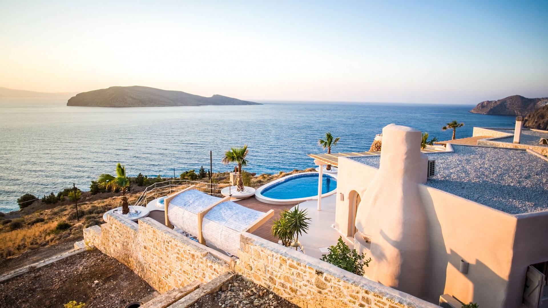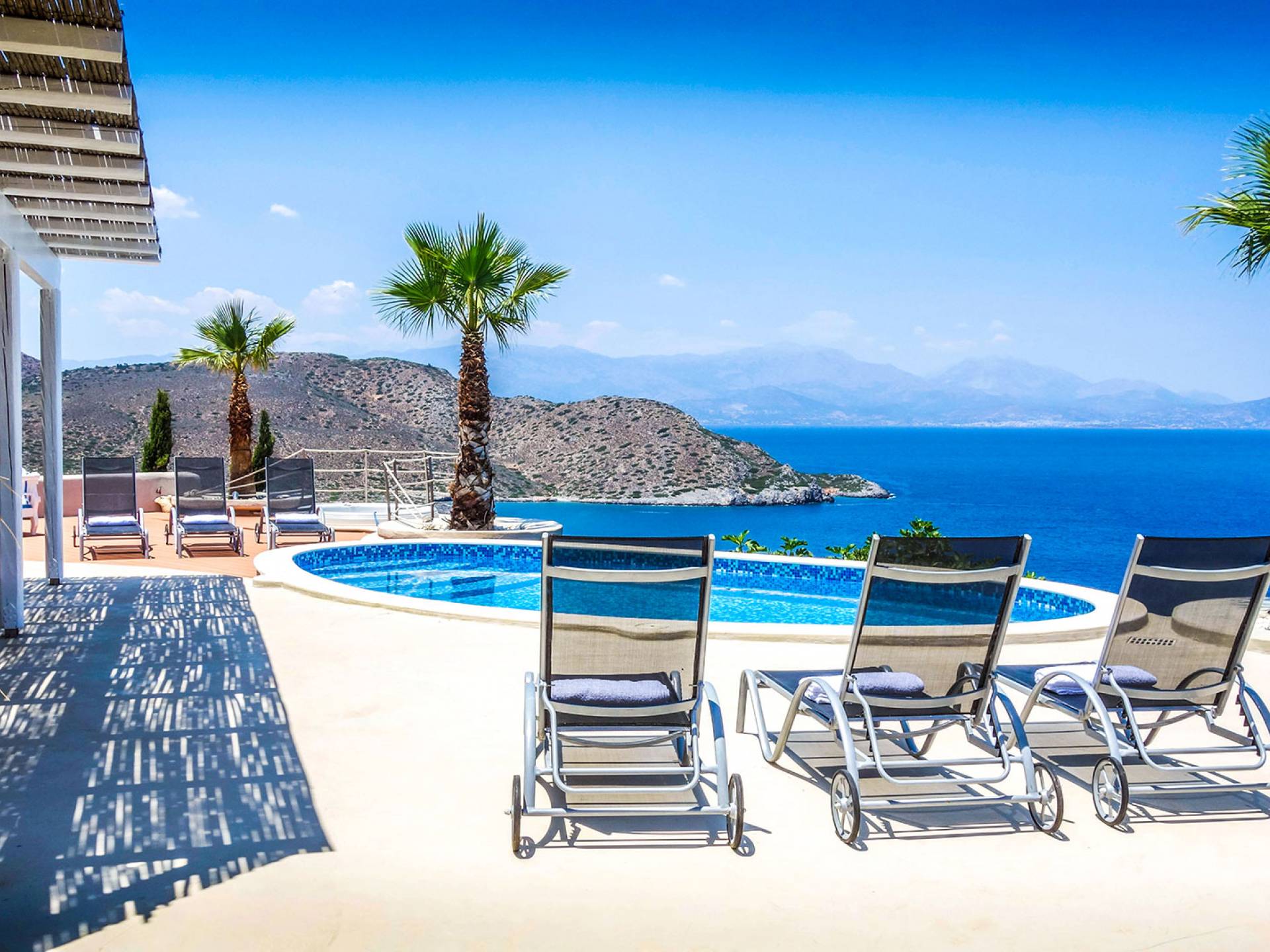 Вилла Achilleas Crete и сады были спроектированы таким образом, чтобы в течение дня было несколько участков тени, когда солнце движется вокруг виллы.