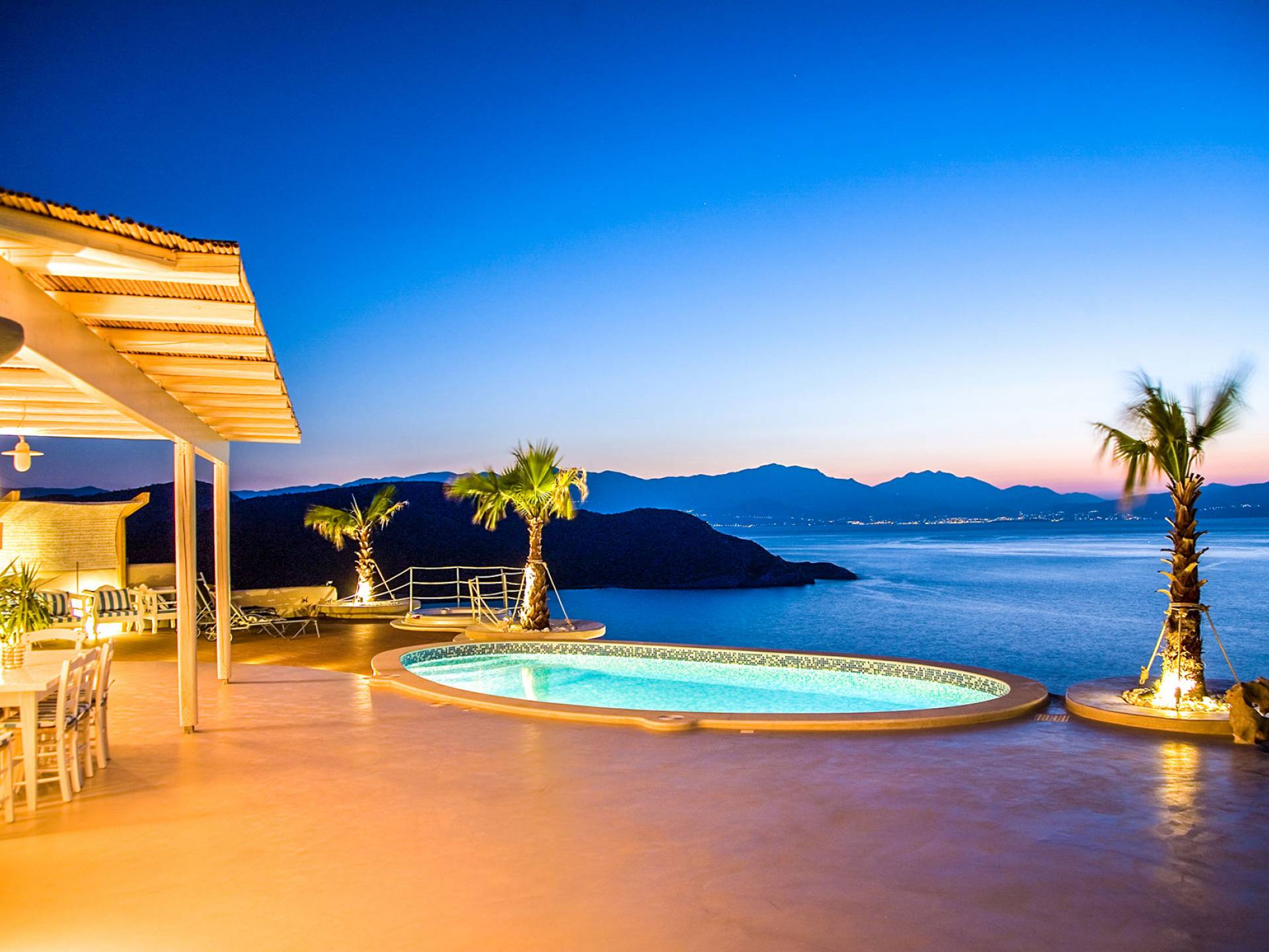 С видом на залив Мирабелло в засушливой горной местности Крита расположилась вилла Ахиллеас. Построенная с органическими формами и удивительно пышными внешними пространствами, обращенными к сенсационному пейзажу моря и островов, вилла имеет естественный каркас и изящно вписывается в свое окружение.