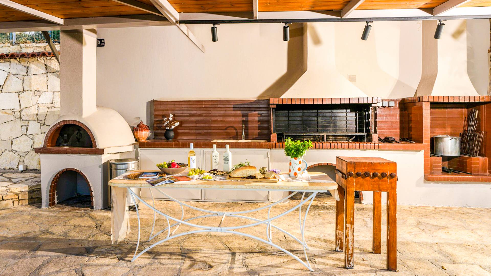 Мангал на древесном угле, дровяная печь и обеденная зона на 12 персон под навесом