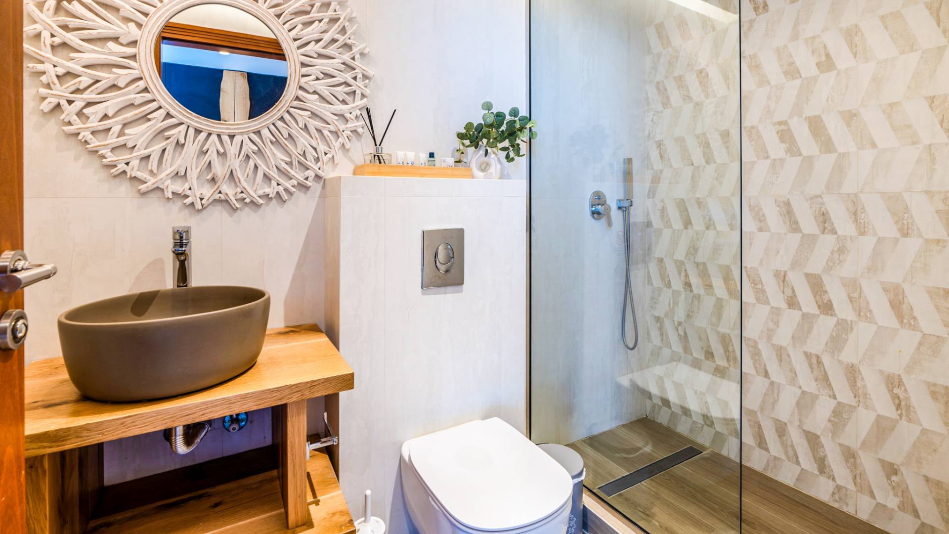 Ещё три спальни, каждая с раздельными кроватями (трансформируются в king-size), кондиционером, потолочным вентилятором, TV 32”, собственной ванной комнатой и верандой с видом на море