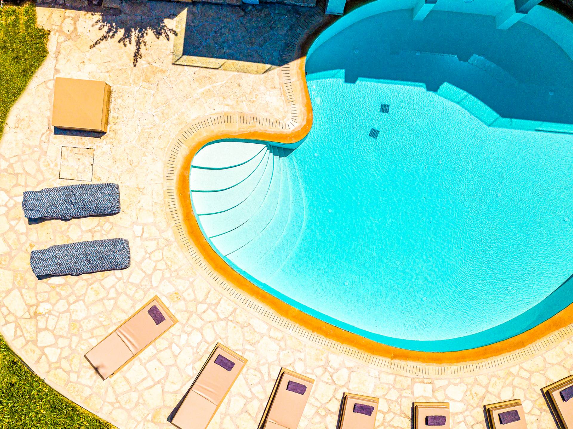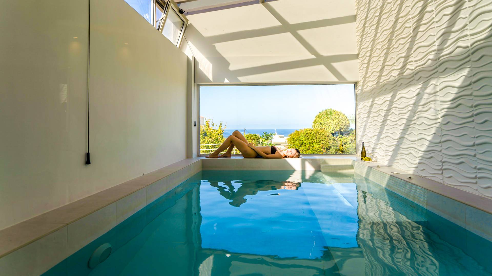 Крытый подогреваемый бассейн 14 м² с гидромассажем (по запросу, 20 €/день)
